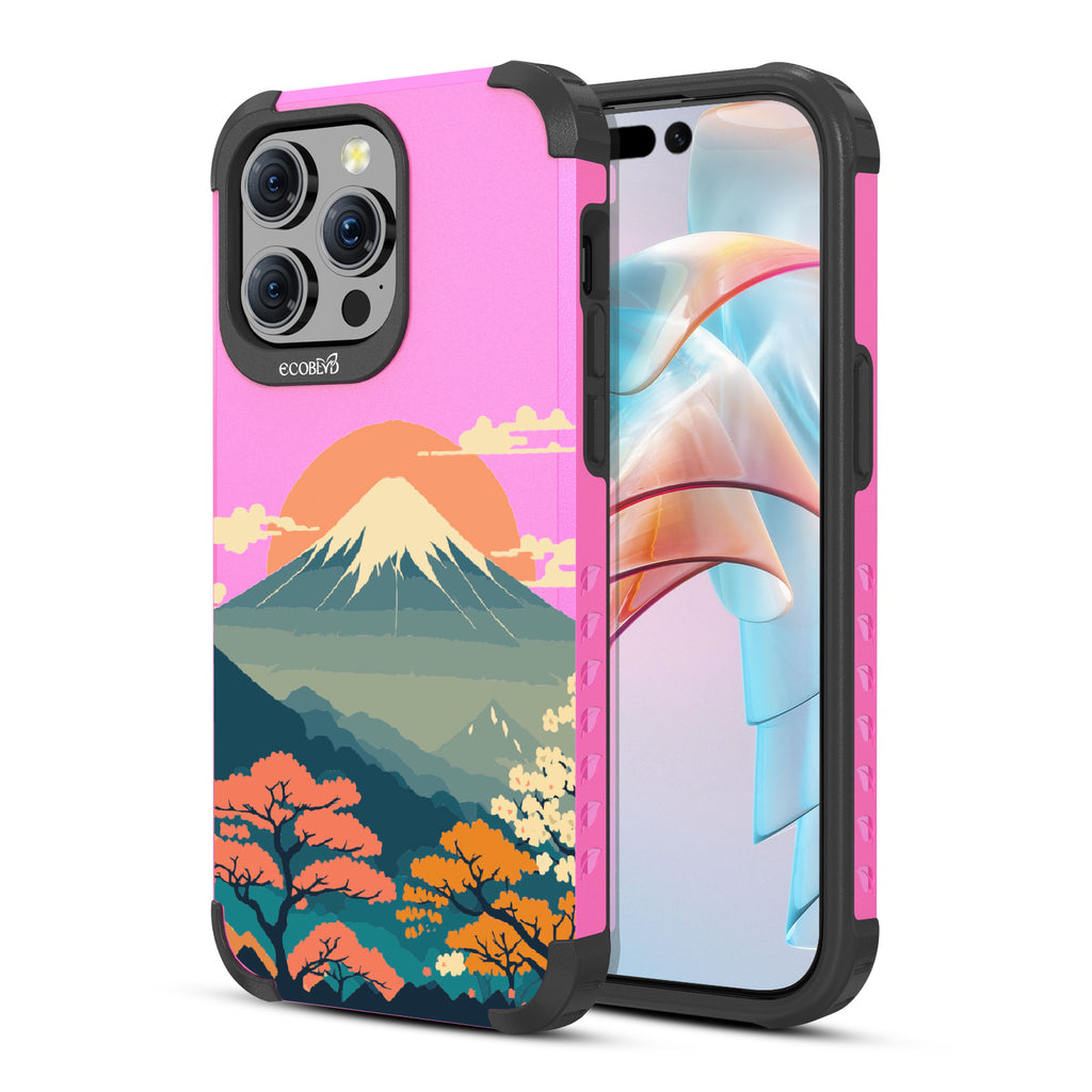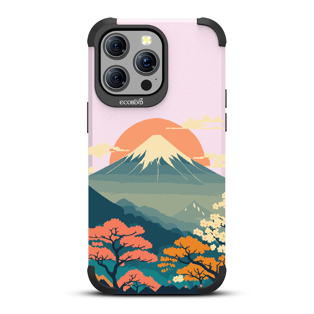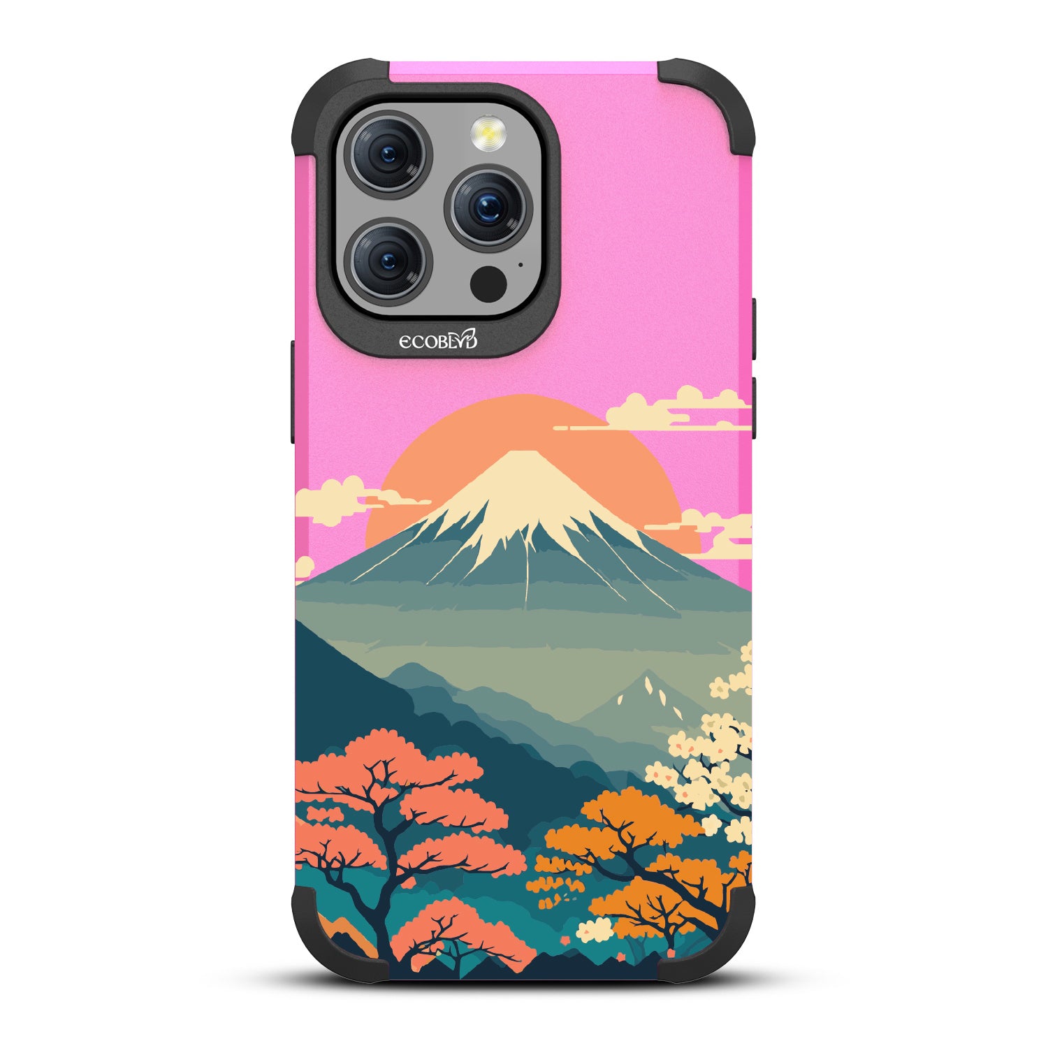 Witness the mesmerizing sunrise over Mt. Fuji with this captivating design on our Mojave rugged Mojave rugged iPhone 15 Pro Max MagSafe case. As dawn breaks over Japan's iconic peak, painting the sky in hues of pink and orange, let your phone transport you to the serene beauty of this majestic landmark.