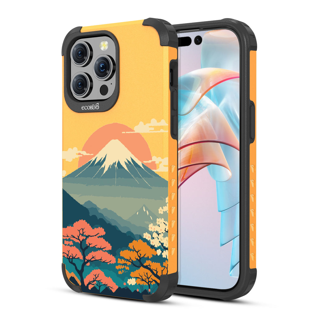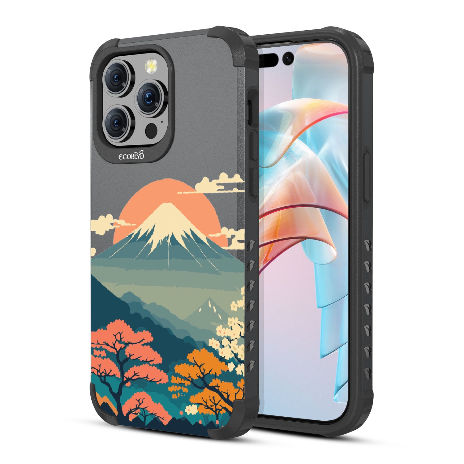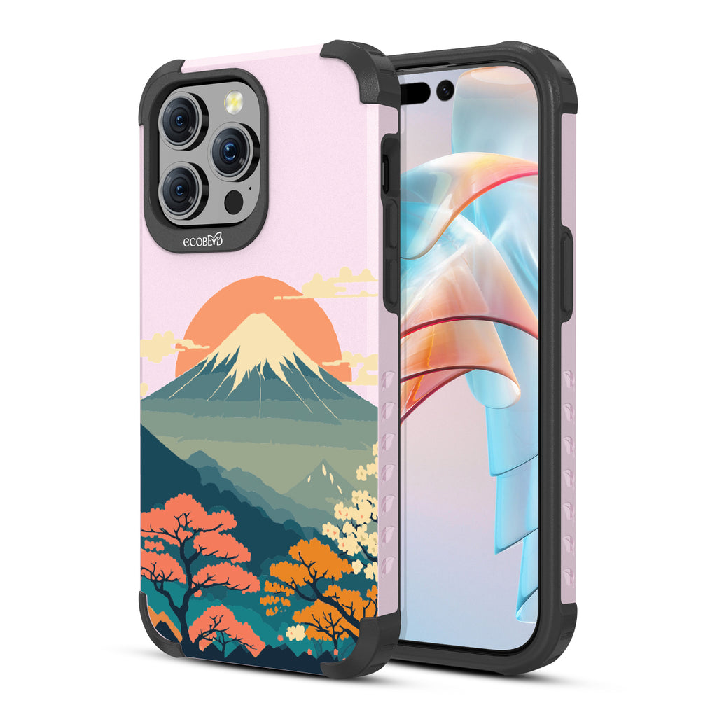 Witness the mesmerizing sunrise over Mt. Fuji with this captivating design on our Mojave rugged Mojave rugged iPhone 15 Pro Max MagSafe case. As dawn breaks over Japan's iconic peak, painting the sky in hues of pink and orange, let your phone transport you to the serene beauty of this majestic landmark.