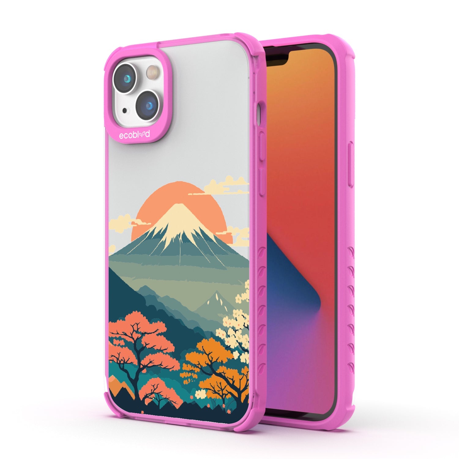 Witness the mesmerizing sunrise over Mt. Fuji with this captivating design on our Laguna clear iPhone 16e, iPhone 14, and iPhone 13 phone case. As dawn breaks over Japan's iconic peak, painting the sky in hues of pink and orange, let your phone transport you to the serene beauty of this majestic landmark.