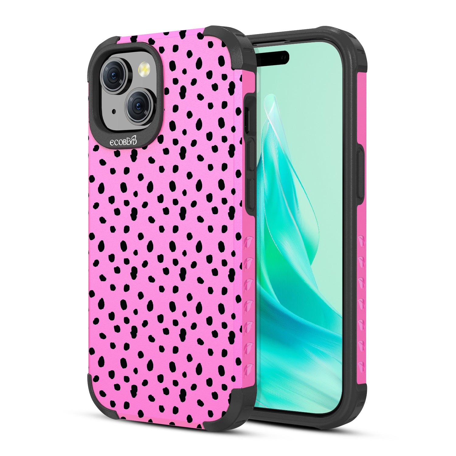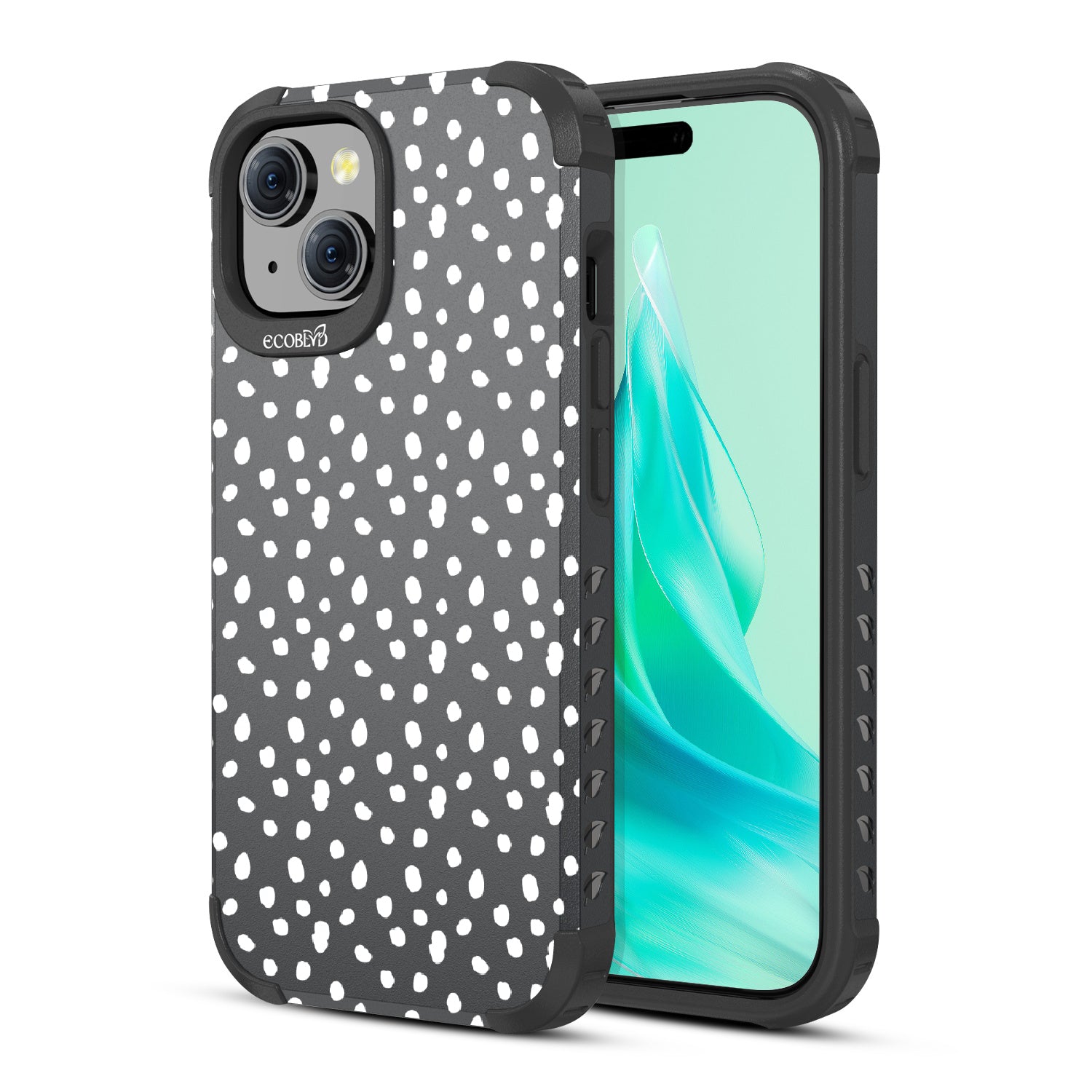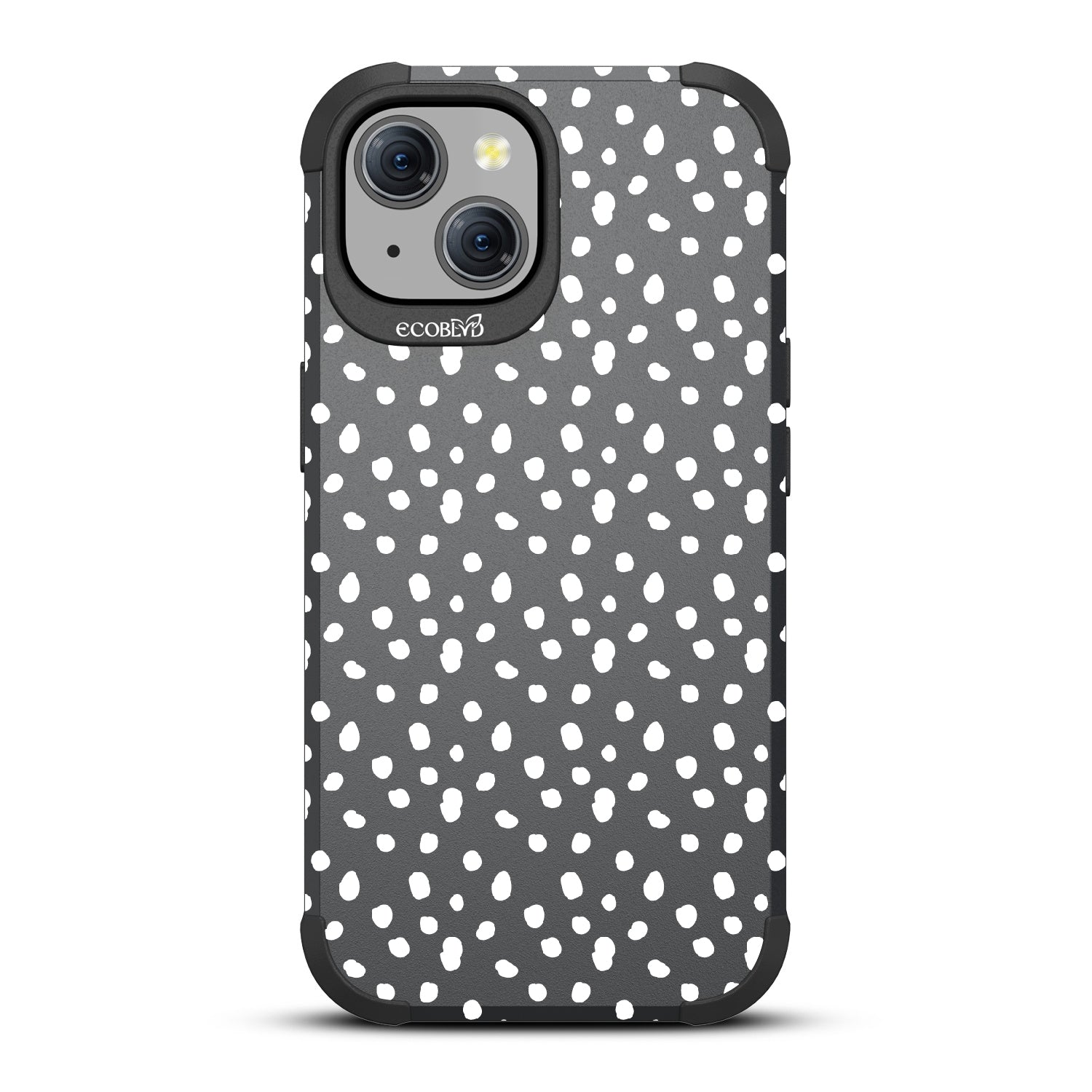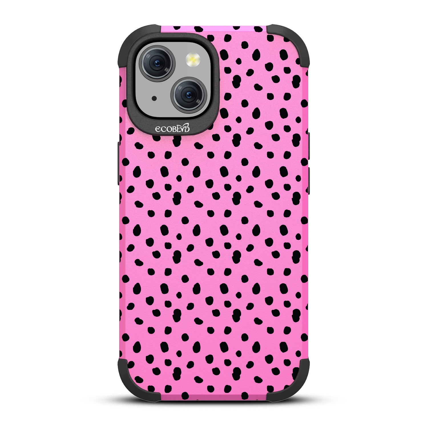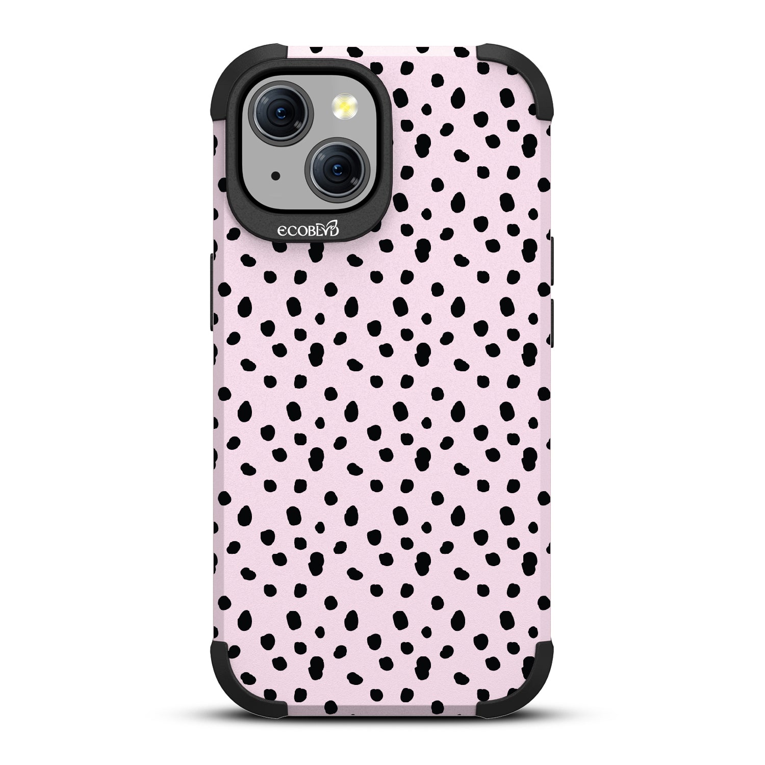 In case you are in need of a new look stat, the On The Dot design on our Mojave rugged and compostable iPhone 15 case. is here to spot you with a fashionable polka dot pattern reminiscent of Dalmatian and cheetah prints, adding a fierce splash of personality to your phone and style. Available in five colorways: Midnight Black, Cascade Blue, Wildflower Pink, Illuminating Yellow, and the exclusive Pastel Lilac!