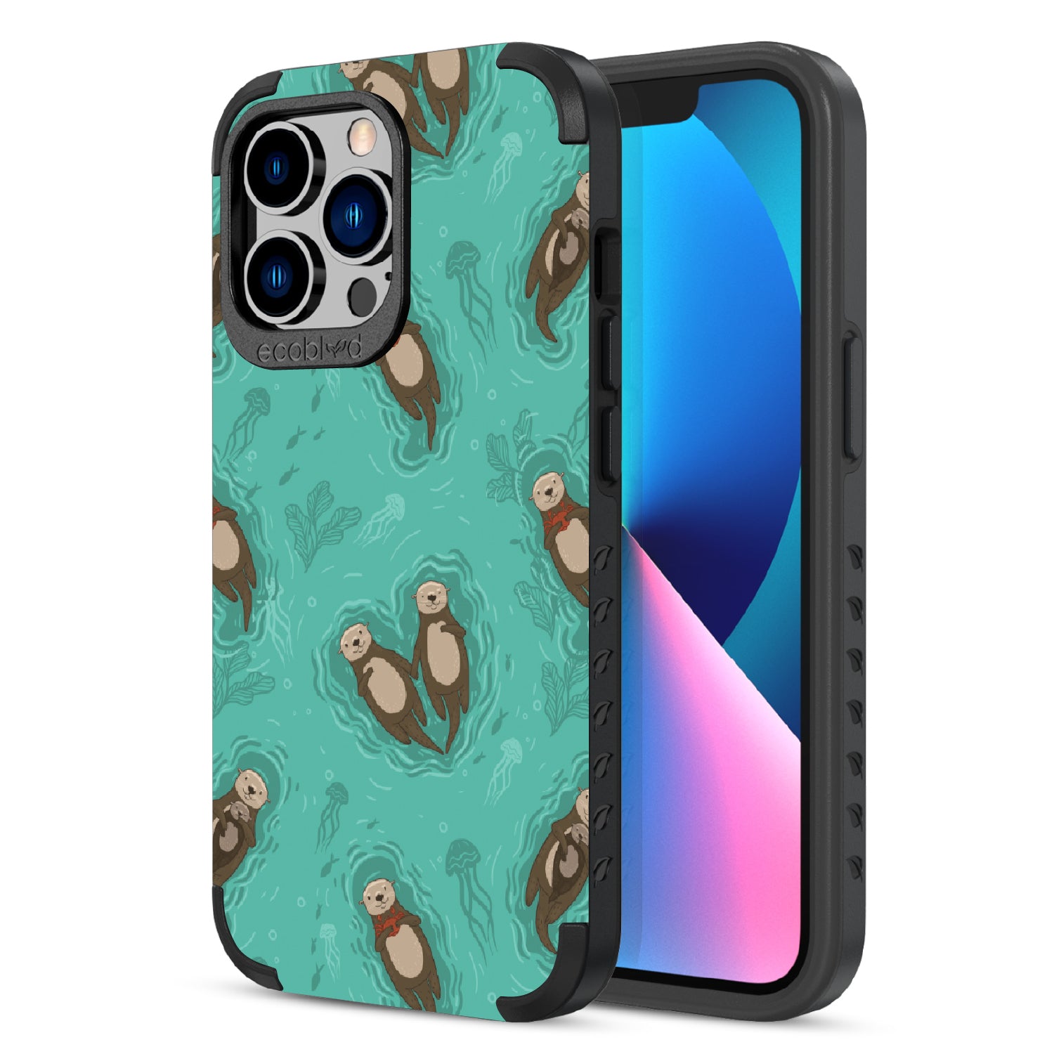 Feeling a bit otter-the-ordinary? The Otter Delight design on our Mojave rugged and compostable iPhone 13 Pro phone case, is here to make waves with its charming otters floating paw in paw, surrounded by gentle jellyfish and swaying seaweed. These laid-back otters are pros at going with the flow, showing us how to drift through life with ease. So take the plunge with your phone, and let these adorable otters remind you that the best moments happen when you just take it easy.