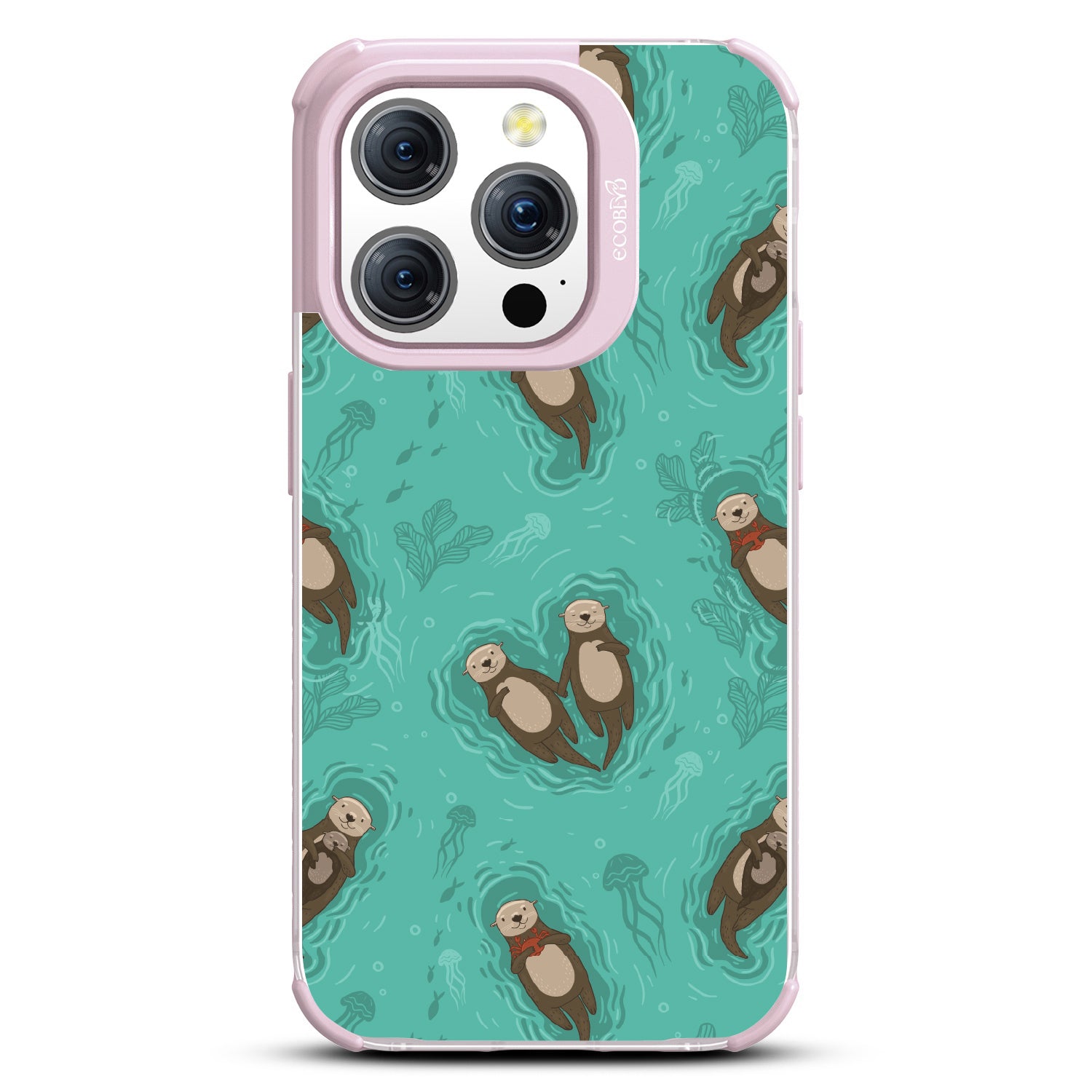 Feeling a bit otter-the-ordinary? The Otter Delight design on our Laguna clear iPhone 15 Pro phone case is here to make waves with its charming otters floating paw in paw, surrounded by gentle jellyfish and swaying seaweed. These laid-back otters are pros at going with the flow, showing us how to drift through life with ease. So take the plunge with your phone, and let these adorable otters remind you that the best moments happen when you just take it easy.