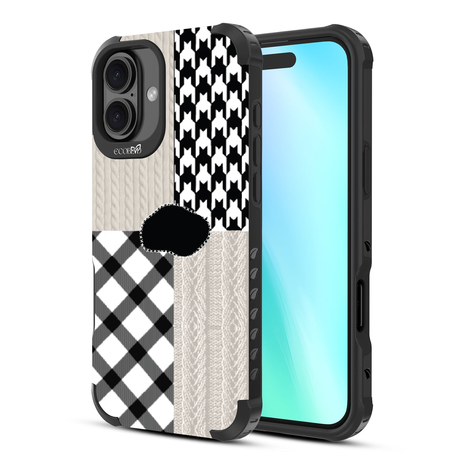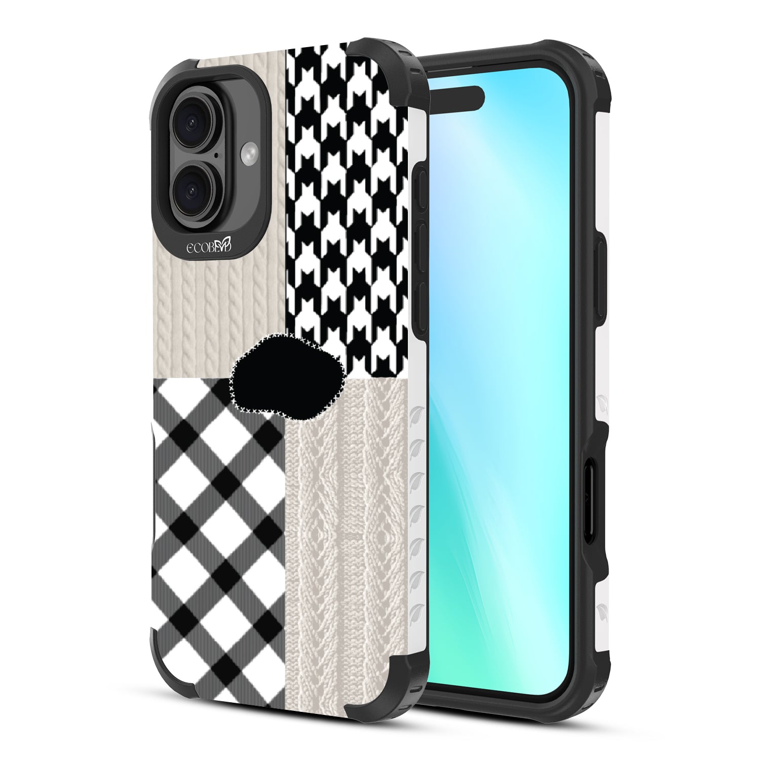 Mix and match your phone's style with the Pattern Play design on our Reforge rugged iPhone 16 Plus phone case. It's where cozy cable knit meets classic houndstooth, plaid dances with more cable knit, and the black uneven patch is the unexpected twist that makes your phone's look uniquely fabulous.
