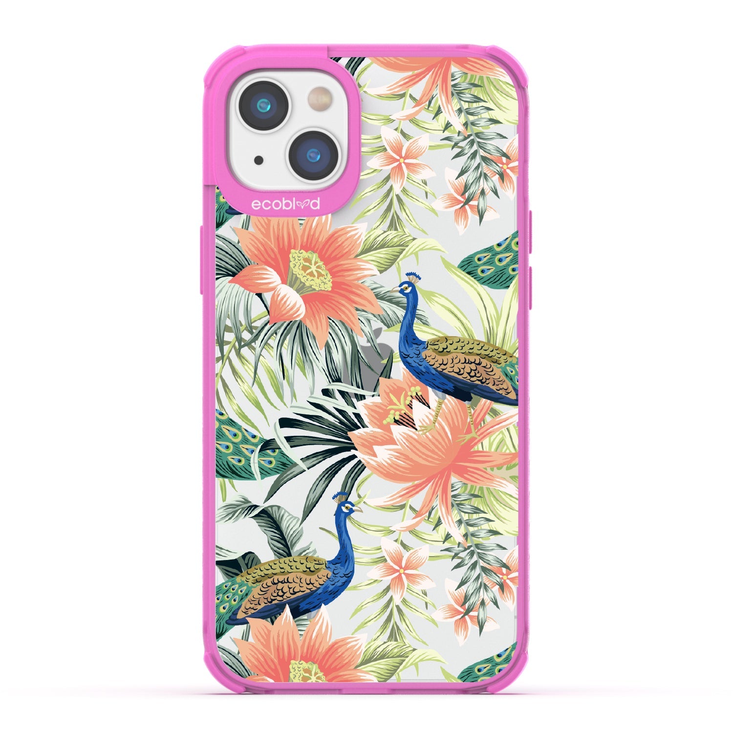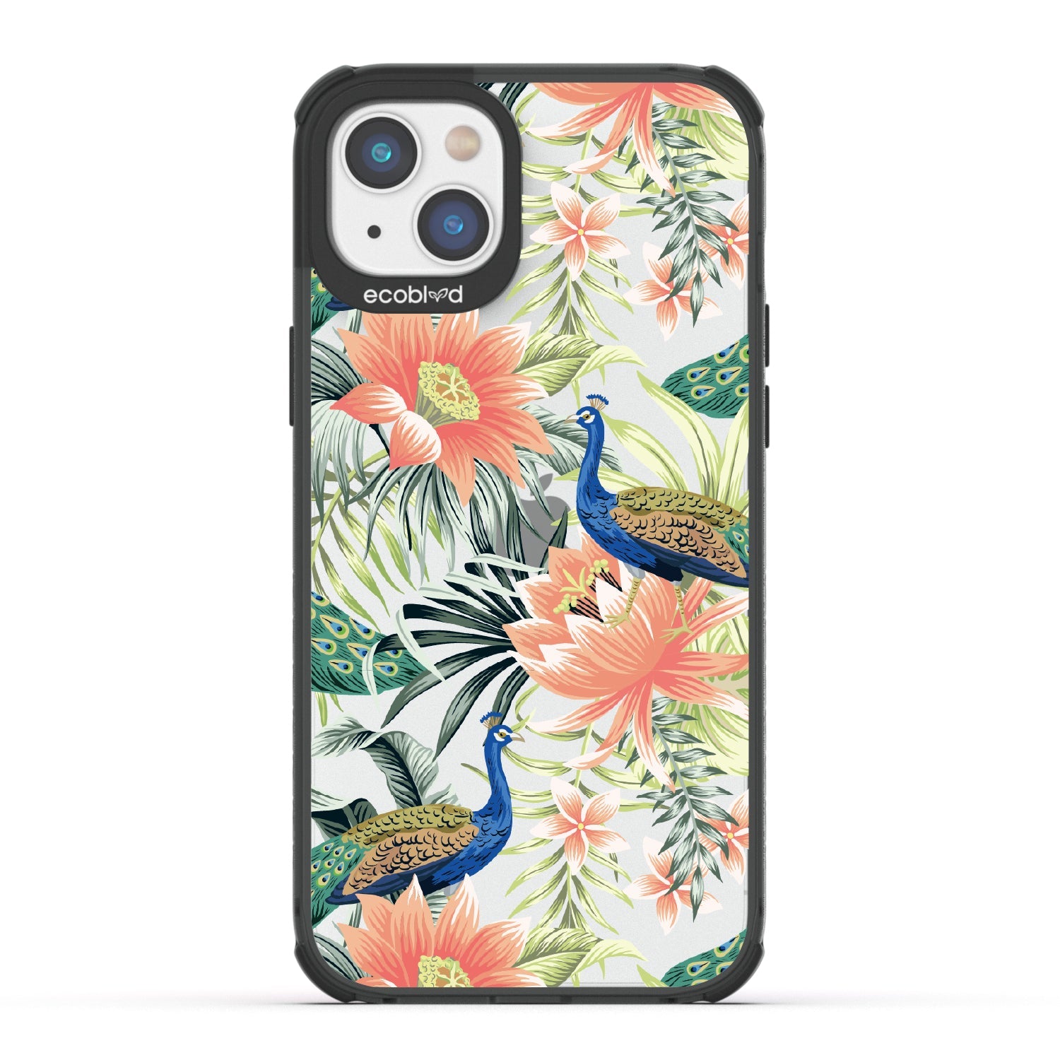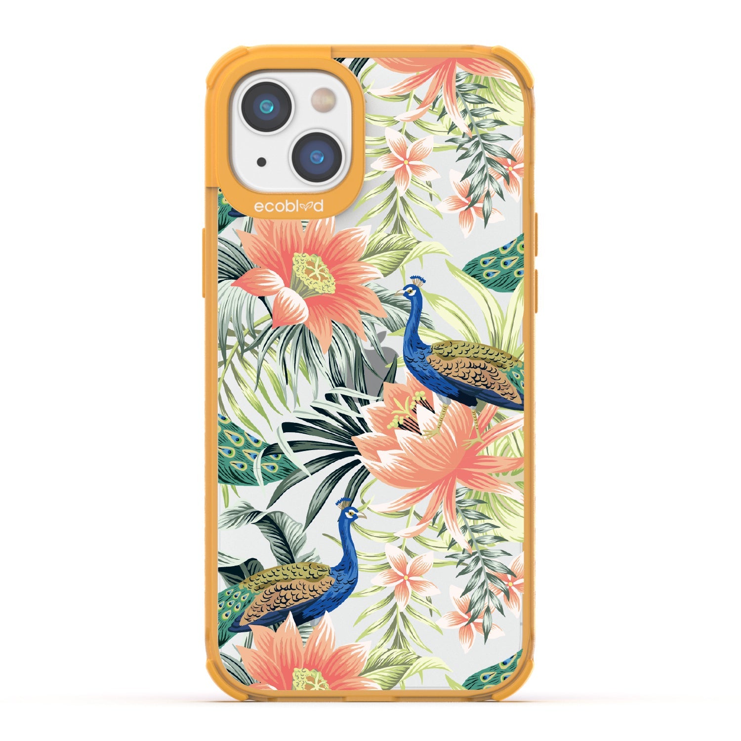 Immerse yourself in a sanctuary of regality and luxury, where the resplendent display of the peacock takes center stage on the Peacock Palace design, an exclusive design crafted for the Laguna clear iPhone 16e, iPhone 14, and iPhone 13 case. Embrace the lavish colors and intricate patterns that adorn the peacock's majestic presence while supporting ocean conservation efforts. Peacock Palace is like a royal court of vibrant colors and exotic birds, a place where the peacock's lavish display can be fully appreciated in all its glory. The tropical fauna that surrounds it is like the lush gardens that adorn the palace walls, adding to its majestic charm in five captivating colors: Midnight Black, Cascade Blue, Foilage Green, Illuminating Yellow, and Wildflower Pink. So let Peacock Palace help you explore new horizons, express your true self with confidence, and revel in the luxurious beauty that surrounds you!