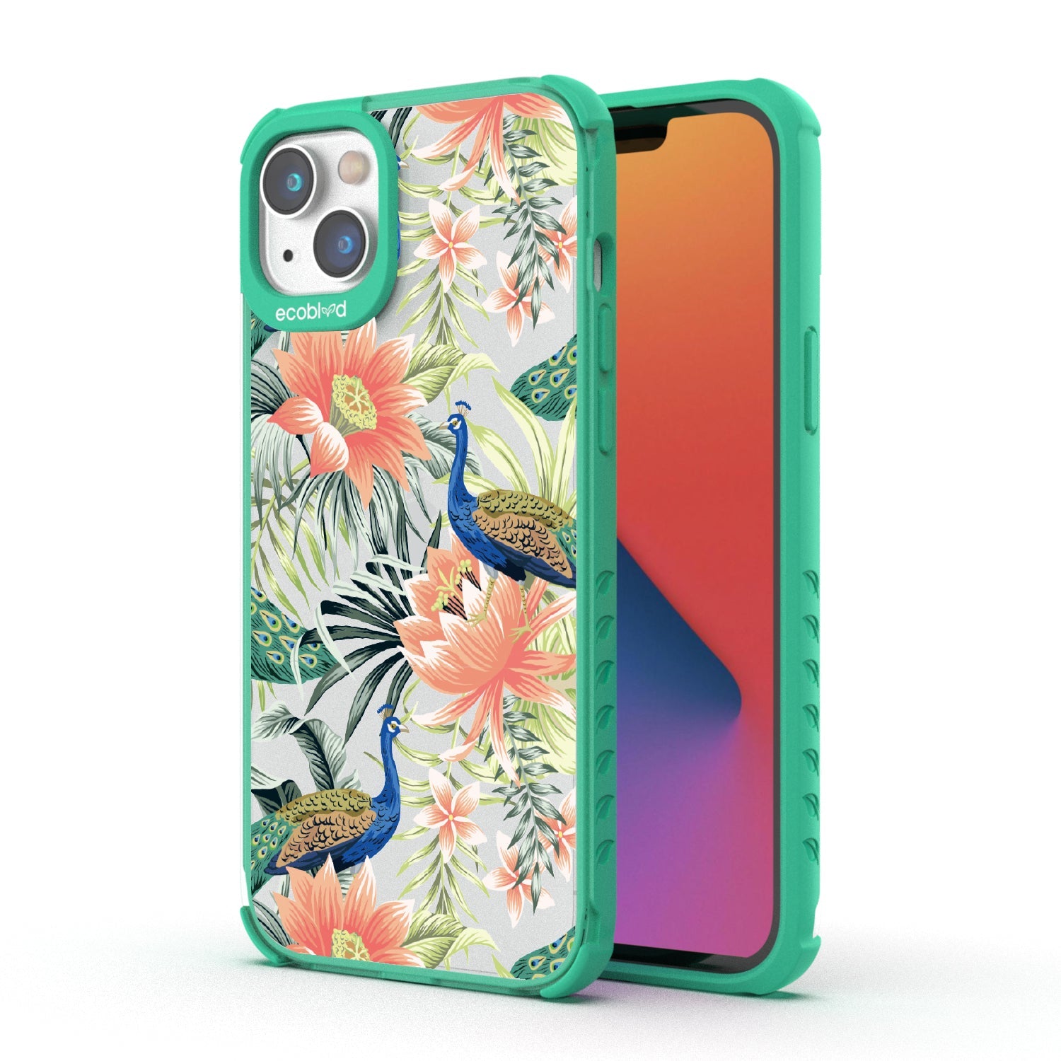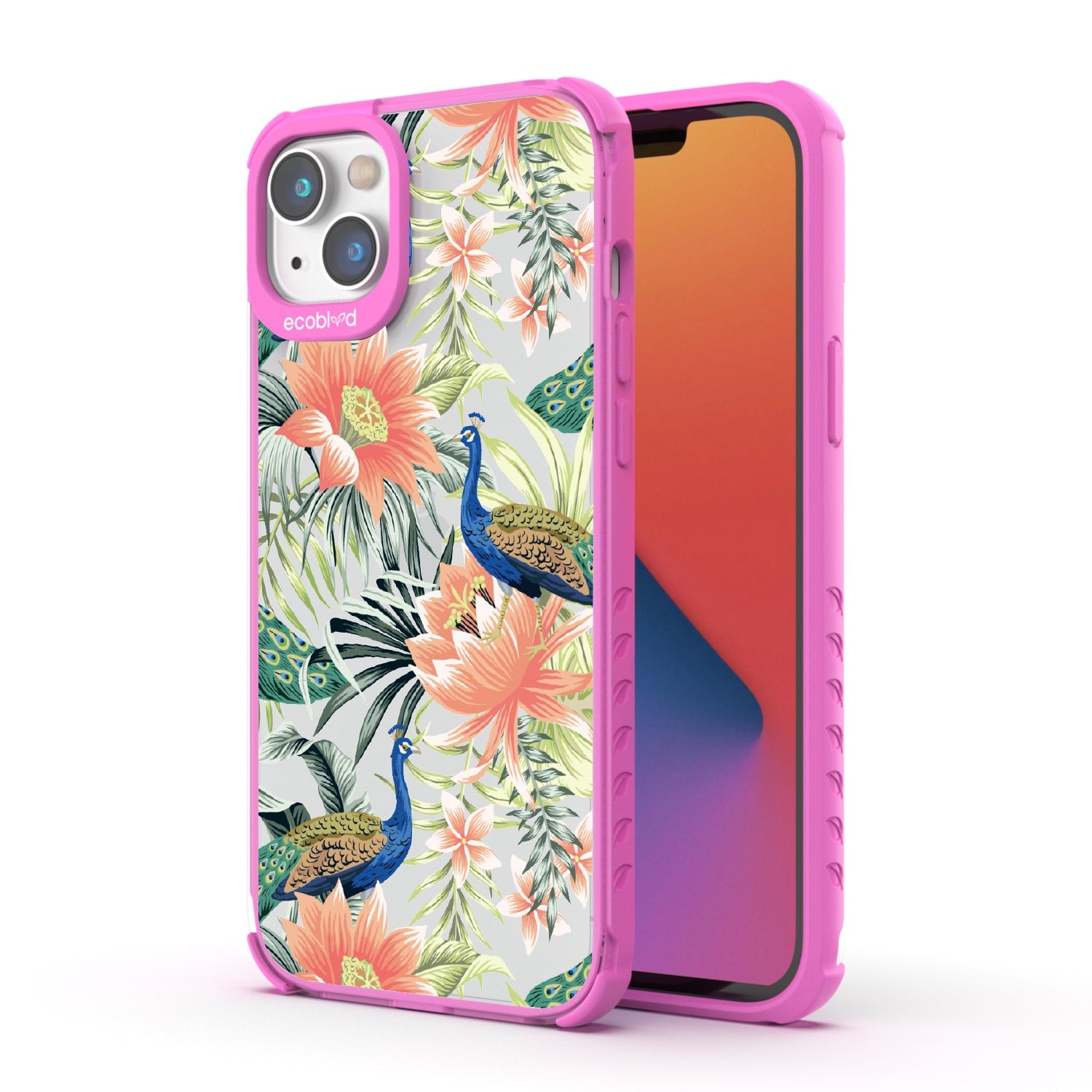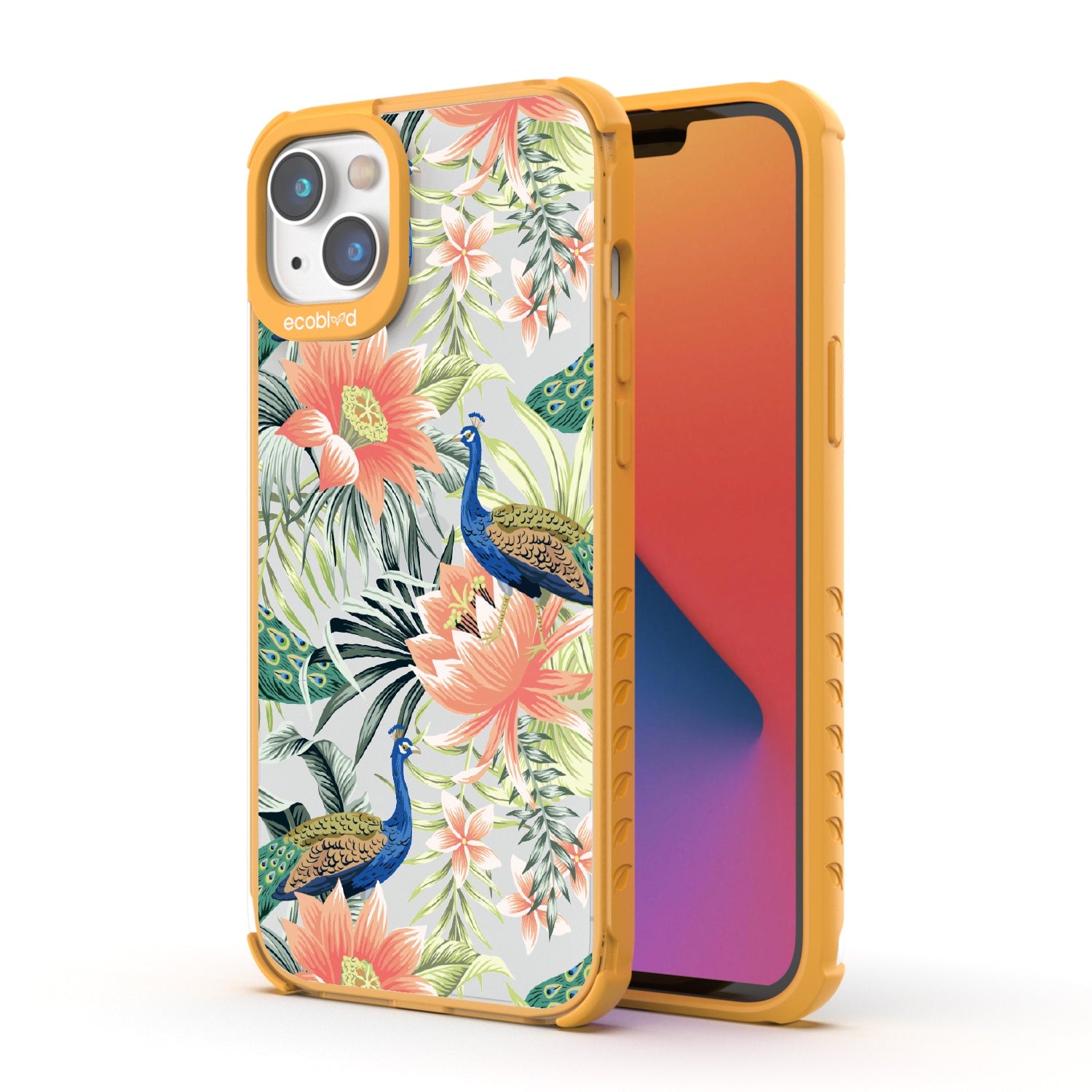 Immerse yourself in a sanctuary of regality and luxury, where the resplendent display of the peacock takes center stage on the Peacock Palace design, an exclusive design crafted for the Laguna clear iPhone 16e, iPhone 14, and iPhone 13 case. Embrace the lavish colors and intricate patterns that adorn the peacock's majestic presence while supporting ocean conservation efforts. Peacock Palace is like a royal court of vibrant colors and exotic birds, a place where the peacock's lavish display can be fully appreciated in all its glory. The tropical fauna that surrounds it is like the lush gardens that adorn the palace walls, adding to its majestic charm in five captivating colors: Midnight Black, Cascade Blue, Foilage Green, Illuminating Yellow, and Wildflower Pink. So let Peacock Palace help you explore new horizons, express your true self with confidence, and revel in the luxurious beauty that surrounds you!