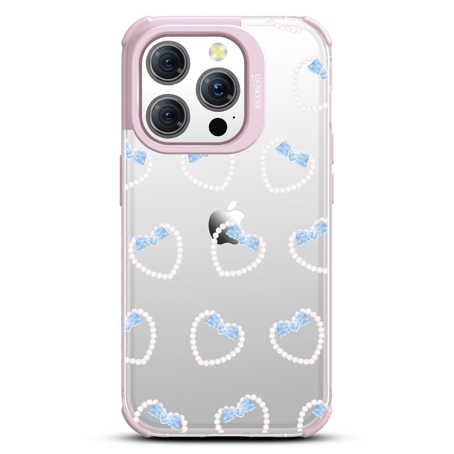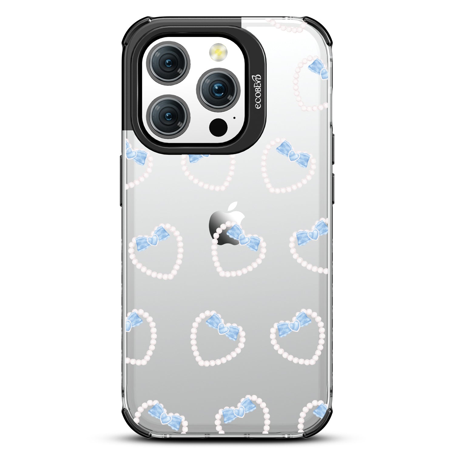 Pure bliss is found in the details, so find yours in the Pearl Bliss design on our Laguna clear iPhone 15 Pro phone case. Luminous pearls and delicate blue bows weave together in intricate heart shapes, crafting an irresistibly dreamy look that captivates. Every detail is meticulously crafted to make those around you want more and more.