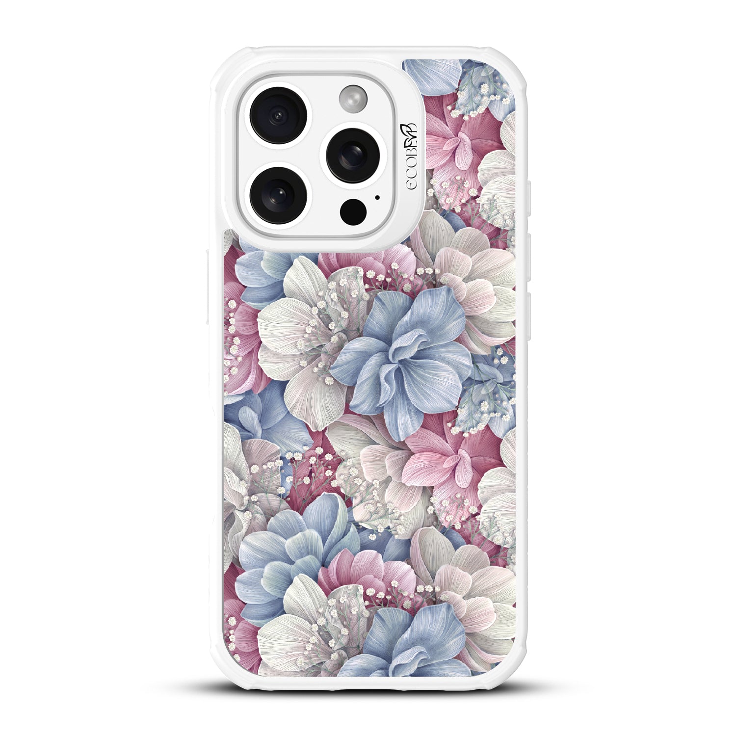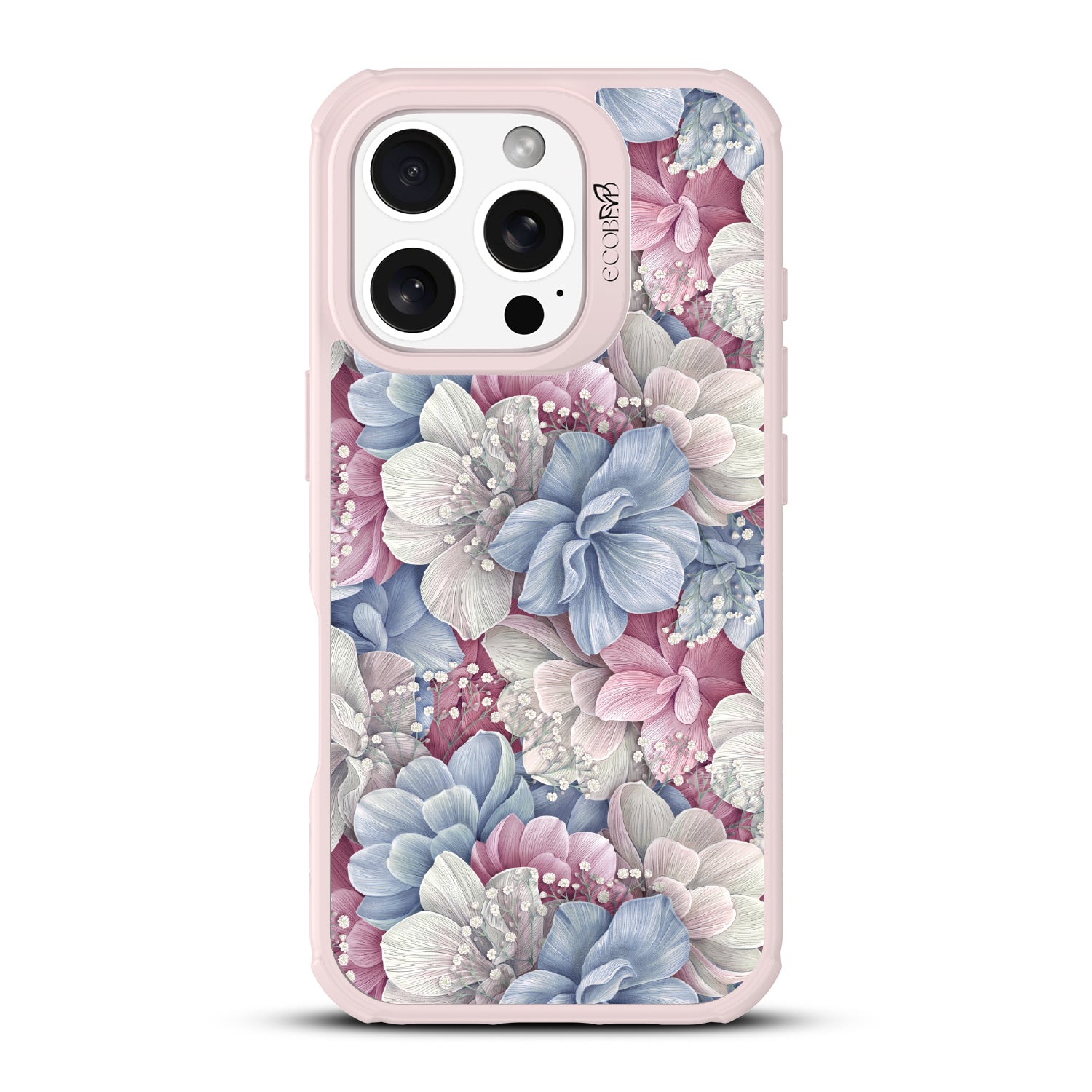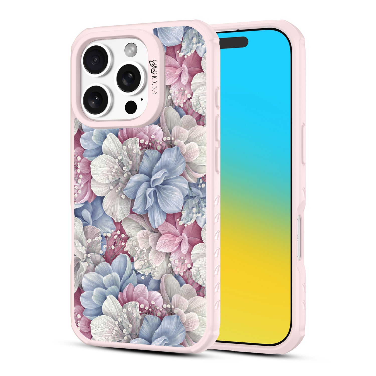 The Petals & Pearls design on our Revive clear iPhone 16 Pro phone case is like a melody of spring, its pastel colors swaying like a sweet tune and the water droplets on the petals ringing like pearls, harmoniously reflecting the blooming beauty of the season.