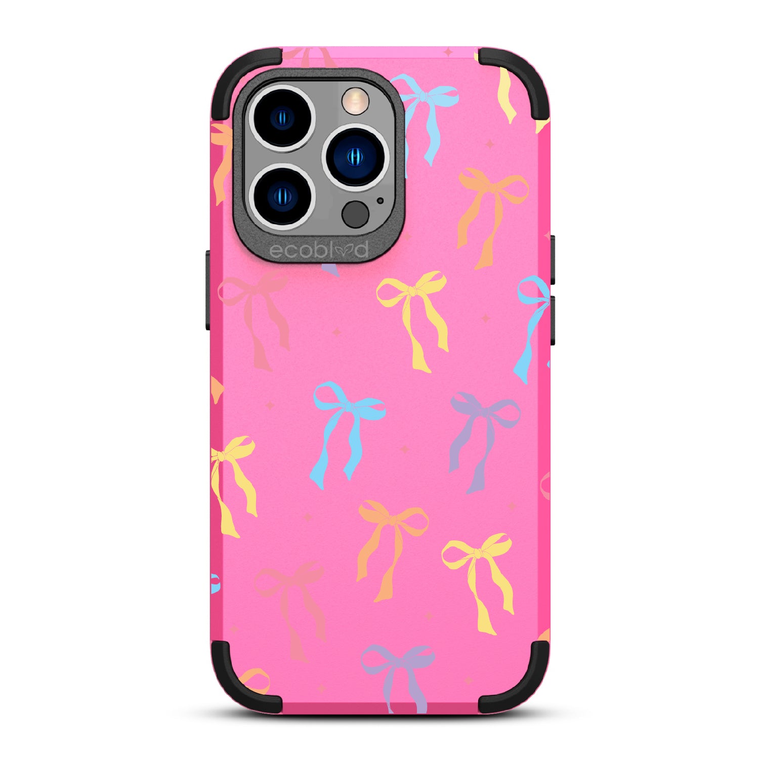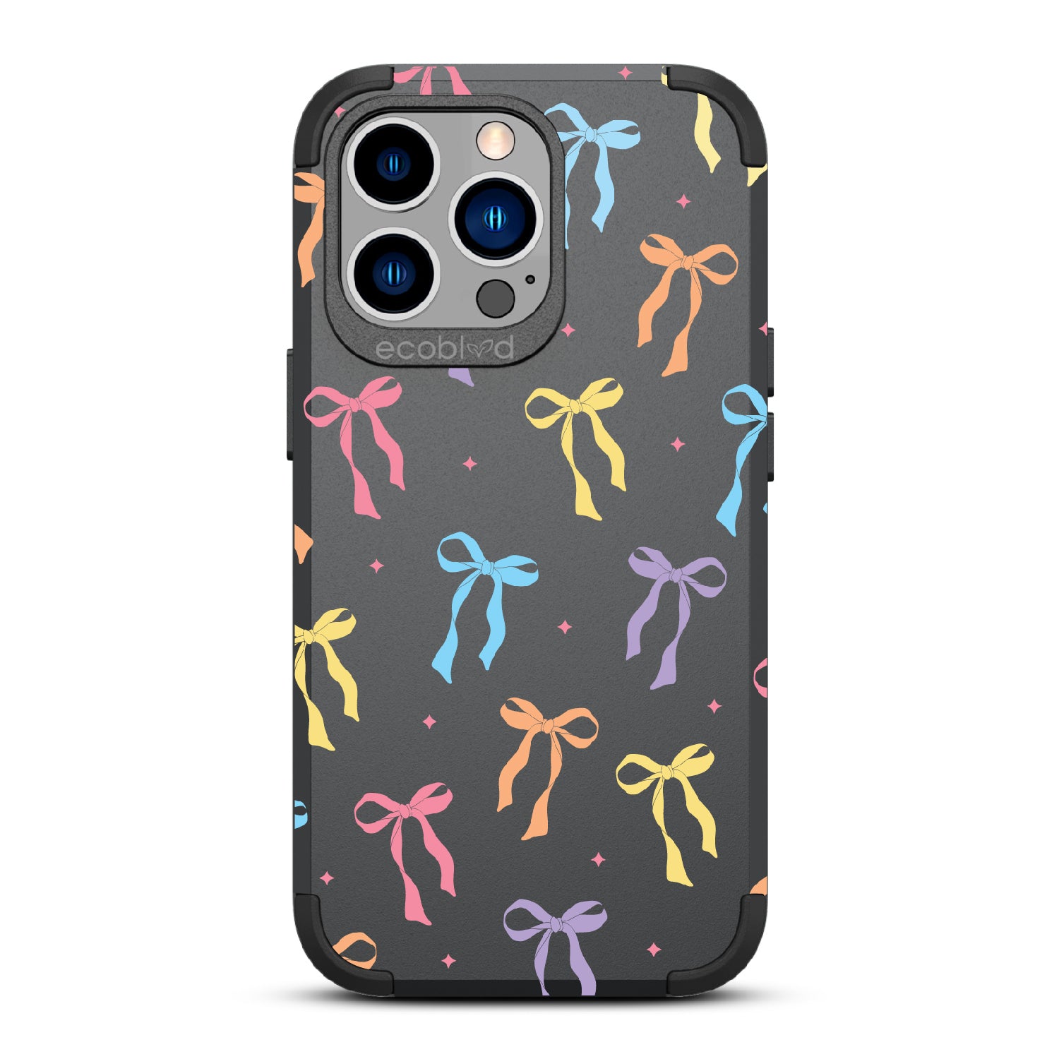 iPhone 13 Pro phone case. Showcasing pastel bows that seem to float effortlessly on a delicate backdrop, this design brings a flirty, soft girl aesthetic to your phone, making it a perfect accessory for expressing your playful and sophisticated side. Choose Ribbon Dreams and let your phone reflect your dreamiest, most charming self.