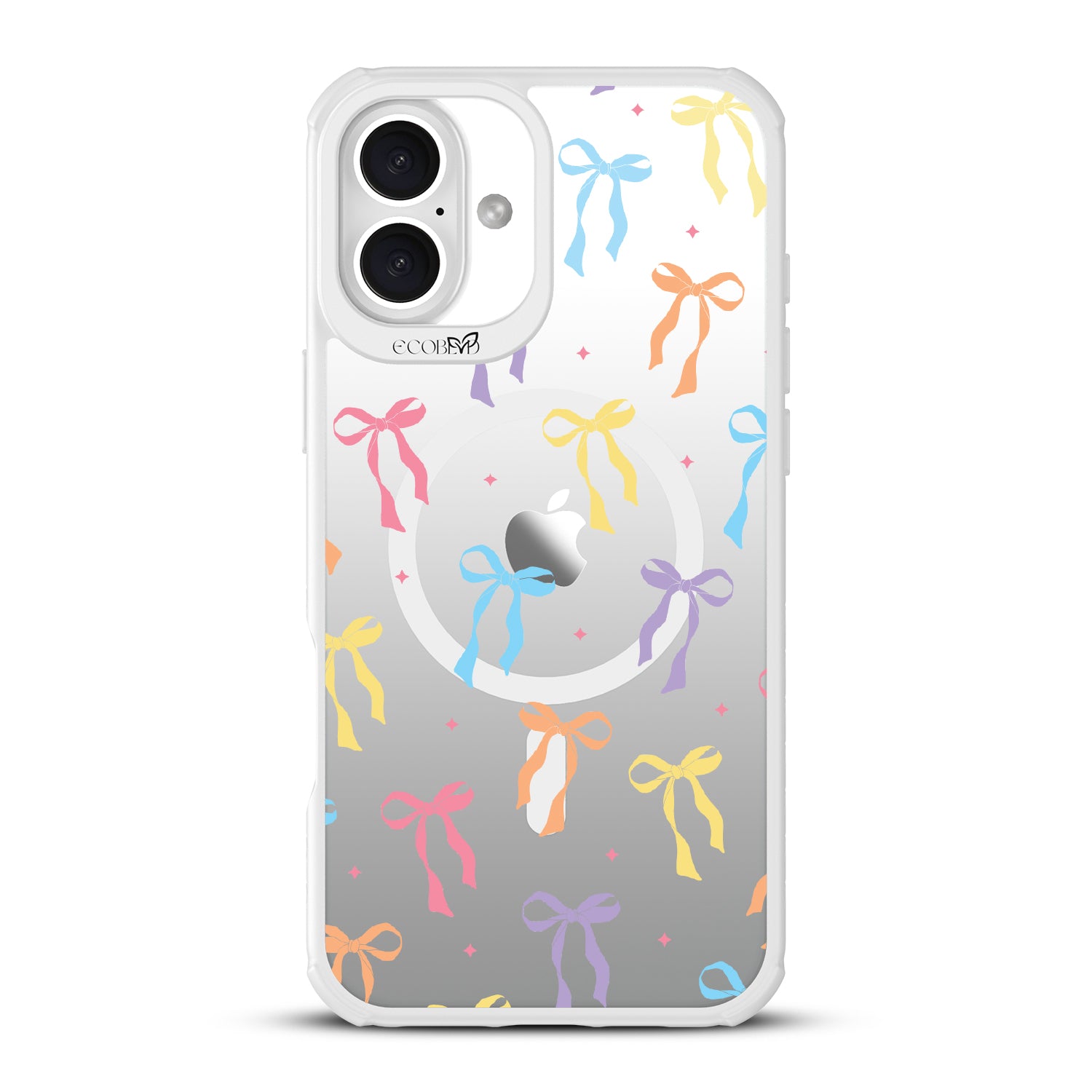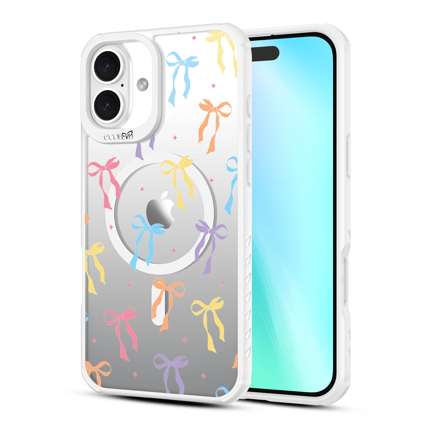 Live your coquette fantasy with the Ribbon Dreams design on our Revive clear iPhone 16 PlusĀ phone case. Showcasing pastel bows that seem to float effortlessly on a delicate backdrop, this design brings a flirty, soft girl aesthetic to your phone, making it a perfect accessory for expressing your playful and sophisticated side. Choose Ribbon Dreams and let your phone reflect your dreamiest, most charming self.