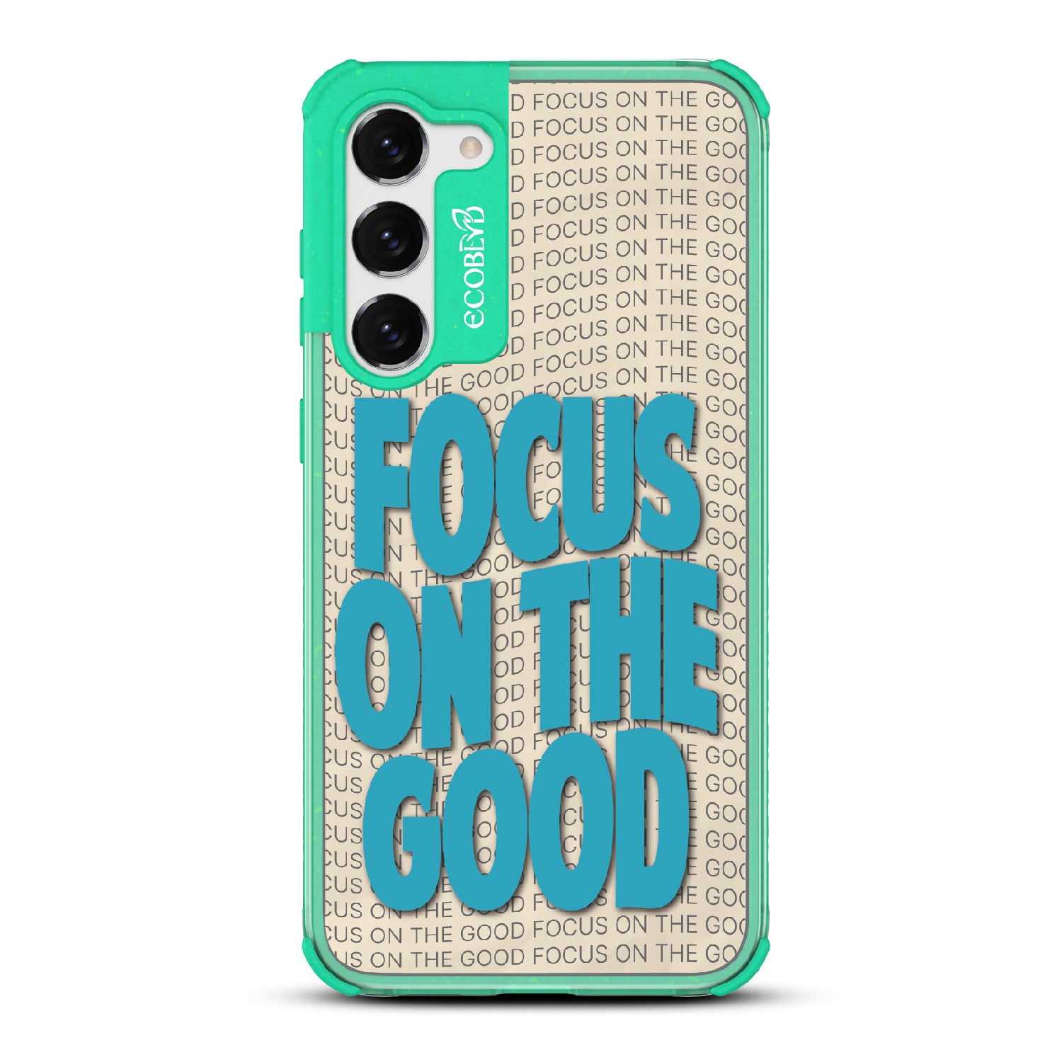 Break free from negativity and Focus On The Good with this optimistic design on our Laguna clear Galaxy S23 Plus case. Declare your commitment to leaving behind the negative energy, allowing this affirmation to guide your mindset toward confidence and positivity. Keep a positive attitude on your phone!