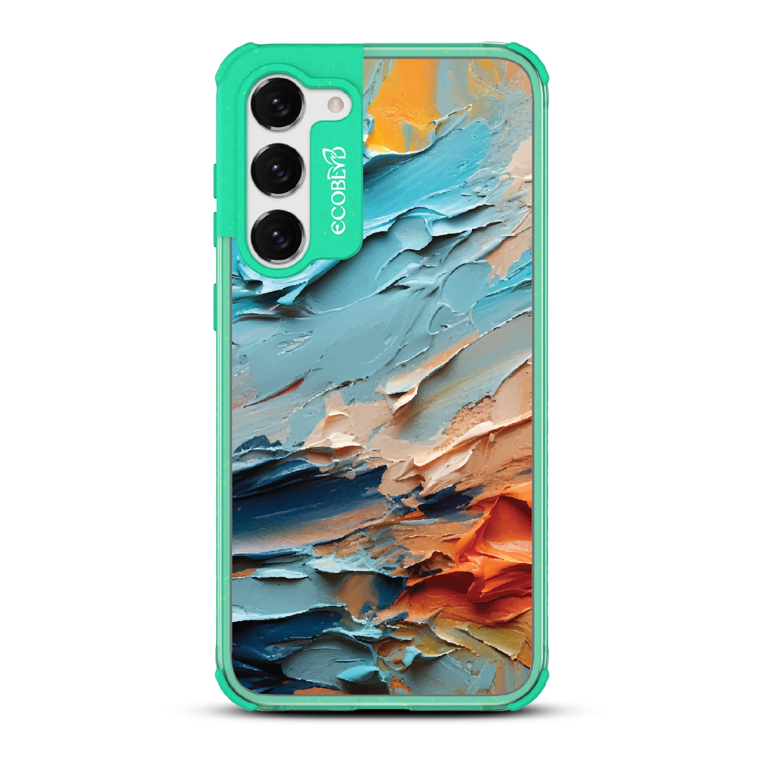 What you see depends on how you frame it. With thick layers of impasto brushstrokes, the Frame of Mind design on our Laguna clear Galaxy S23 Plus case blends deep blues and fiery oranges into a striking composition. A piece that proves art, like perspective, is always shifting.