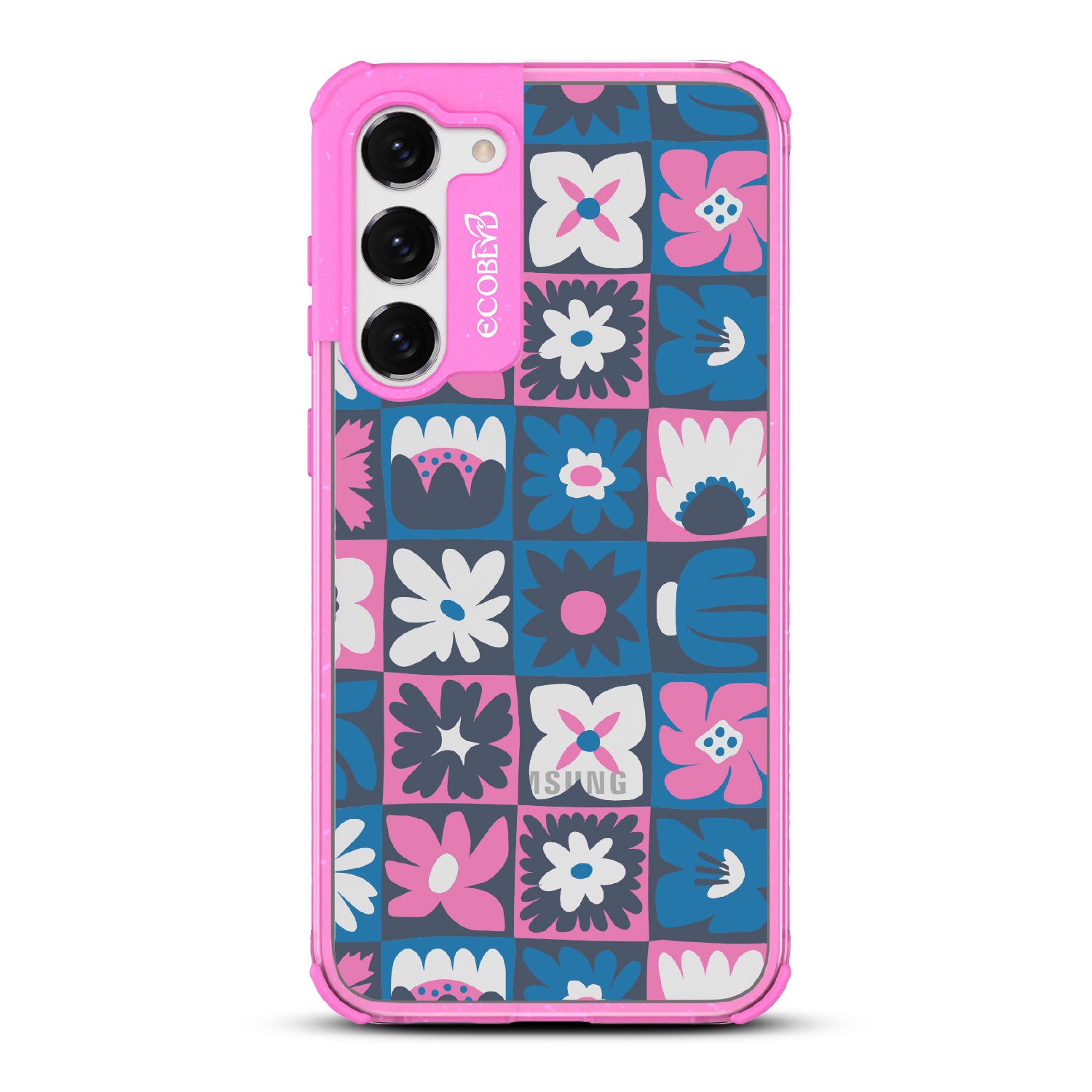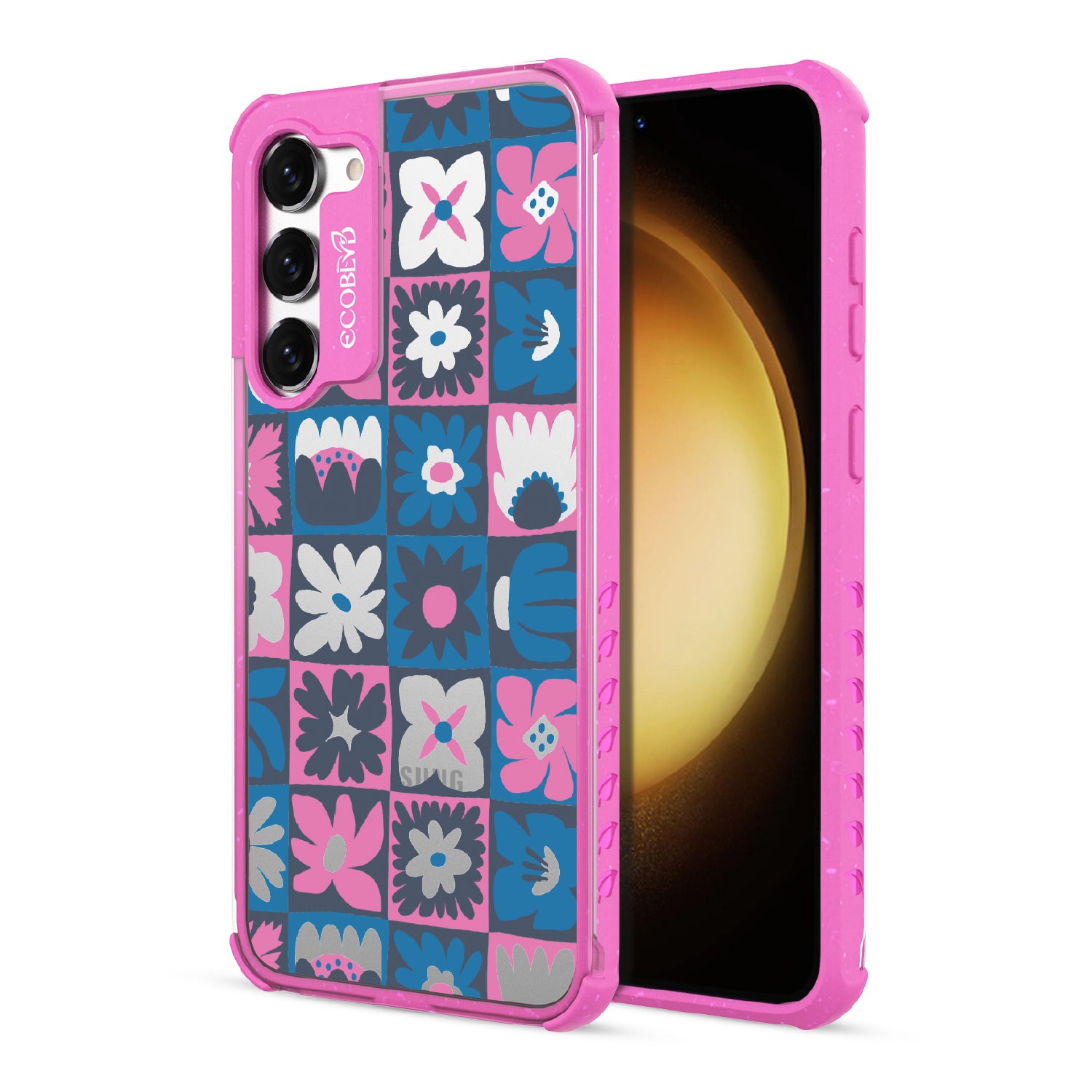 Feel the warmth of a tropical sanctuary with our Paradise Blooms Laguna clear Galaxy S23 Plus case. The mesmerizing gingham print sets the stage for a delightful display of radiant tropical flowers, reminiscent of a sun-drenched getaway. Allow the fusion of vibrant colors and vintage-inspired design to whisk you away to a blooming paradise, where your device becomes a portal to a world of relaxation, joy, and endless tropical adventures.