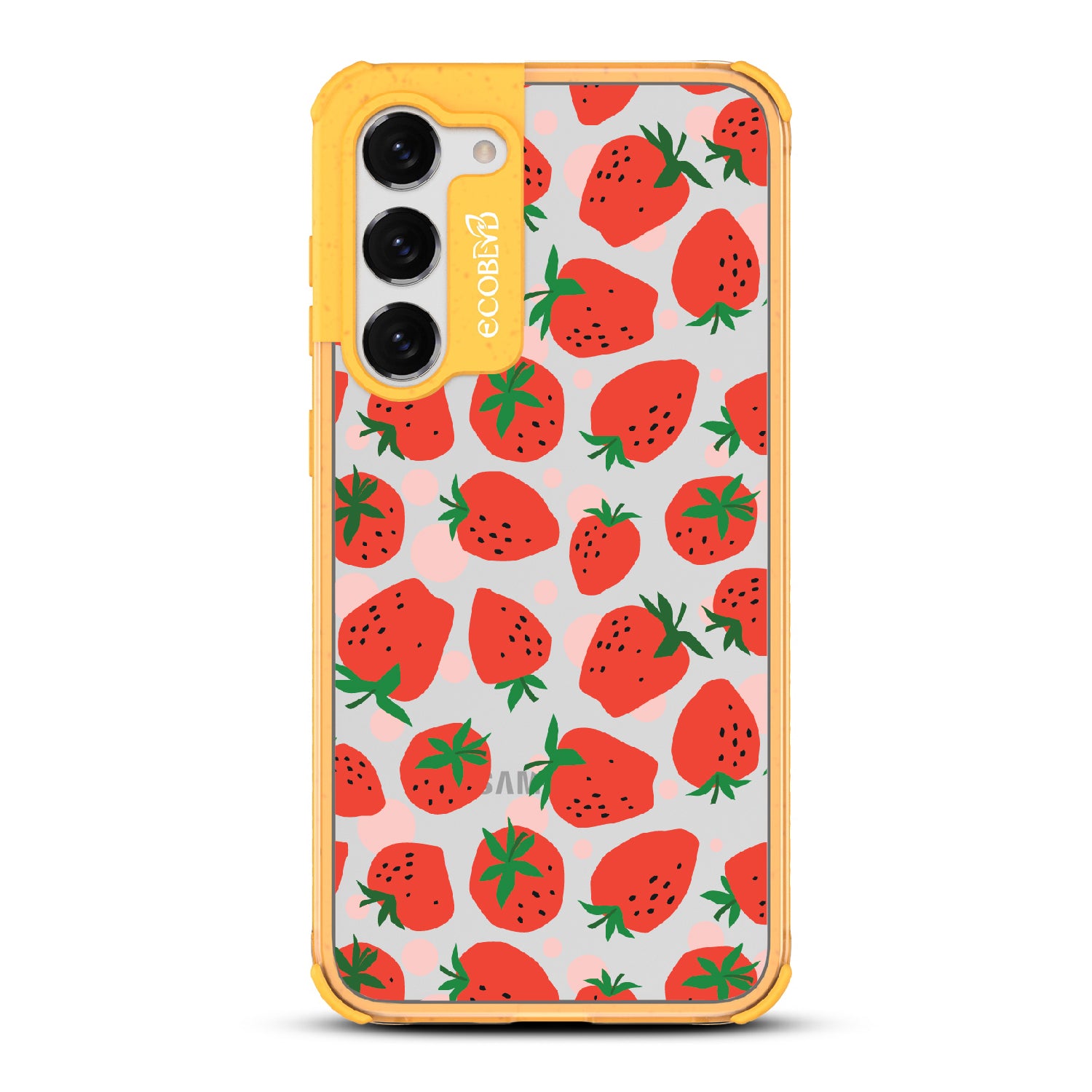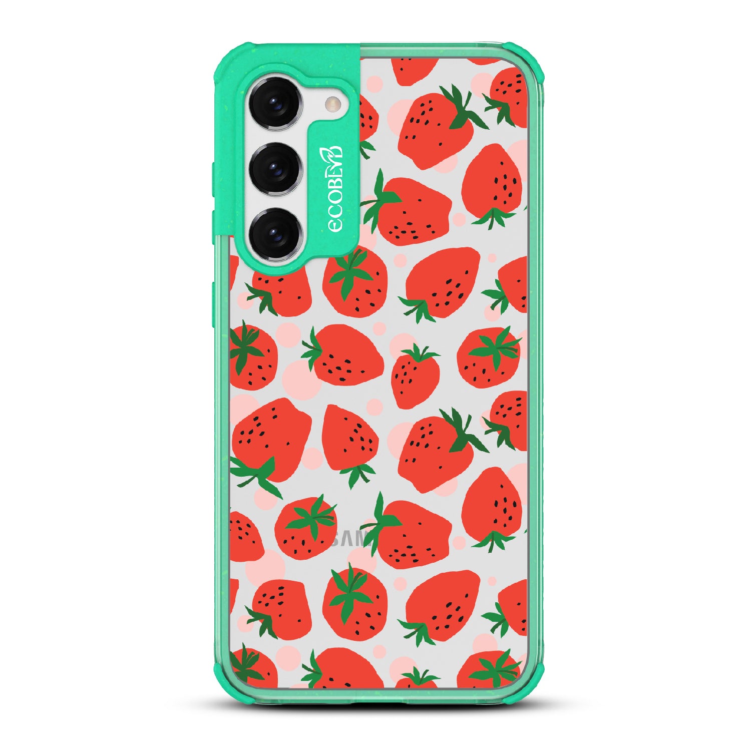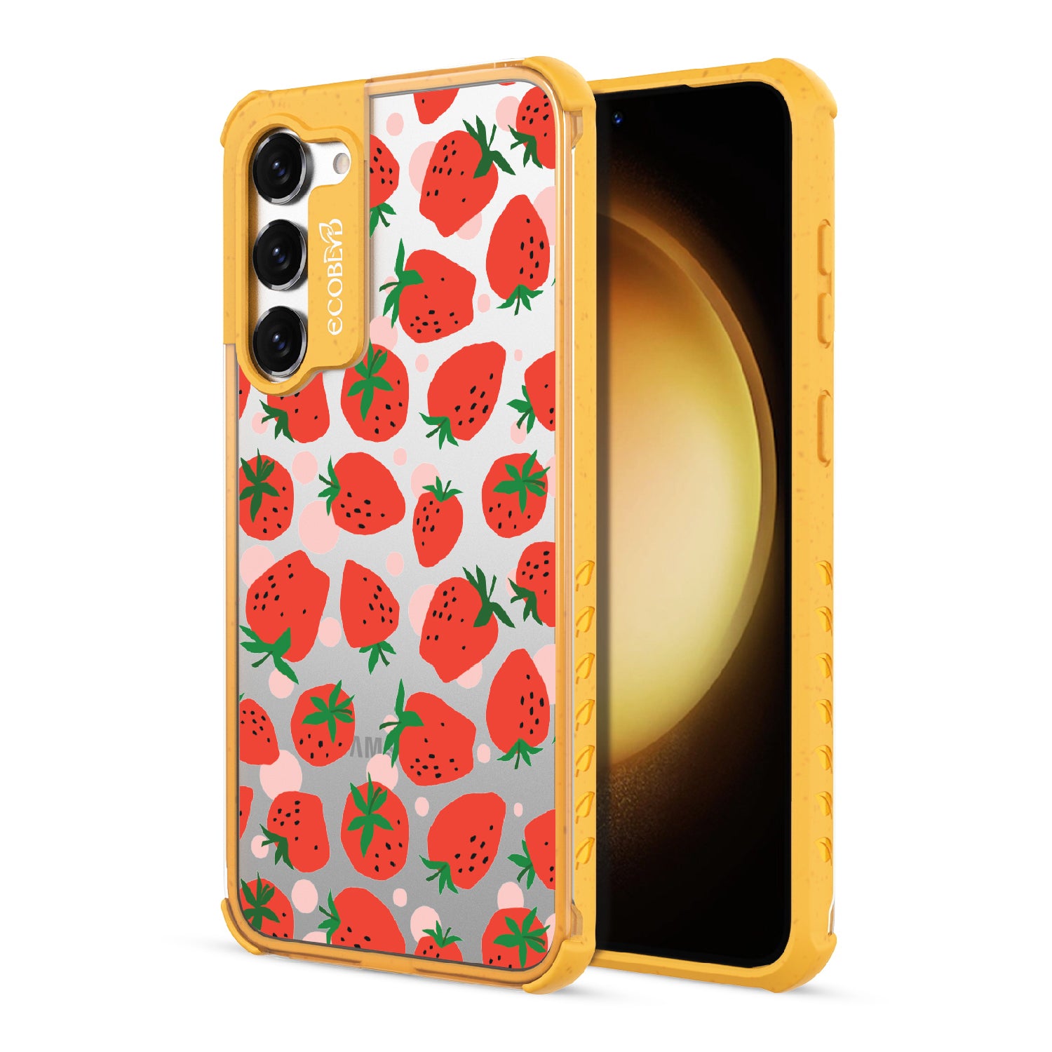 Prepare to pluck the freshest style with the Strawberry Fields design on our Laguna clear Galaxy S23 Plus case. As a juicy tribute to the vibrant flavors of summer, this design evokes the allure of ripe strawberries. This delightful fruit can transform your phone into a ripe treasure showcasing its beauty and taste. Get in on the berry-licious vibes and let the Strawberry Fields design be your ripe companion wherever you go.
