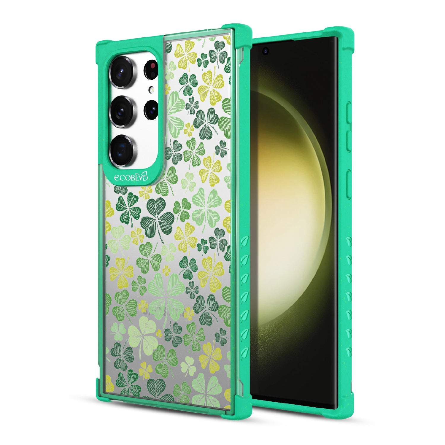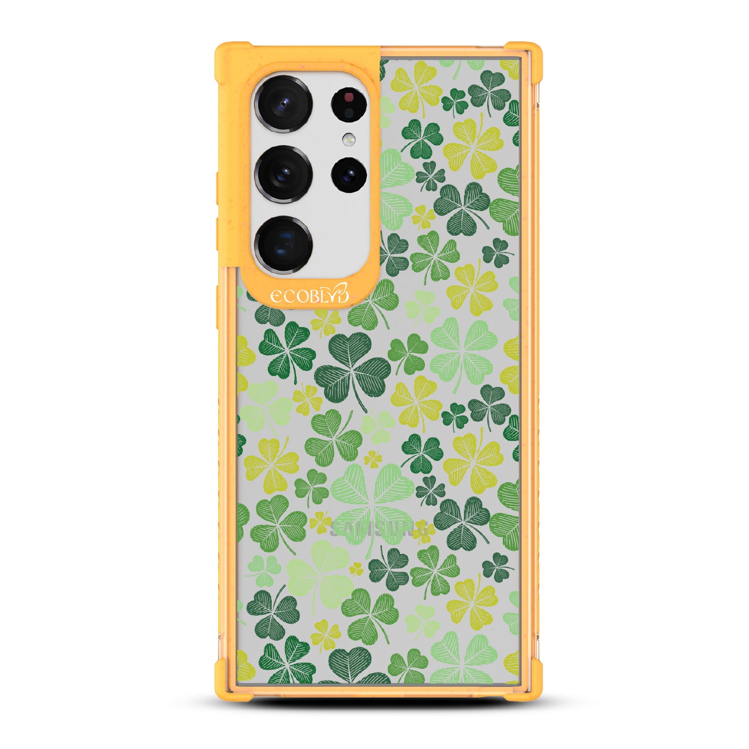 Turn your luck around with the vibrant Shamrock design on our Laguna clear Galaxy S23 Ultra case, where every leaf whispers tales of fortune and fate. Adorned with a sea of green four-leaf clovers, this design is a true emblem of luck, designed to bring a touch of charm.