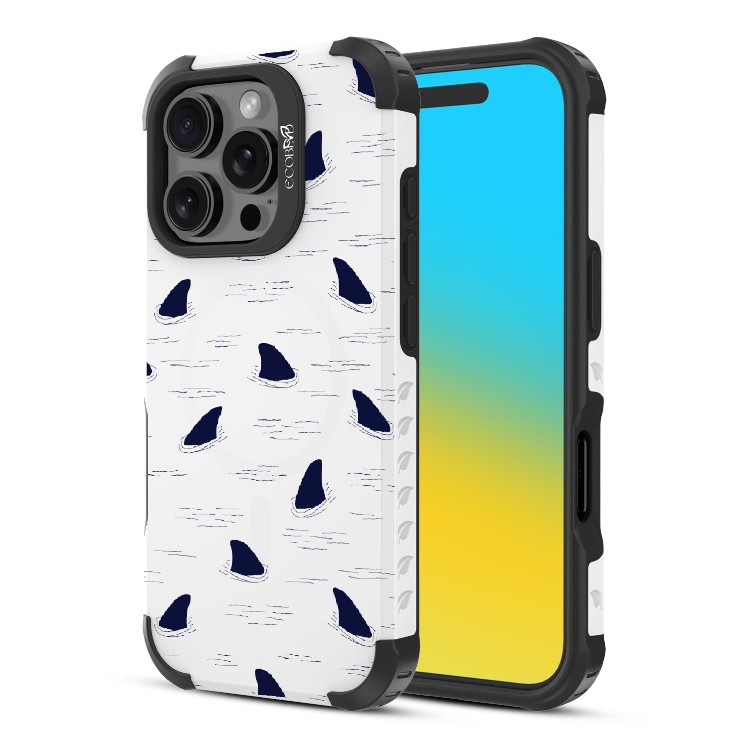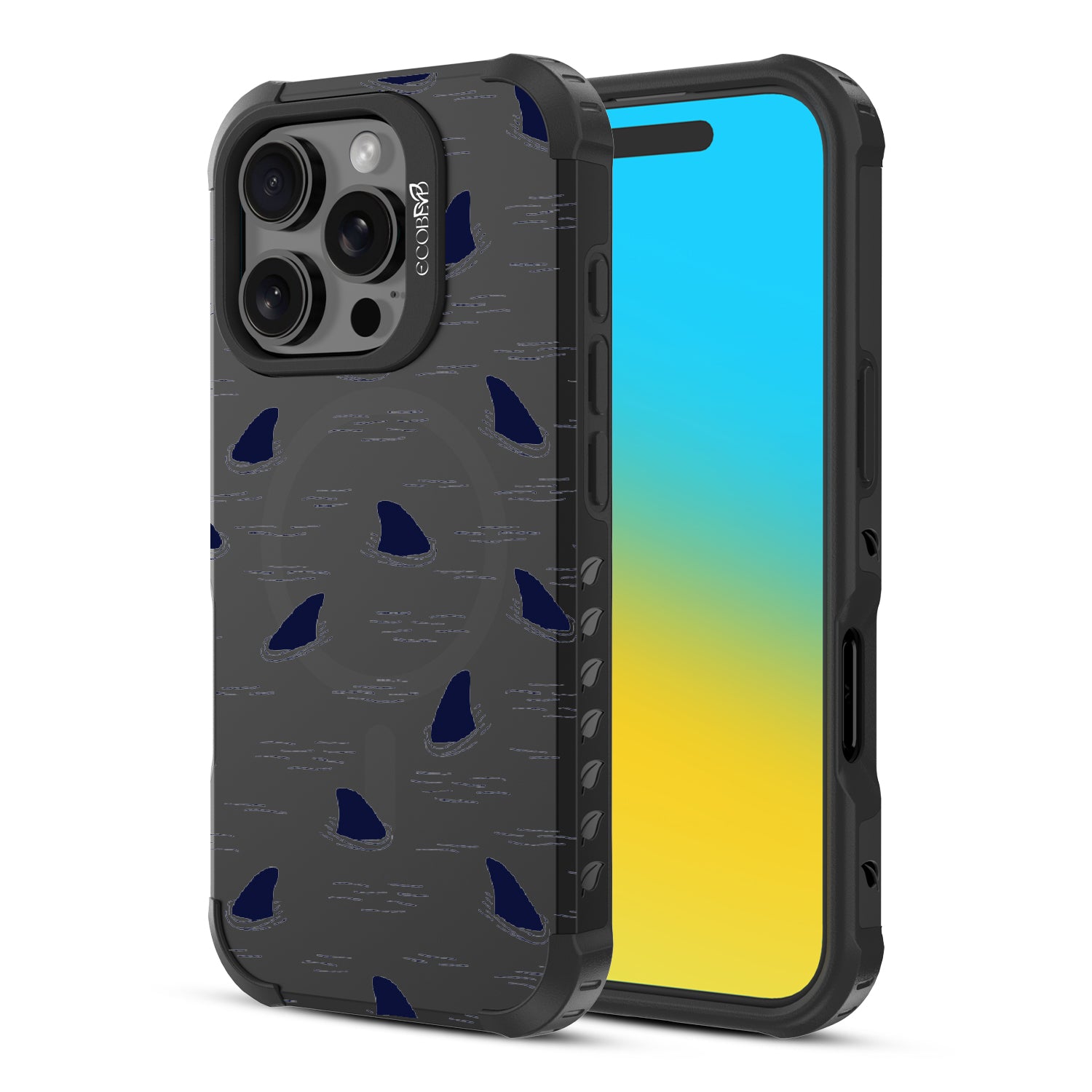 You never know what could be lurking around your phone as the Shark Fin design on our Reforge rugged iPhone 16 Pro phone case surrounds it with an adrenaline-pumping look that shows off your fearless side and your bold spirit - brave enough to swim with sharks.