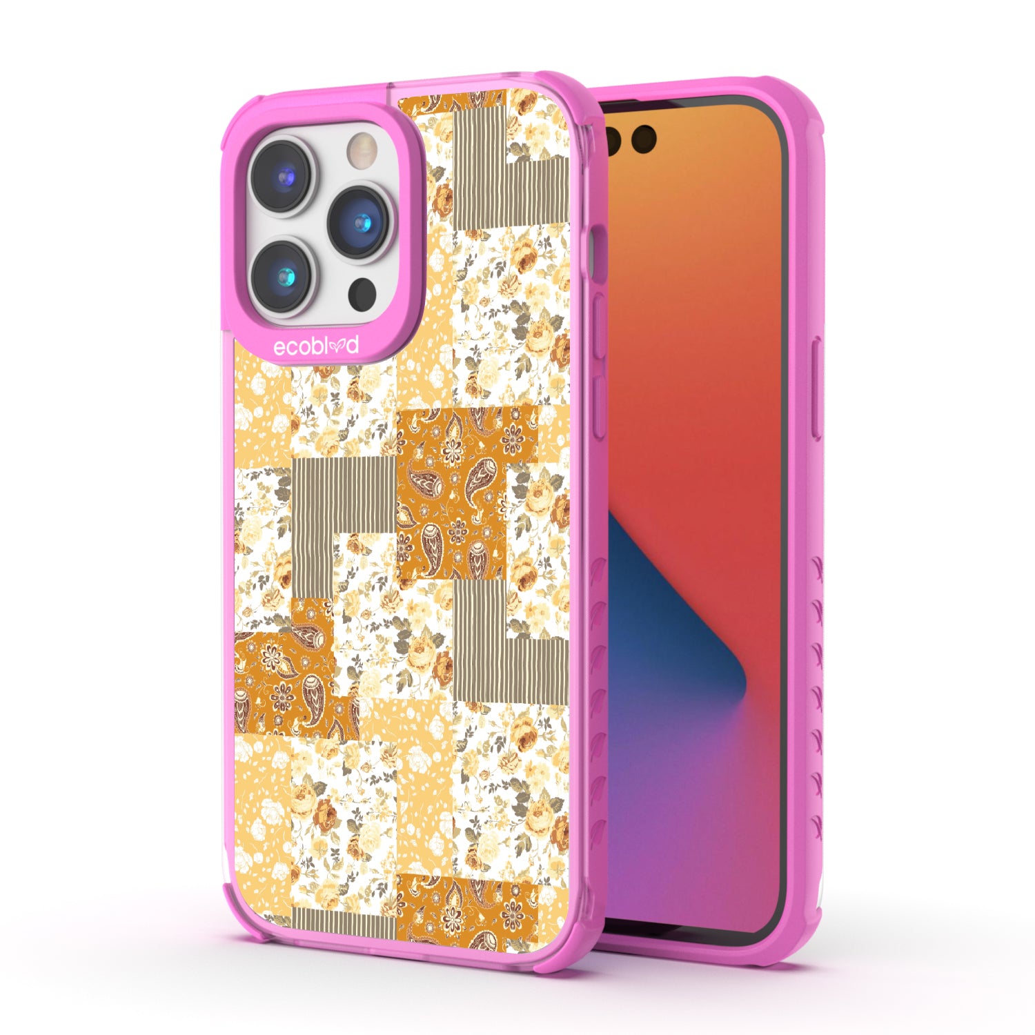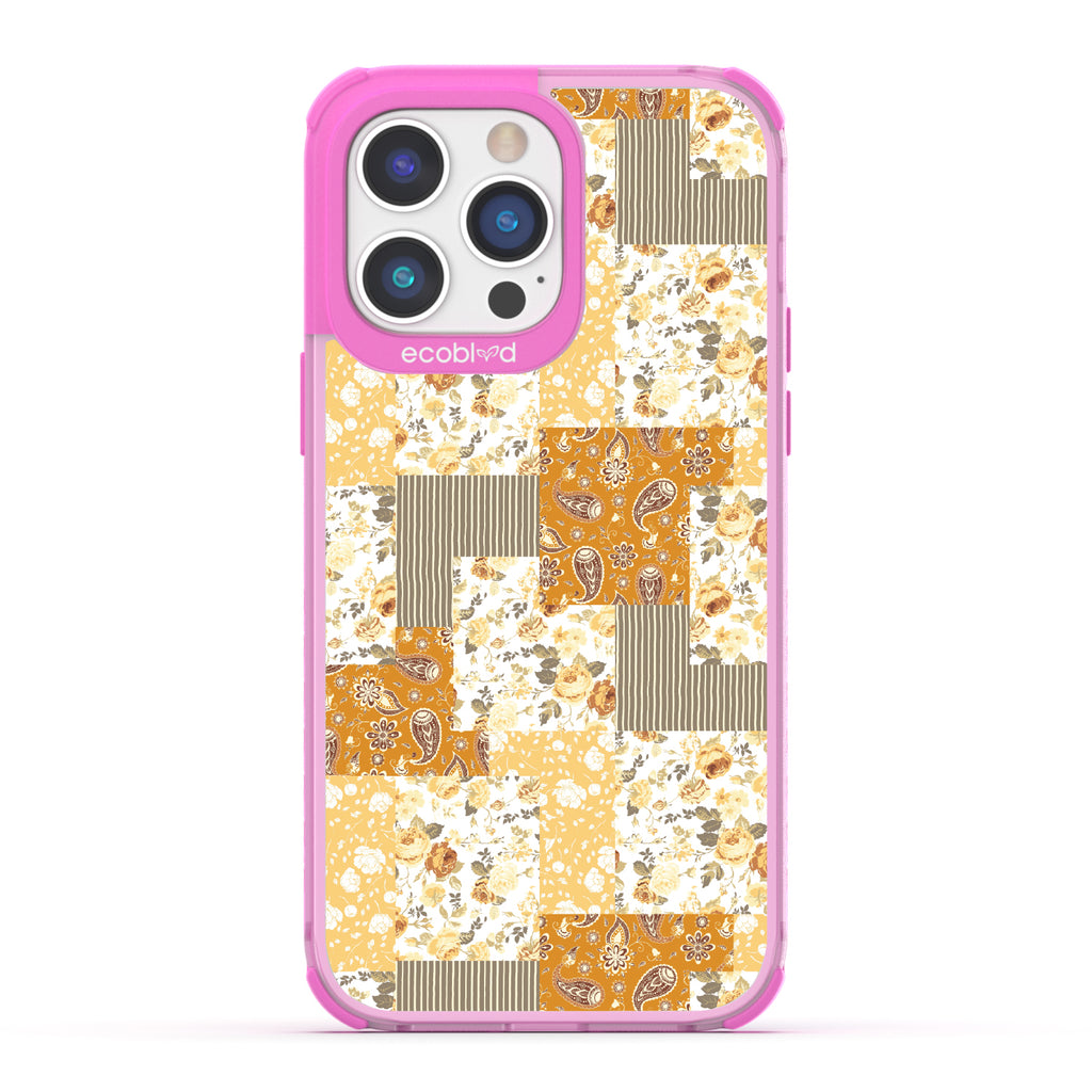 Everything falls into place with the Fall into Place design on our Laguna clear iPhone 14 Pro Max cases. Layered with intricate florals, bold stripes, and earthy tones of mustard, cream, and rust, this patchwork mirrors the textured complexity of fall. From the crisp rustle of leaves underfoot to the soft warmth of layered knits, this design reflects autumn’s depth and richness at every turn.