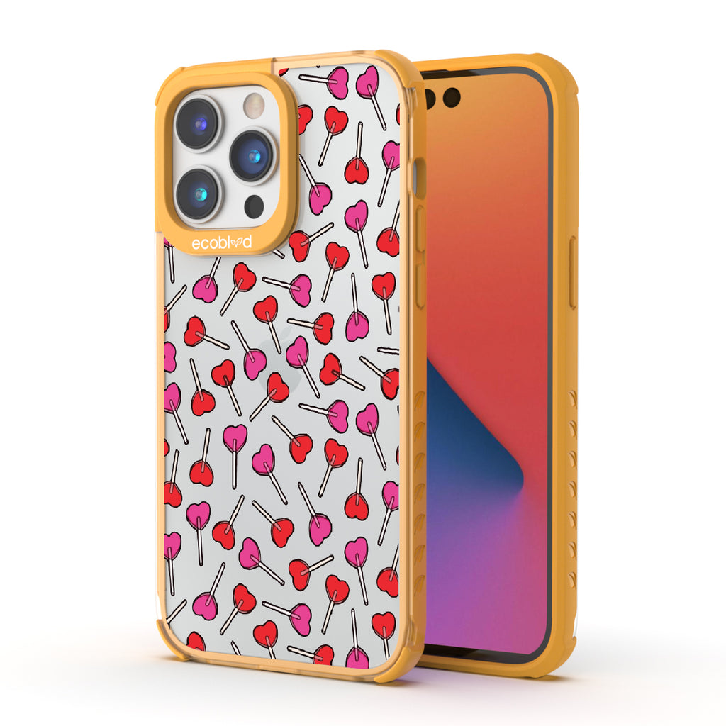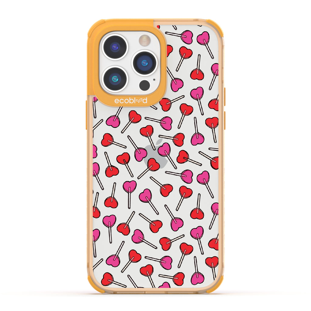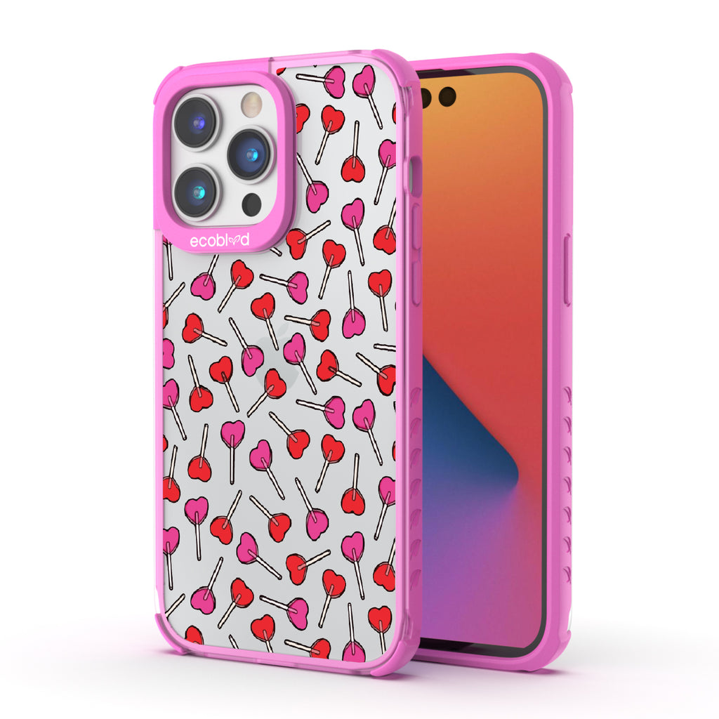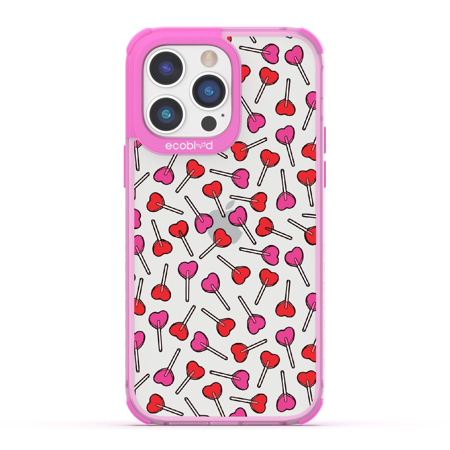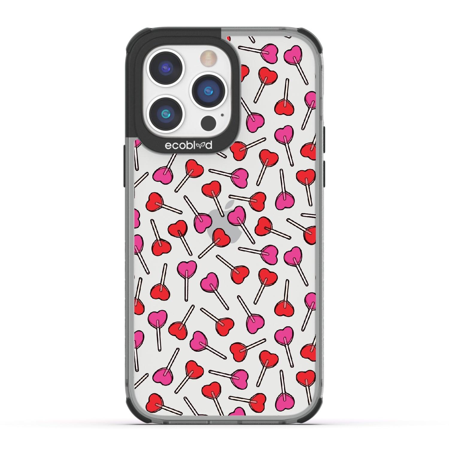 Satisfy your romantic cravings with the Sucker For You design on our Laguna clear iPhone 14 Pro Max case. As sweet heart-shaped lollipops add more sugar to your phone as a delightful surrender, making it a delectable expression of your affection.
