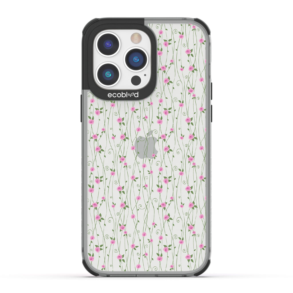 Let the Tangled design on our Laguna clear iPhone 14 Pro Max case inspire your journey of growth and connection, where pink flowers and vines illustrate the beauty of life's intertwining paths. This design, infused with the vibrant energy of spring, showcases intricate vines and delicate pink flowers as symbols of growth and resilience, painting a picture of natural harmony and flourishing.
