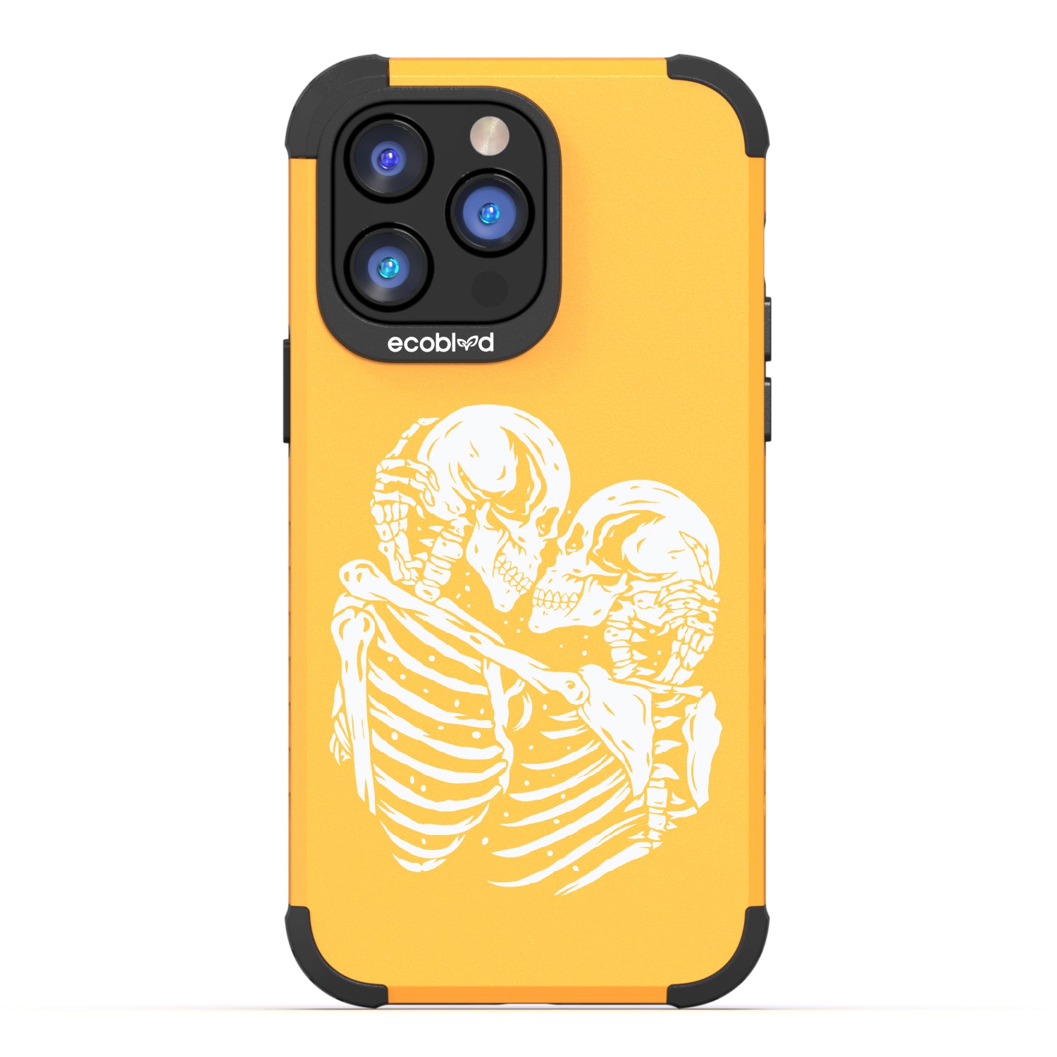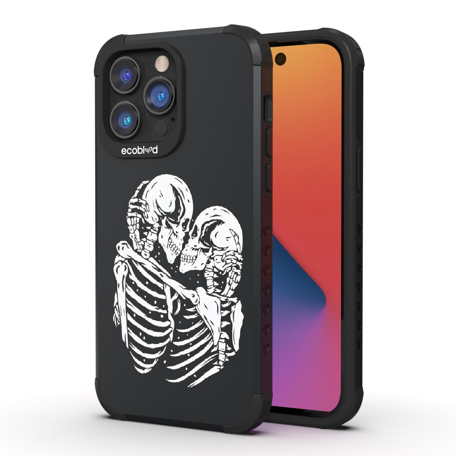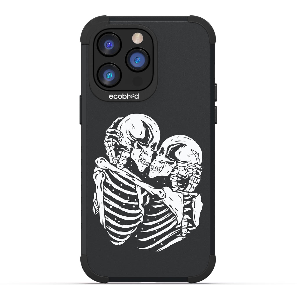 Love lasts longer than life with the Evermore design on our Mojave rugged and compostable iPhone 14 Pro Max case, where love's flame persists beyond life's extinguishing. A skeletal couple's eternal kiss serves as a testament to the enduring power of affection.