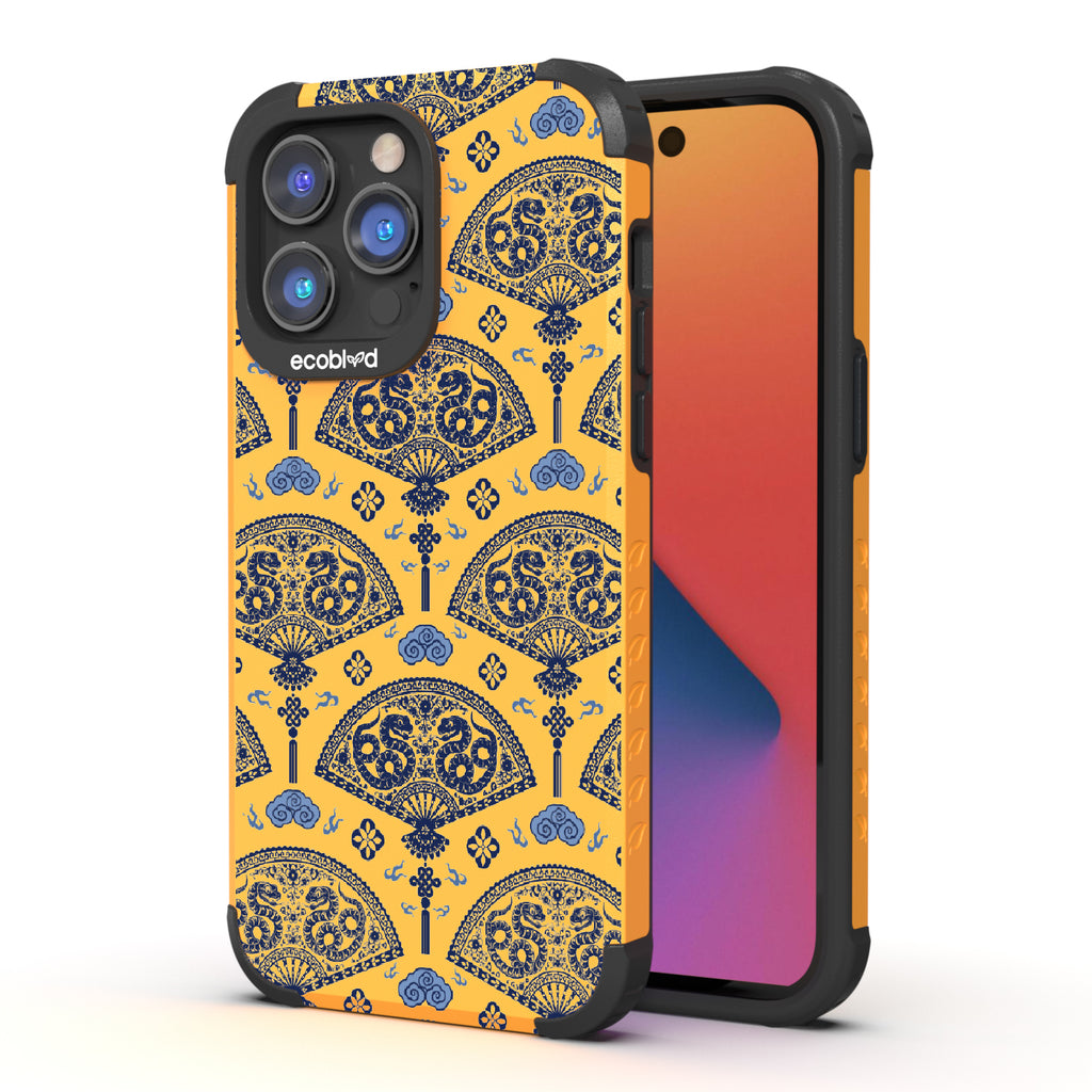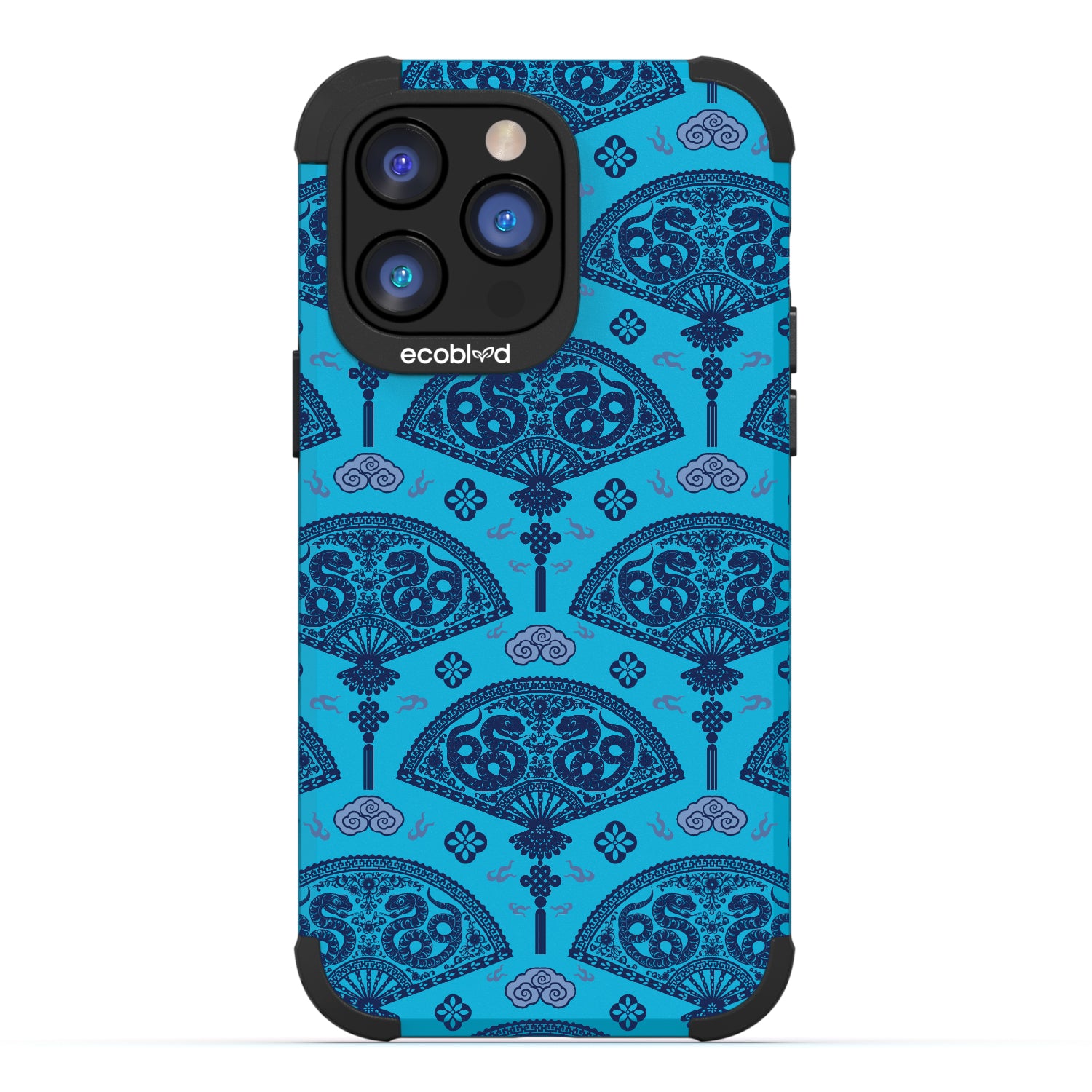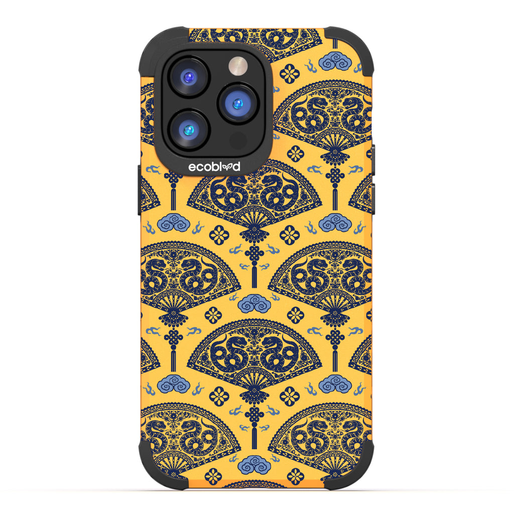 Let the winds of good fortune blow your way with the Fanning Fortune design on our Mojave rugged and compostable iPhone 14 Pro Max case. Golden serpents coil through beautifully detailed fans, a symbol of protection and prosperity for the Year of the Snake. The blue and yellow hues reflect the harmony between calmness and vitality, setting the tone for a year filled with new opportunities and growth.