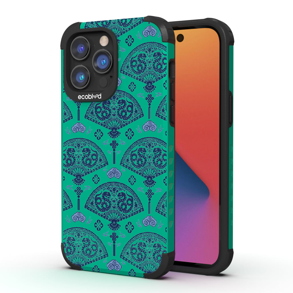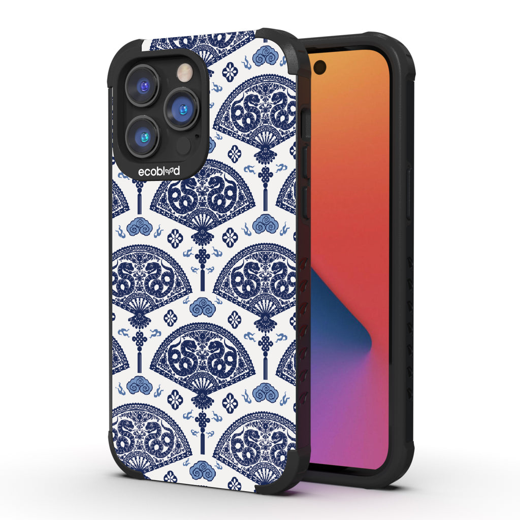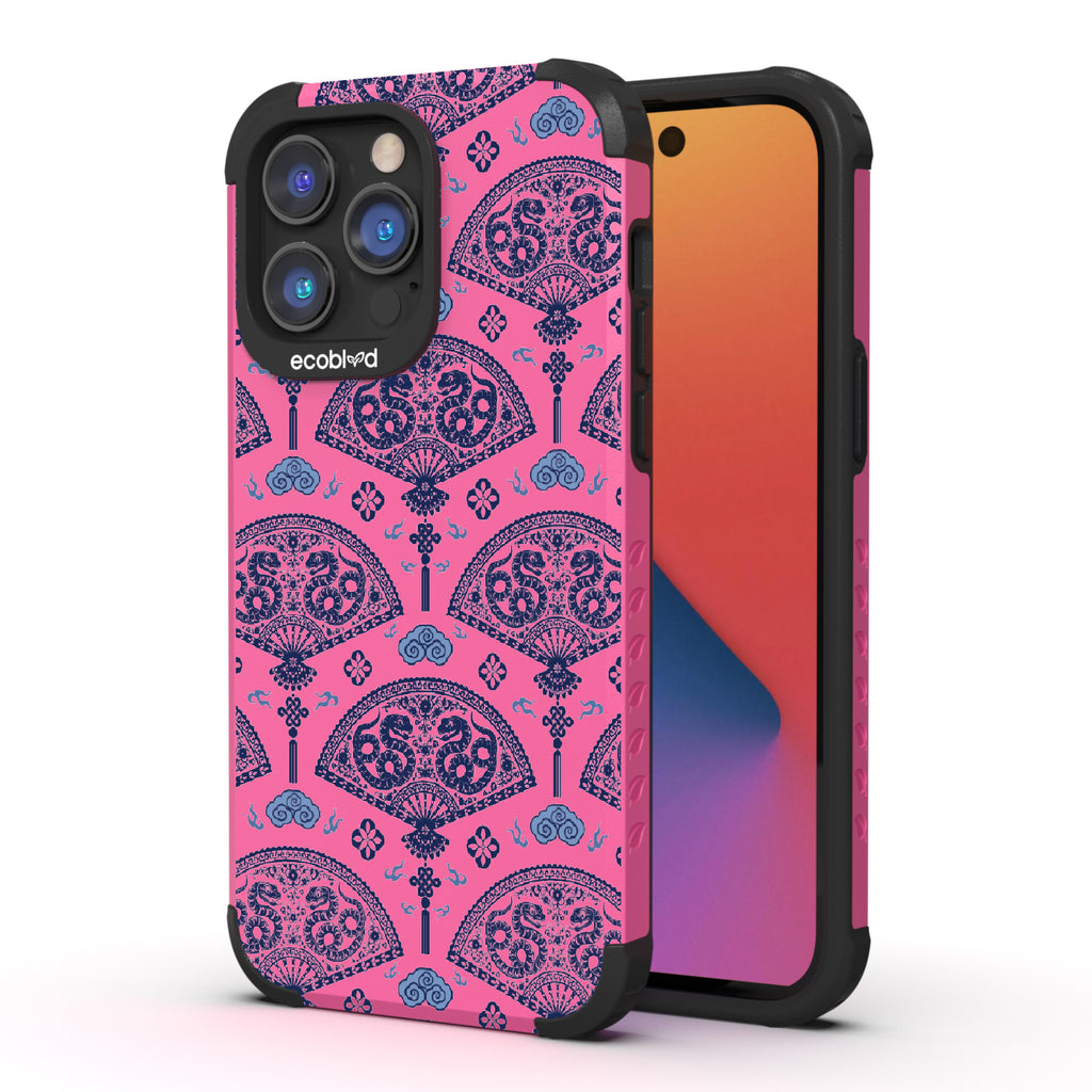 Let the winds of good fortune blow your way with the Fanning Fortune design on our Mojave rugged and compostable iPhone 14 Pro Max case. Golden serpents coil through beautifully detailed fans, a symbol of protection and prosperity for the Year of the Snake. The blue and yellow hues reflect the harmony between calmness and vitality, setting the tone for a year filled with new opportunities and growth.