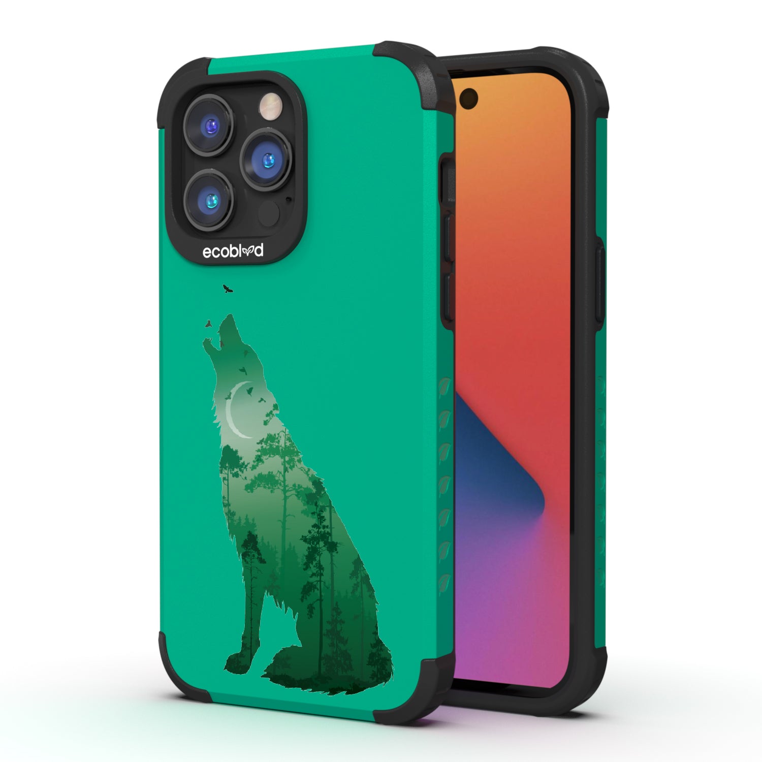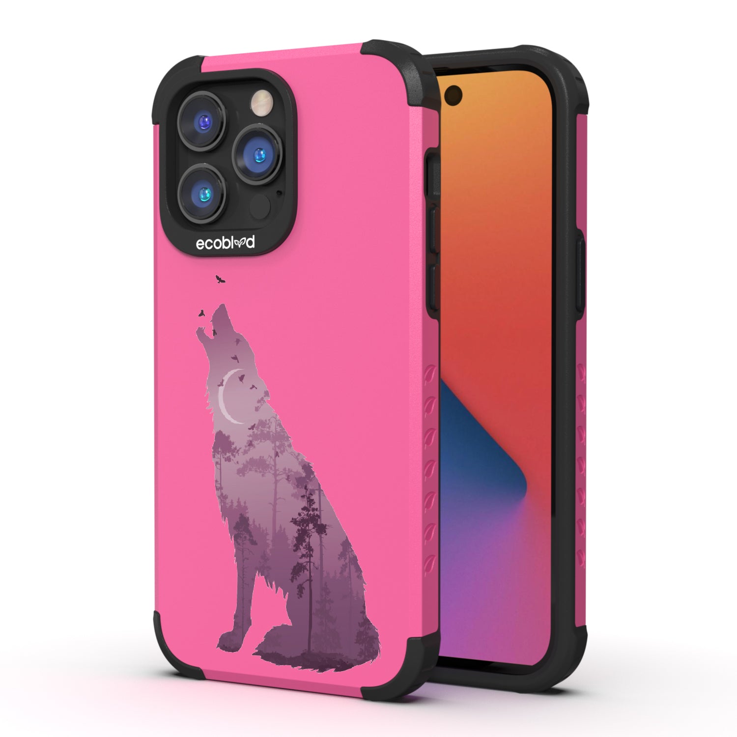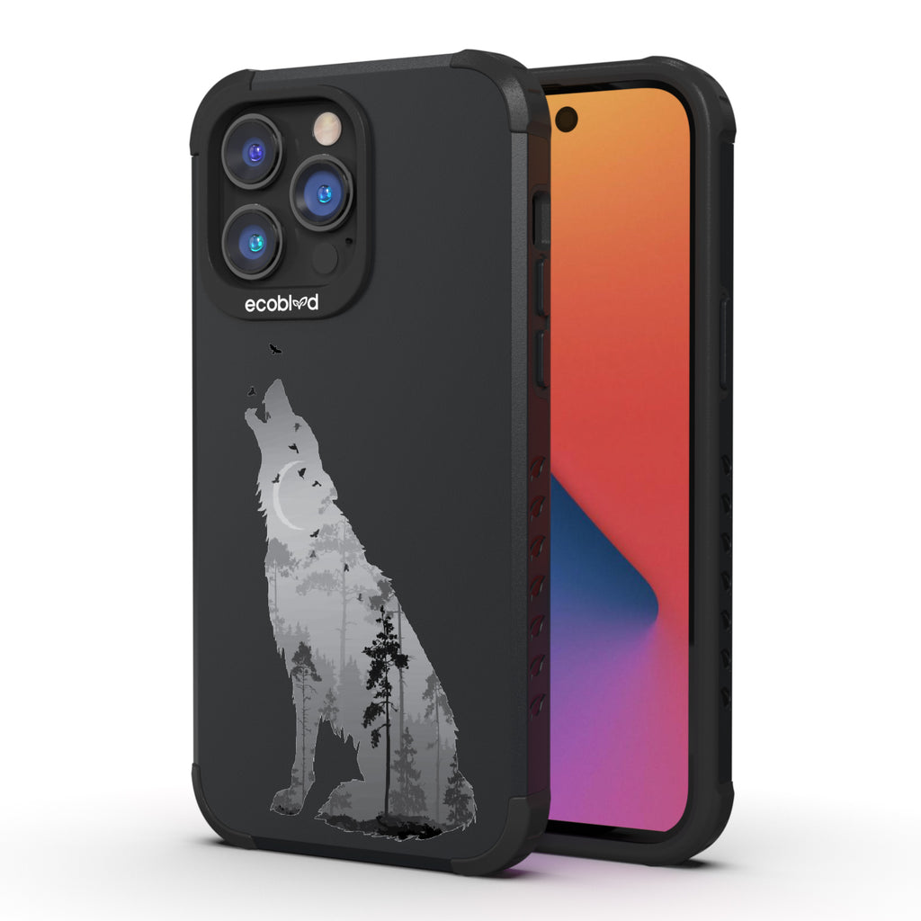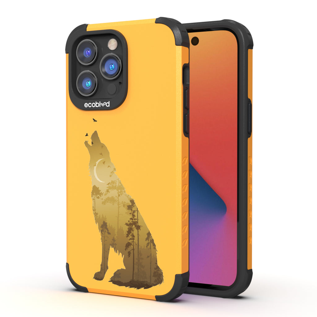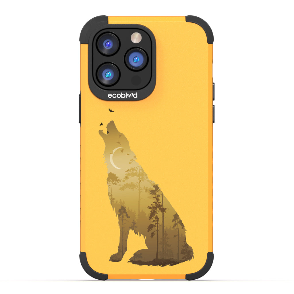 Embrace your wild side as the Howl At The Moon design on our Mojave rugged and compostable iPhone 14 Pro Max phone case transforms your iPhone into an enchanting moonlit woodland with a howling wolf prowling through the darkness. Choose from five vibrant color options: Midnight Black, Cascade Blue, Foliage Green, Illuminating Yellow, and Wildflower Pink.