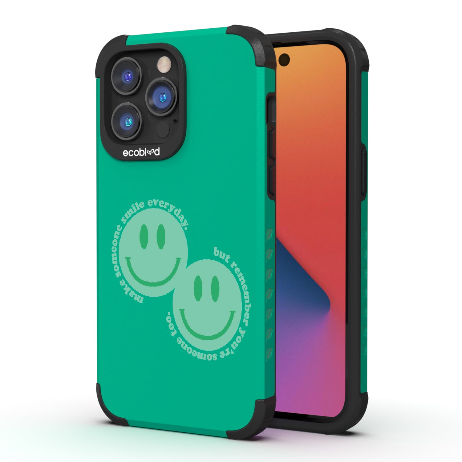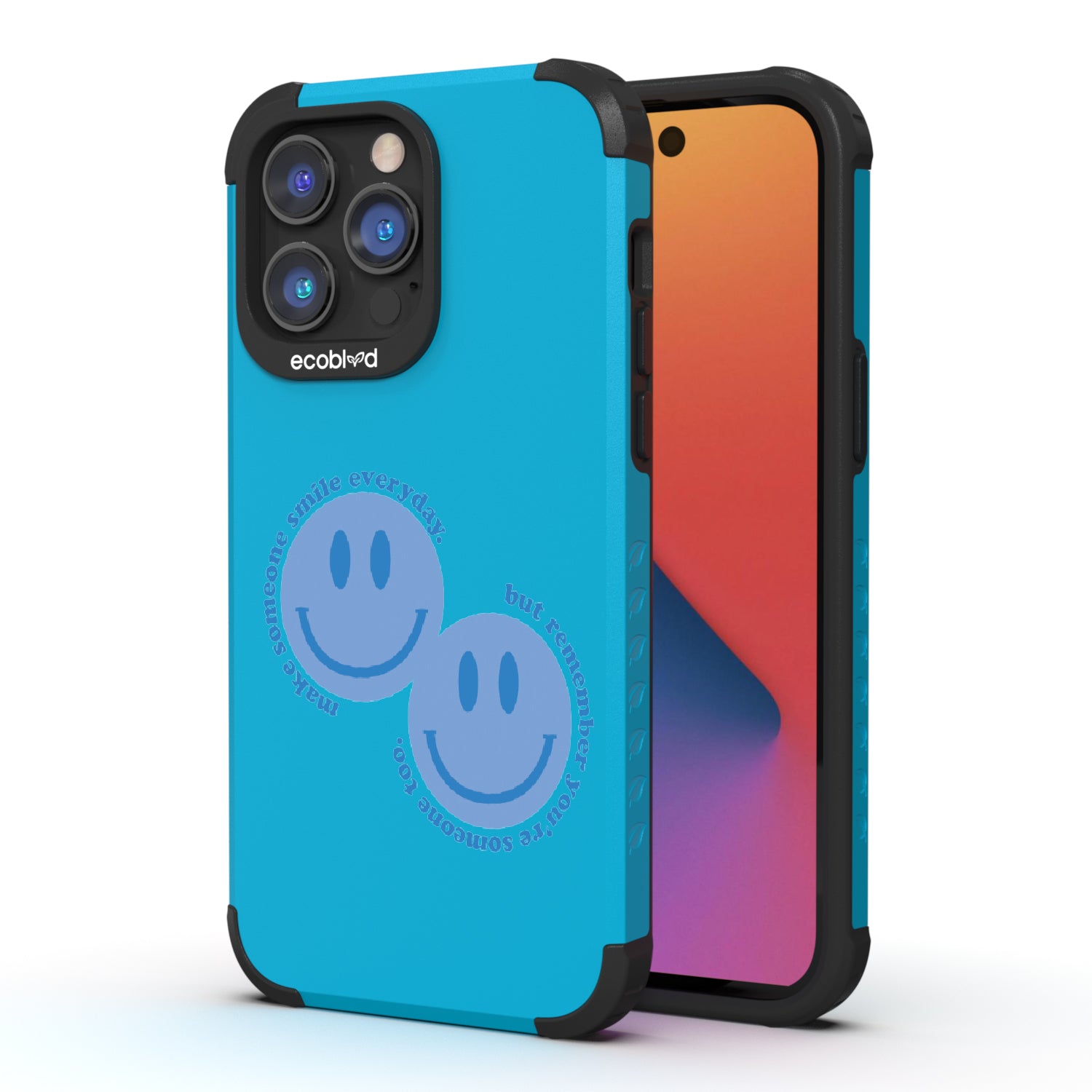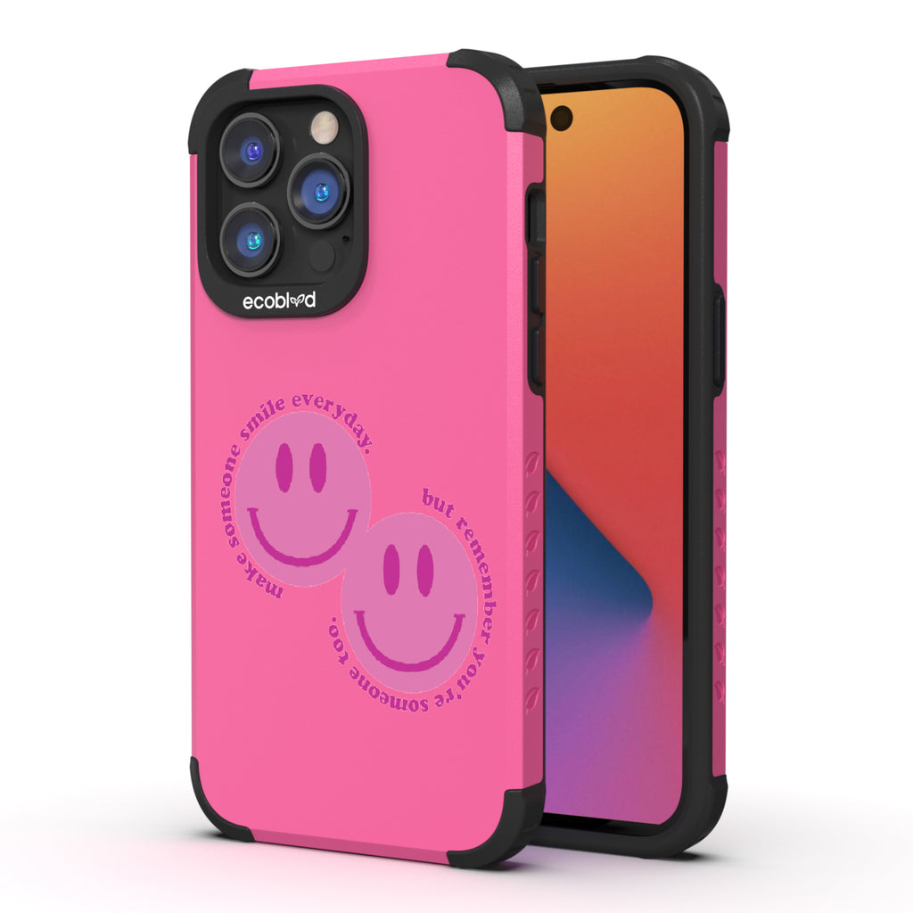 Spread happiness with the Make Someone Smile design on our Mojave rugged and compostable iPhone 14 Pro Max case. Featuring two cheerful smiley faces, this design prompts you to be a source of joy for others. While you make someone else smile, recognize that you too are deserving of moments filled with happiness.