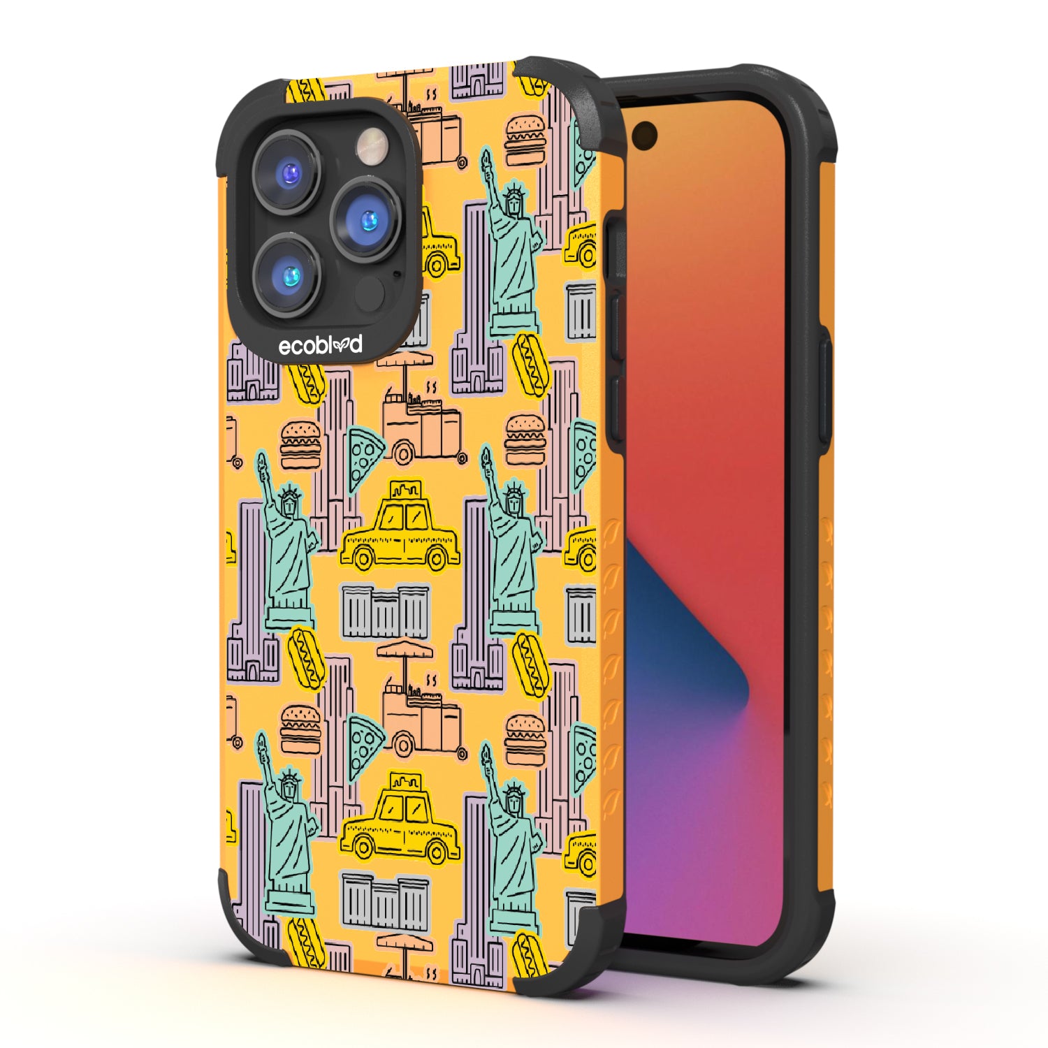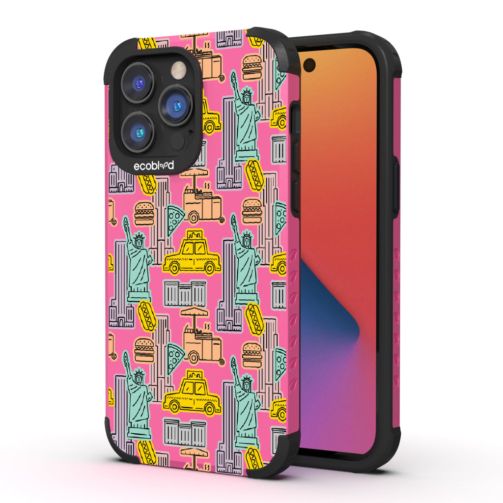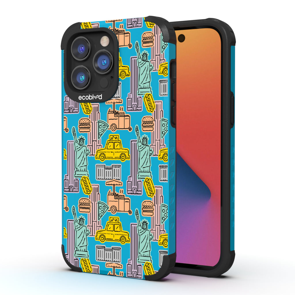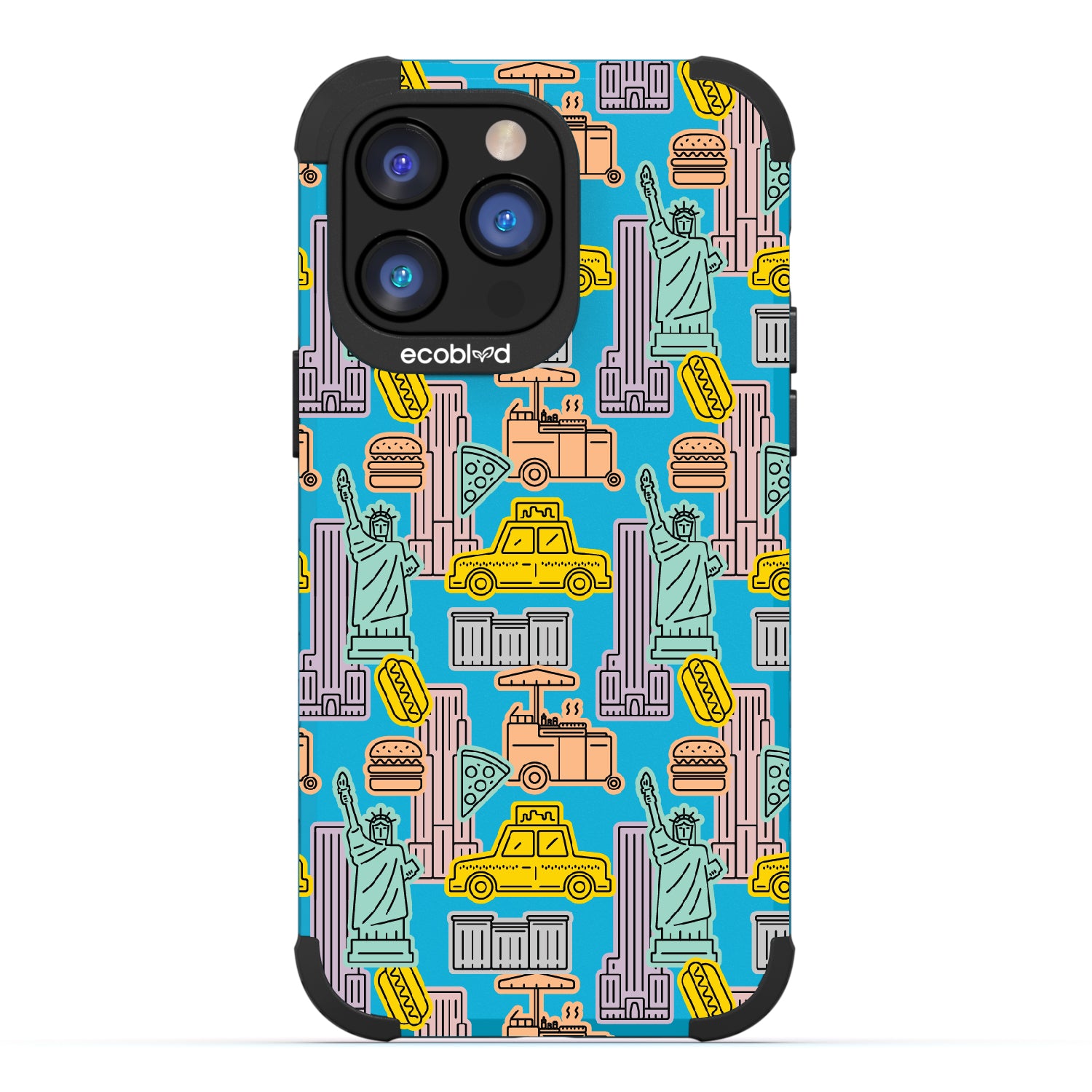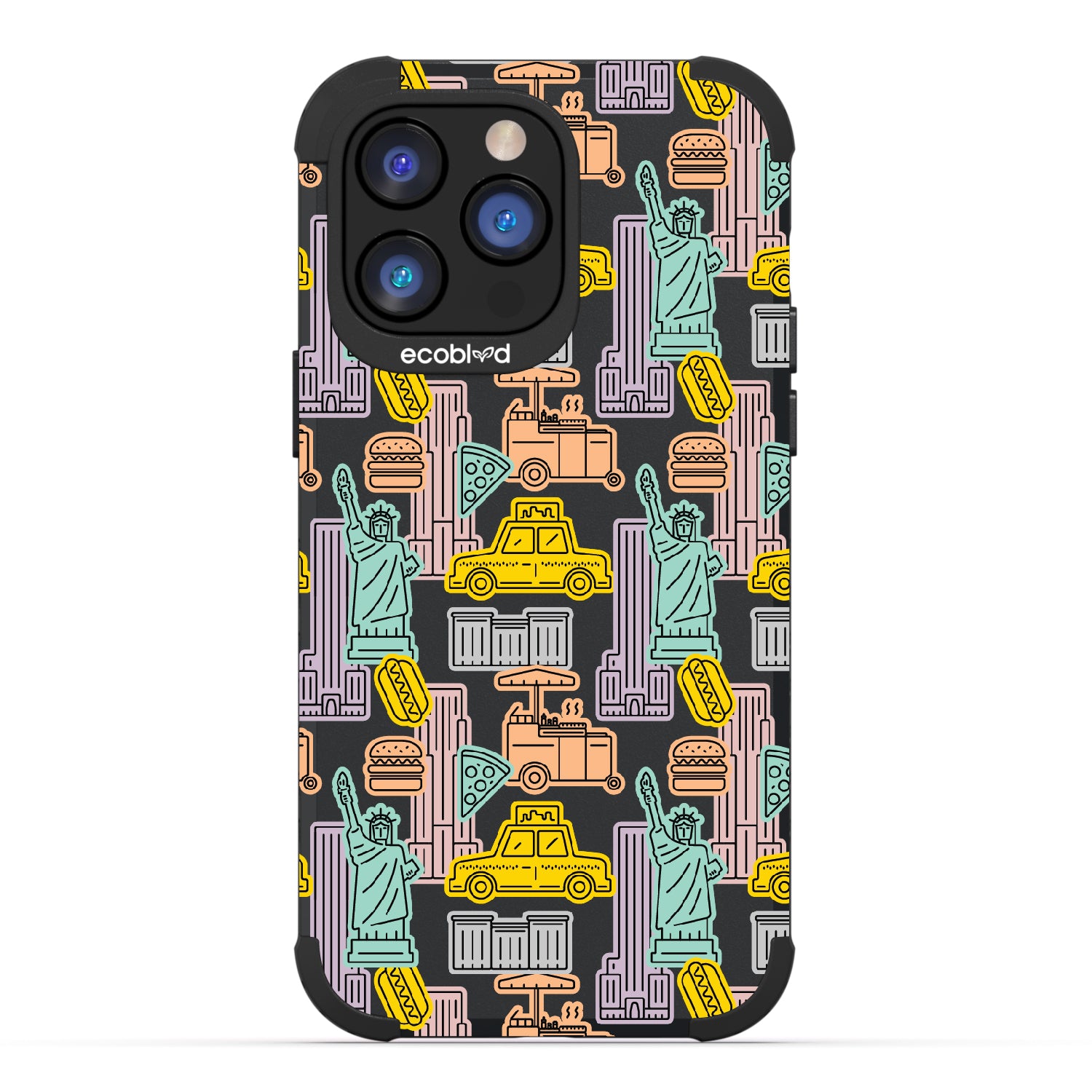 Capture the buzz of the city that never sleeps with the New York Minute design on our Mojave rugged iPhone 14 Pro Max phone case. It's a slice of the Big Apple, with iconic yellow cabs, steaming hotdogs, and Lady Liberty herself, all wrapped up in that unmistakable NYC rhythm.