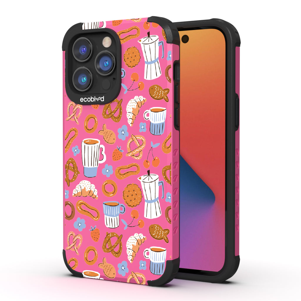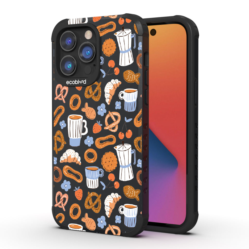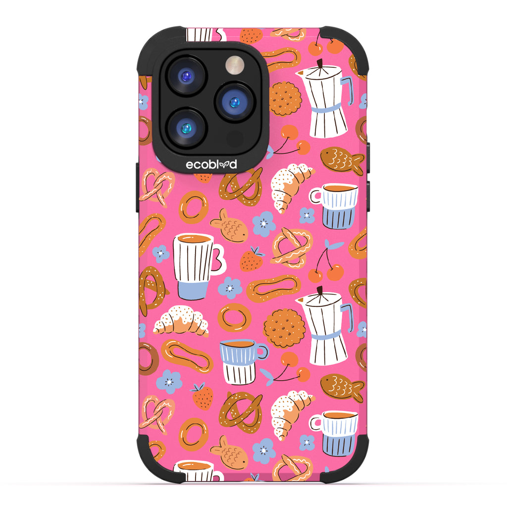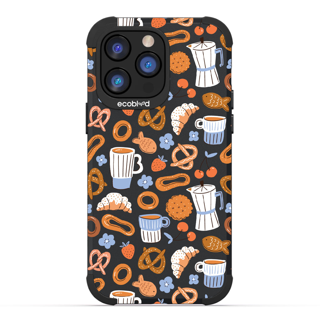Welcome to The Breakfast Club, where looks are served. This design on our Mojave rugged and compostable iPhone 14 Pro Max case brings together all your favorite brunch essentials—croissants, coffee, and pretzels. It’s the perfect club to kickstart your day, full of flavor, fun, and flair.