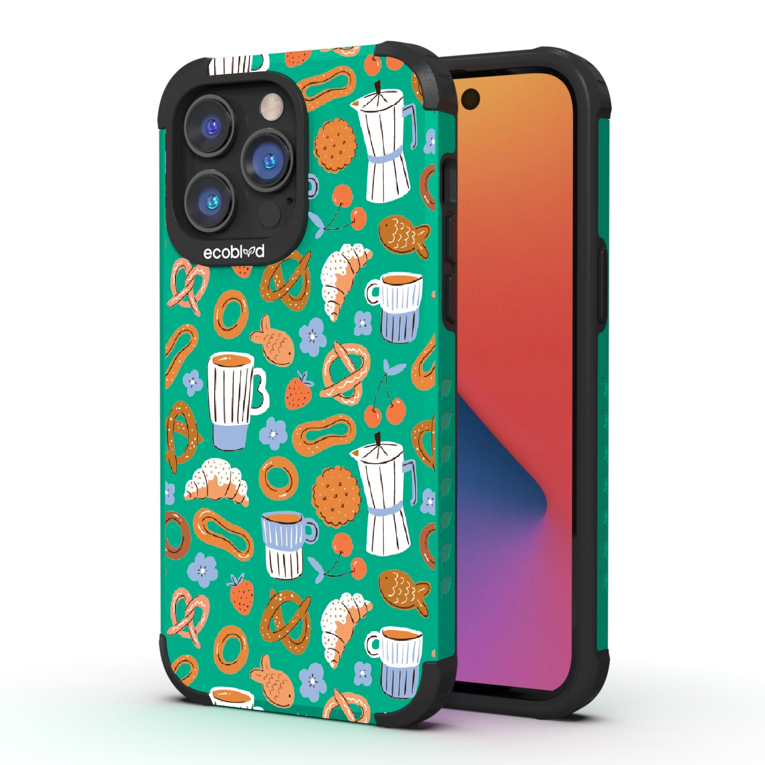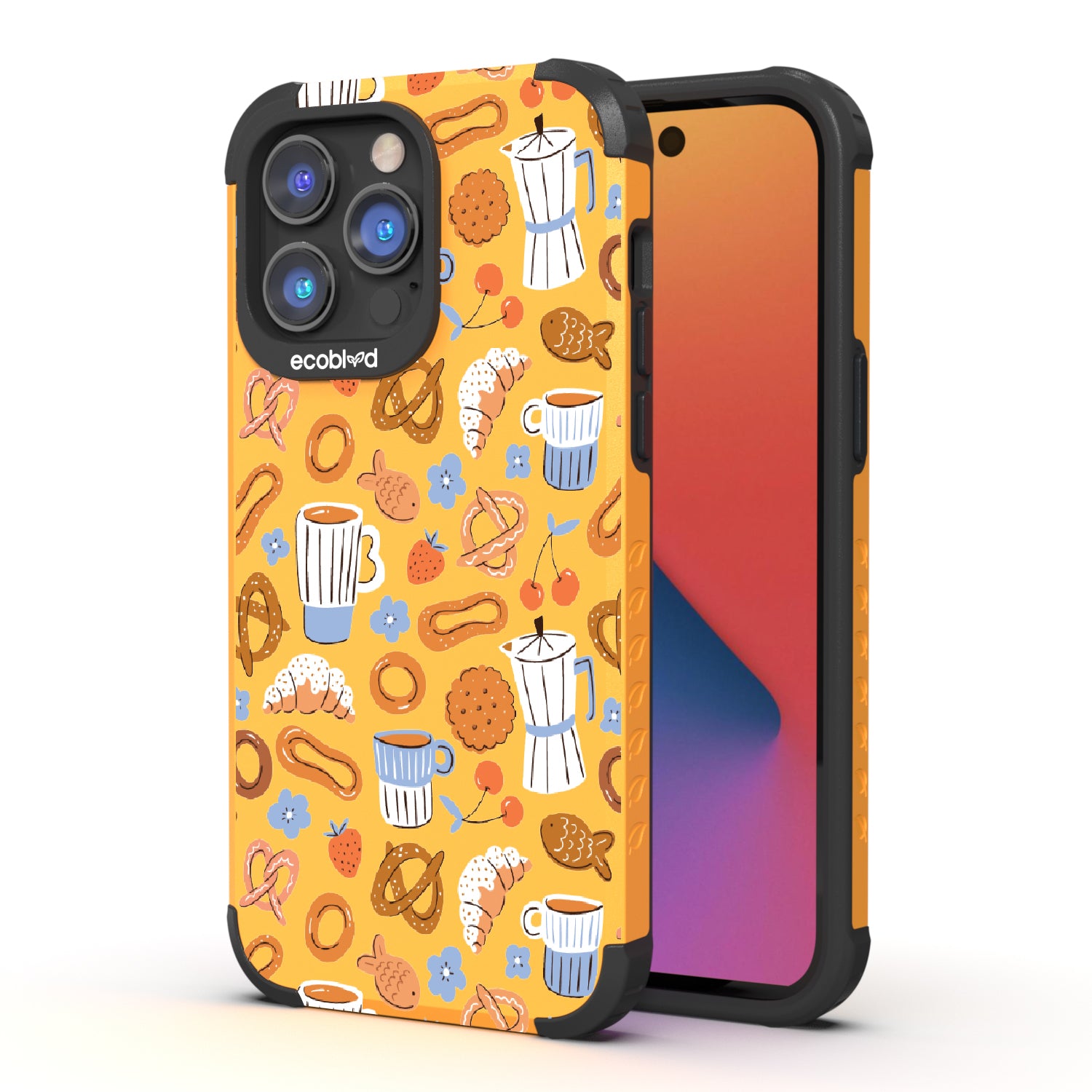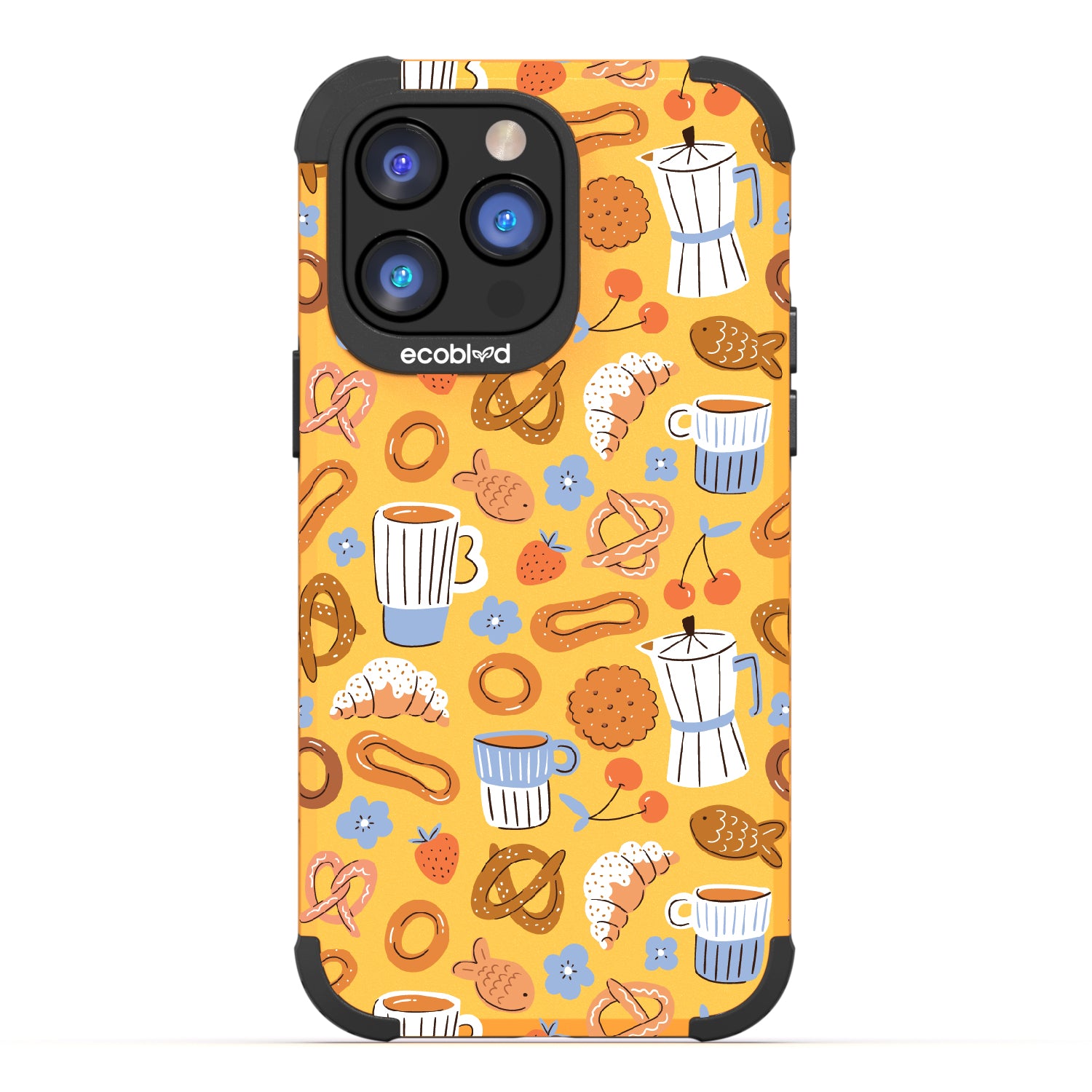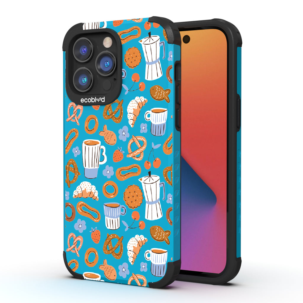 Welcome to The Breakfast Club, where looks are served. This design on our Mojave rugged and compostable iPhone 14 Pro Max case brings together all your favorite brunch essentials—croissants, coffee, and pretzels. It’s the perfect club to kickstart your day, full of flavor, fun, and flair.