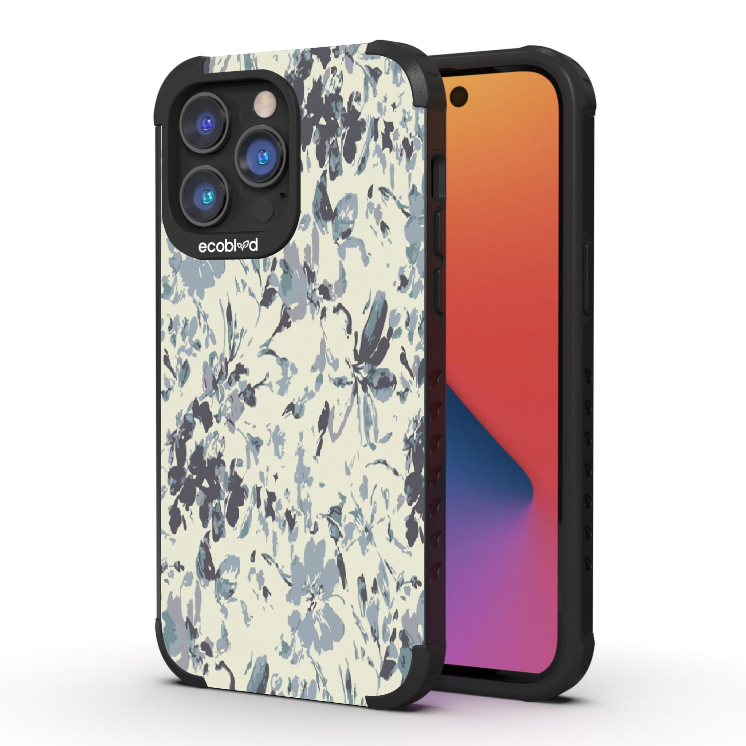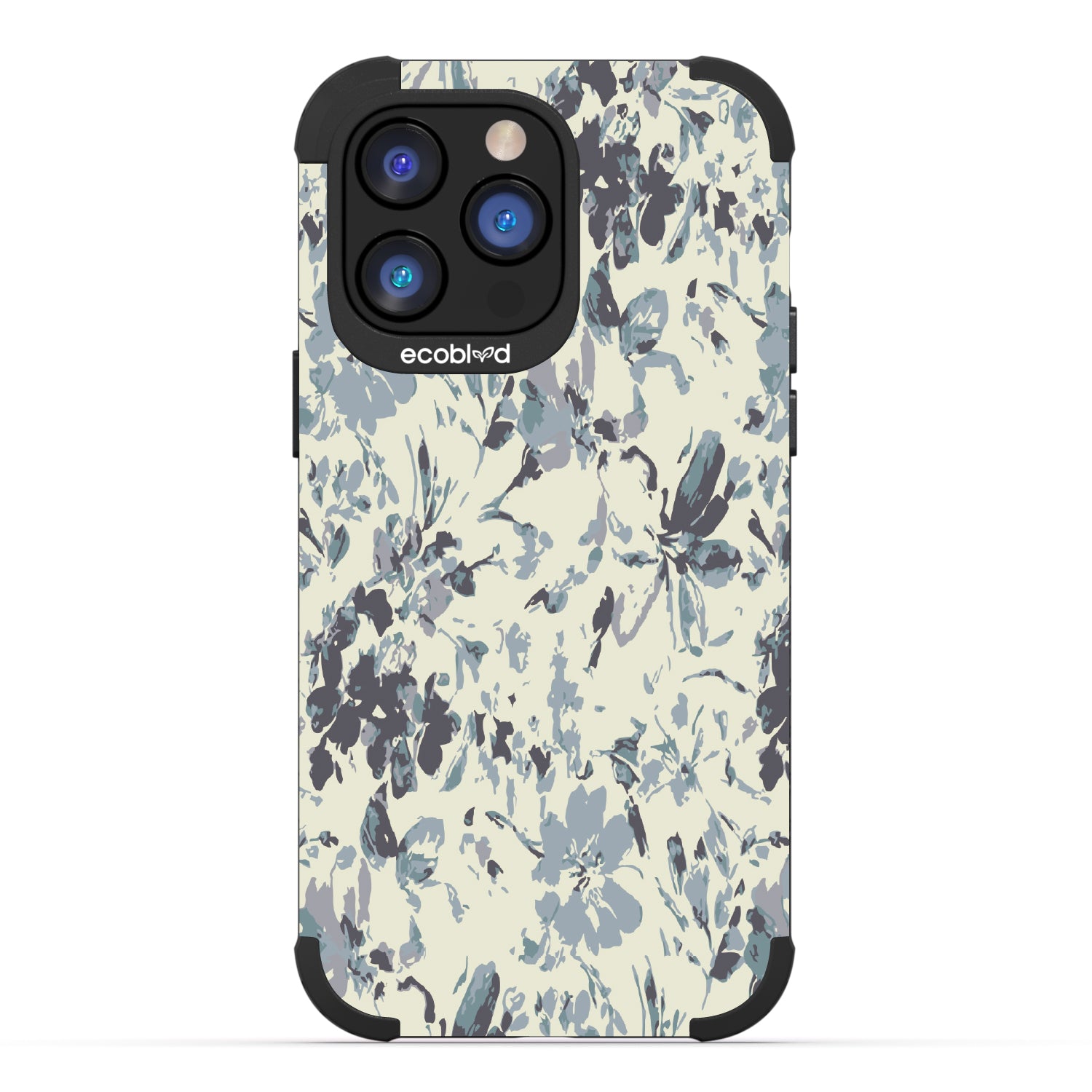 Carried by the wind, the Wind-Swept design on our Mojave rugged and compostable iPhone 14 Pro Max cases drifts with soft blue and gray florals, as if scattered by a gentle breeze. This airy pattern mimics the movement of nature, with each petal seeming to dance in mid-flight. It’s a delicate balance of motion and stillness, capturing the beauty of the moment when the wind takes hold.