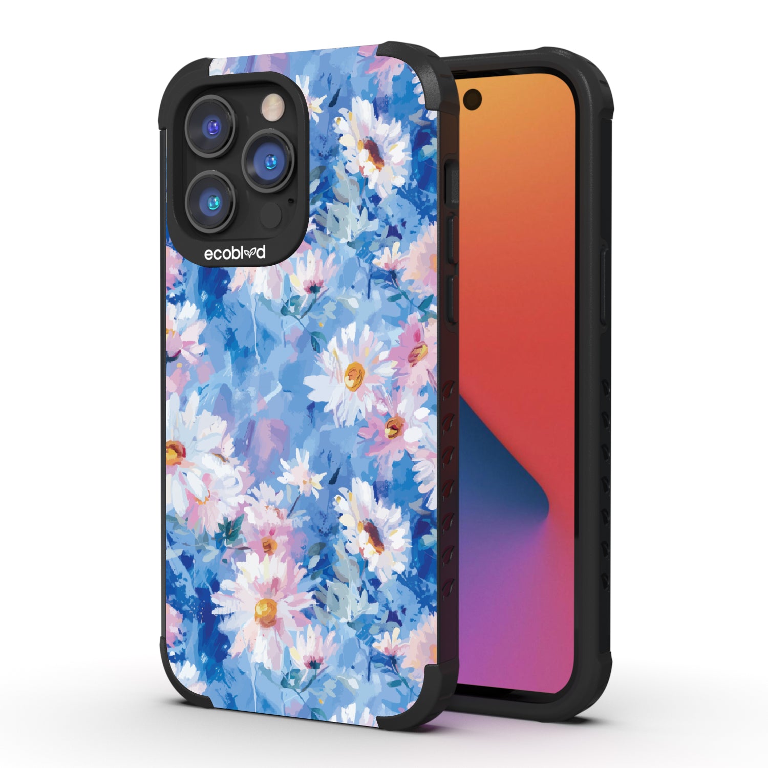It’s a breeze really. The Blown Away design on our Mojave rugged and compostable iPhone 14 Pro Max case sends soft daisy petals swirling across layered blue strokes, like a gust caught mid-canvas. Each pastel bloom feels weightless but intentional—an airy moment you can hold onto.