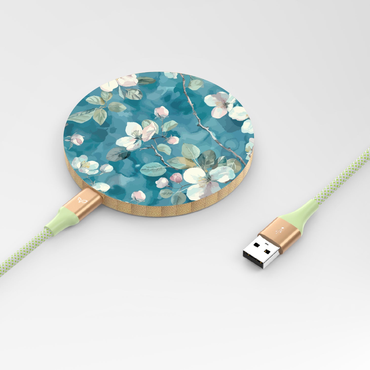 Growth is never a straight line—it twists, it turns, and sometimes, it blooms unexpectedly. The Sway & Sprout design on our Bamboo Wireless Charger captures that natural flow. Watercolor branches stretch and curve, while delicate petals bloom in soft pastel hues, reminding us that beauty comes from welcoming life’s twists and turns.