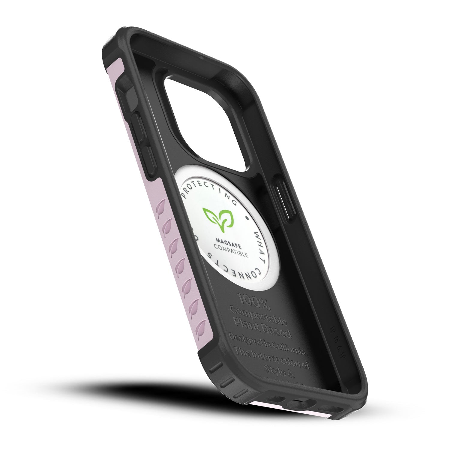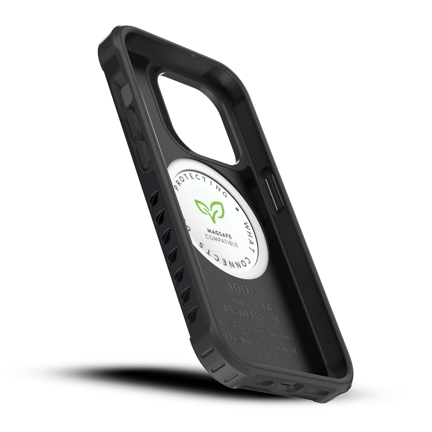 Our Mojave collection cases are constructed with CornBo™️, corn, and bamboo-based compostable bioplastic. We design our cases to be compostable, but they will only break down when exposed to high humidity, such as in a composter or in soil, so you can rest assured that your phone will remain safe despite everyday wear and tear.