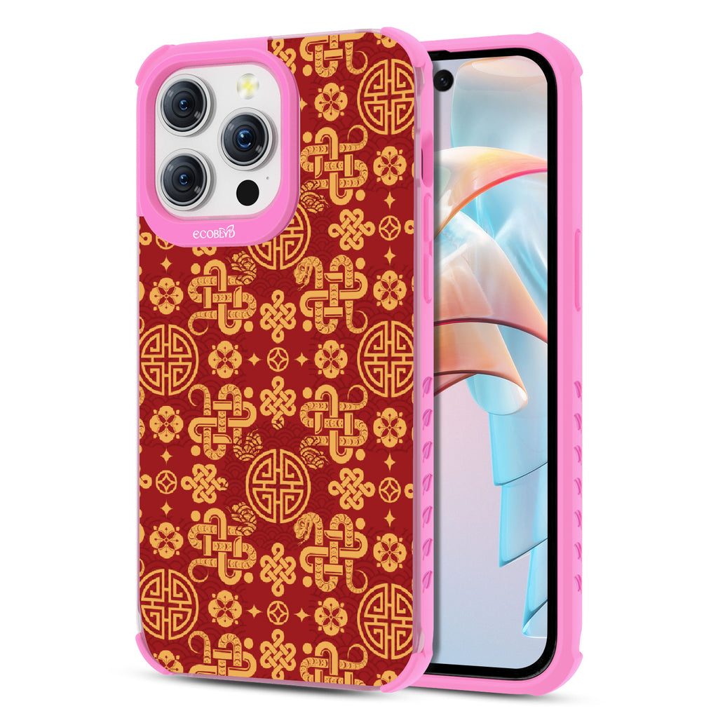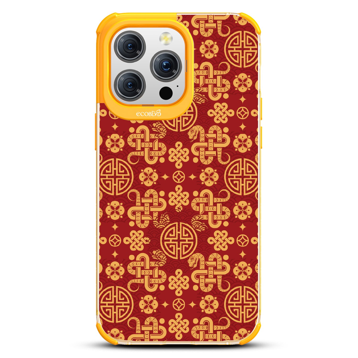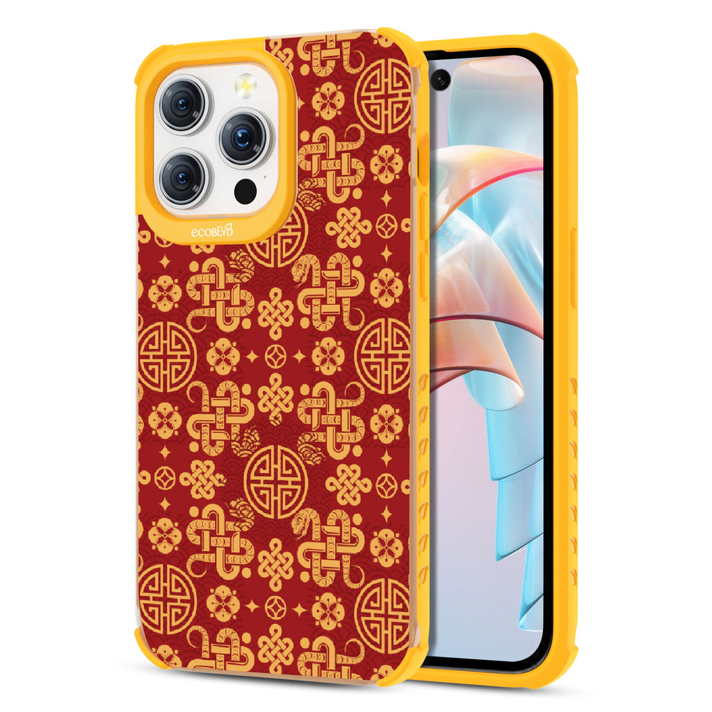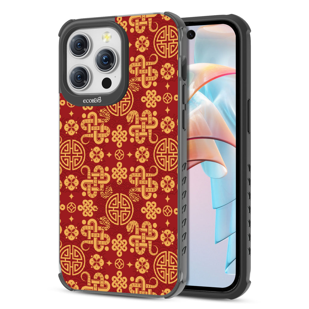 Uncoil the promise of prosperity with the Coiled In Gold design on our Laguna clear iPhone 15 Pro Max case. The golden serpents twist and spiral, shedding their past skins as they wind their way into a new cycle of growth and transformation. With every golden coil, this design captures the essence of renewal—leaving behind the old to make room for the fortune and success 2025 brings.