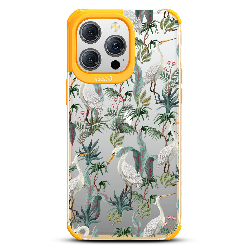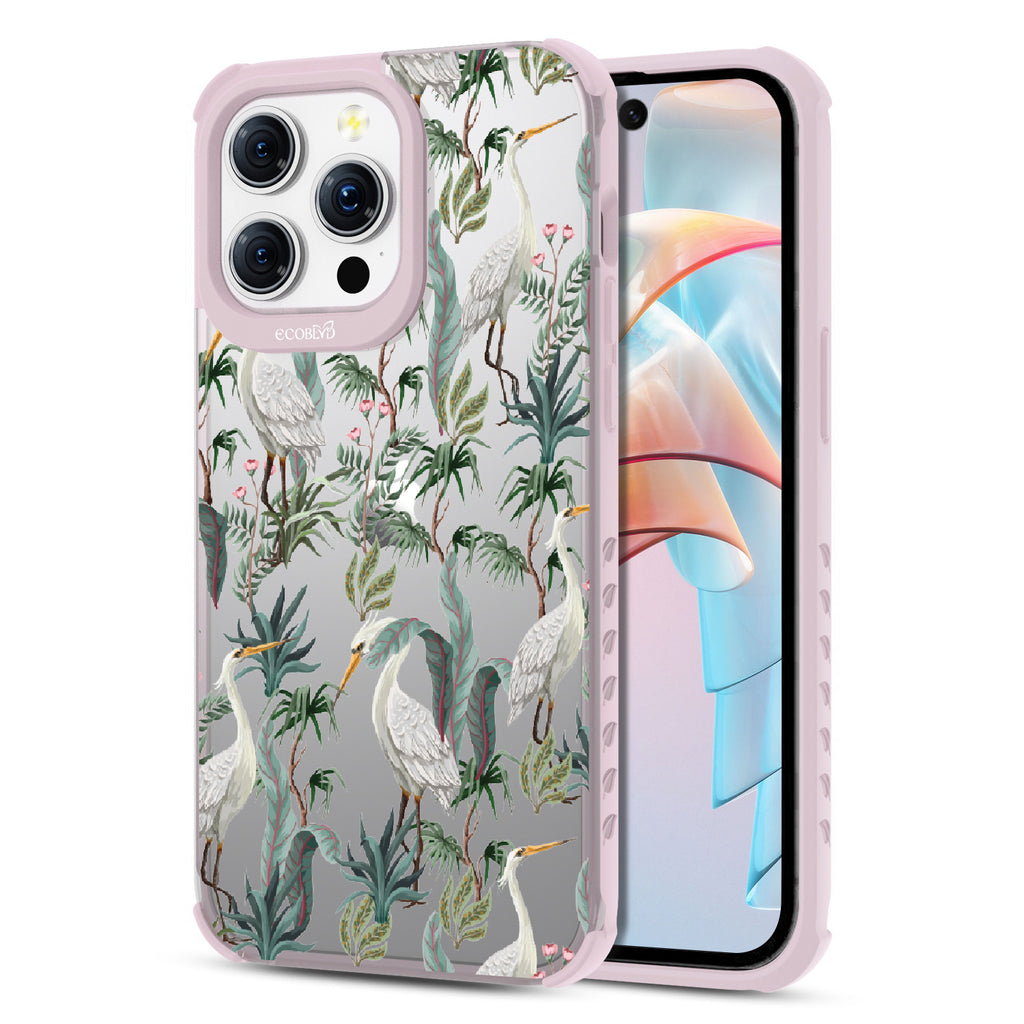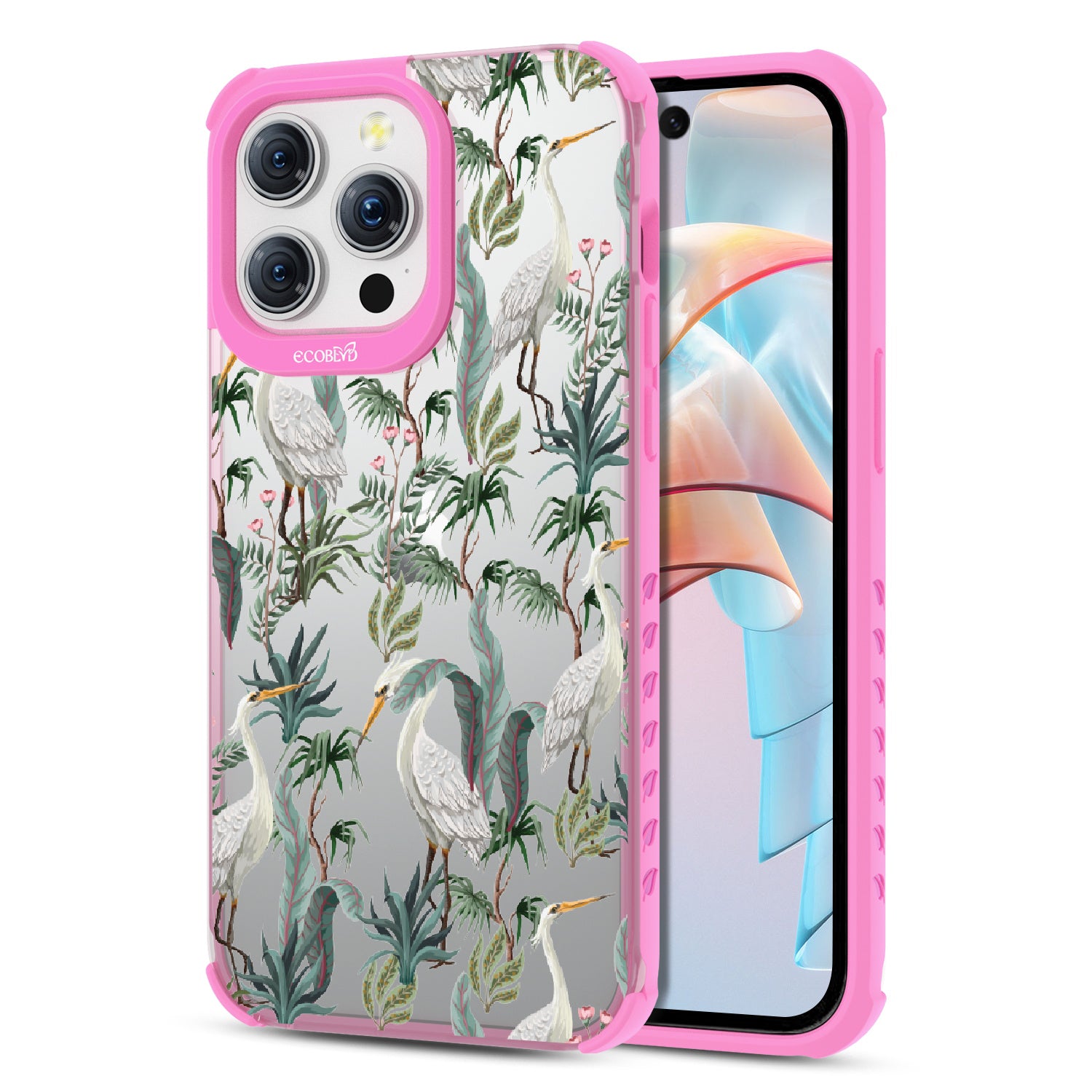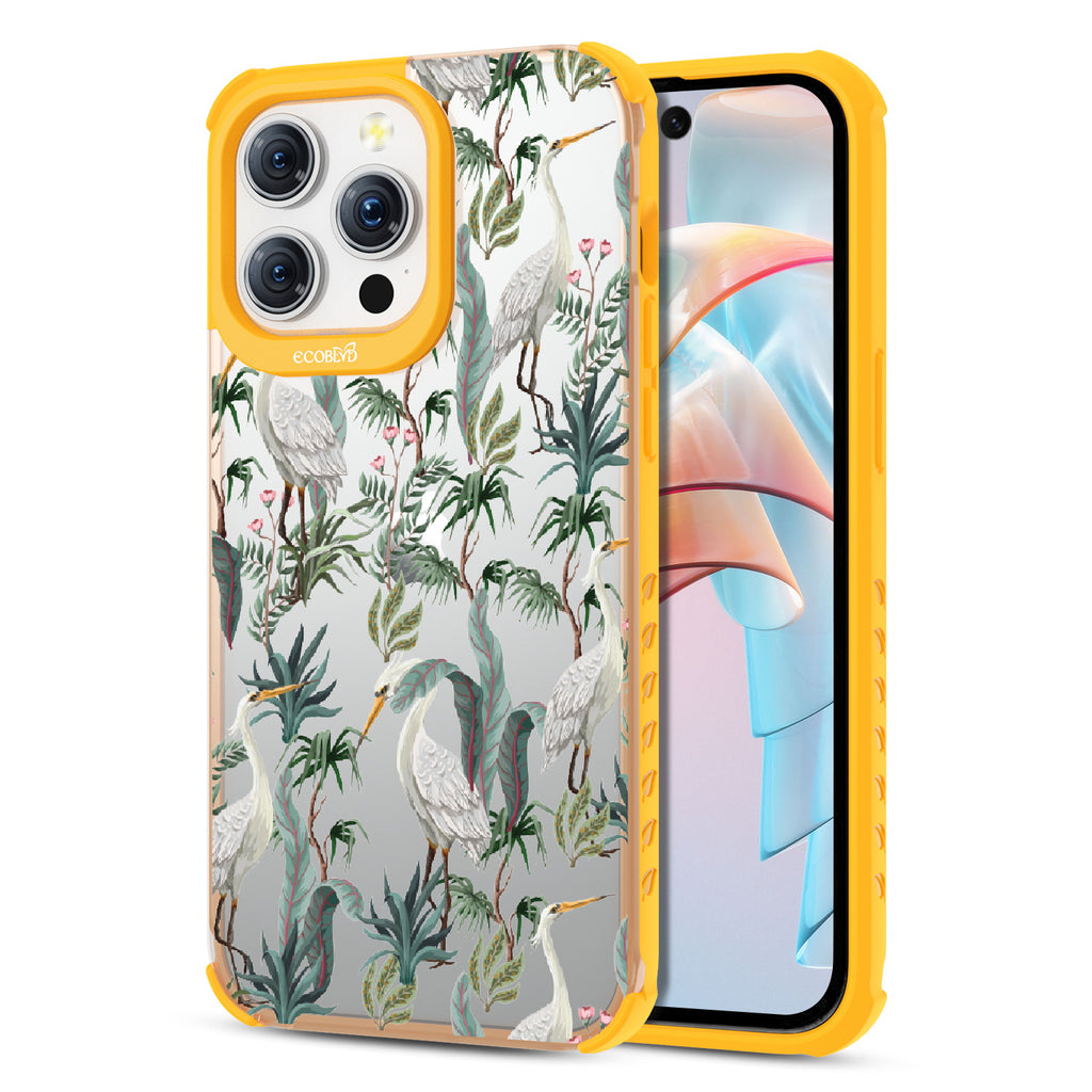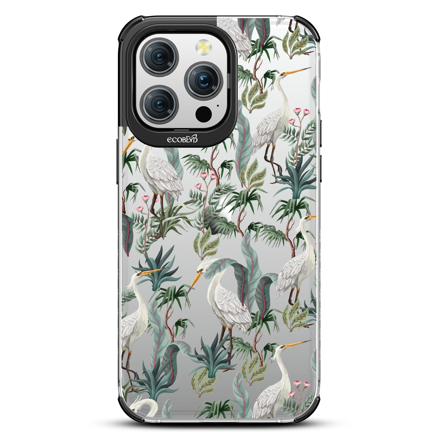 Embrace the strength and beauty of sticking together with Flock Together, an exclusive design crafted for the Laguna clear iPhone 15 Pro Max case. Immerse yourself in impeccable style and protection while supporting ocean conservation efforts, as elegant heron birds and intricate peonies come together in perfect harmony. Flock Together is more than just a name, it's a powerful message of togetherness and unity. Featuring elegant heron birds and intricate peonies, this design inspires us to embrace our connections and appreciate the beauty that comes with standing together in five captivating colors: Midnight Black, Cascade Blue, Foilage Green, Illuminating Yellow, and Wildflower Pink. With this phone case, you carry with you a reminder of the beauty that lies within collective strength and the significance of standing together.