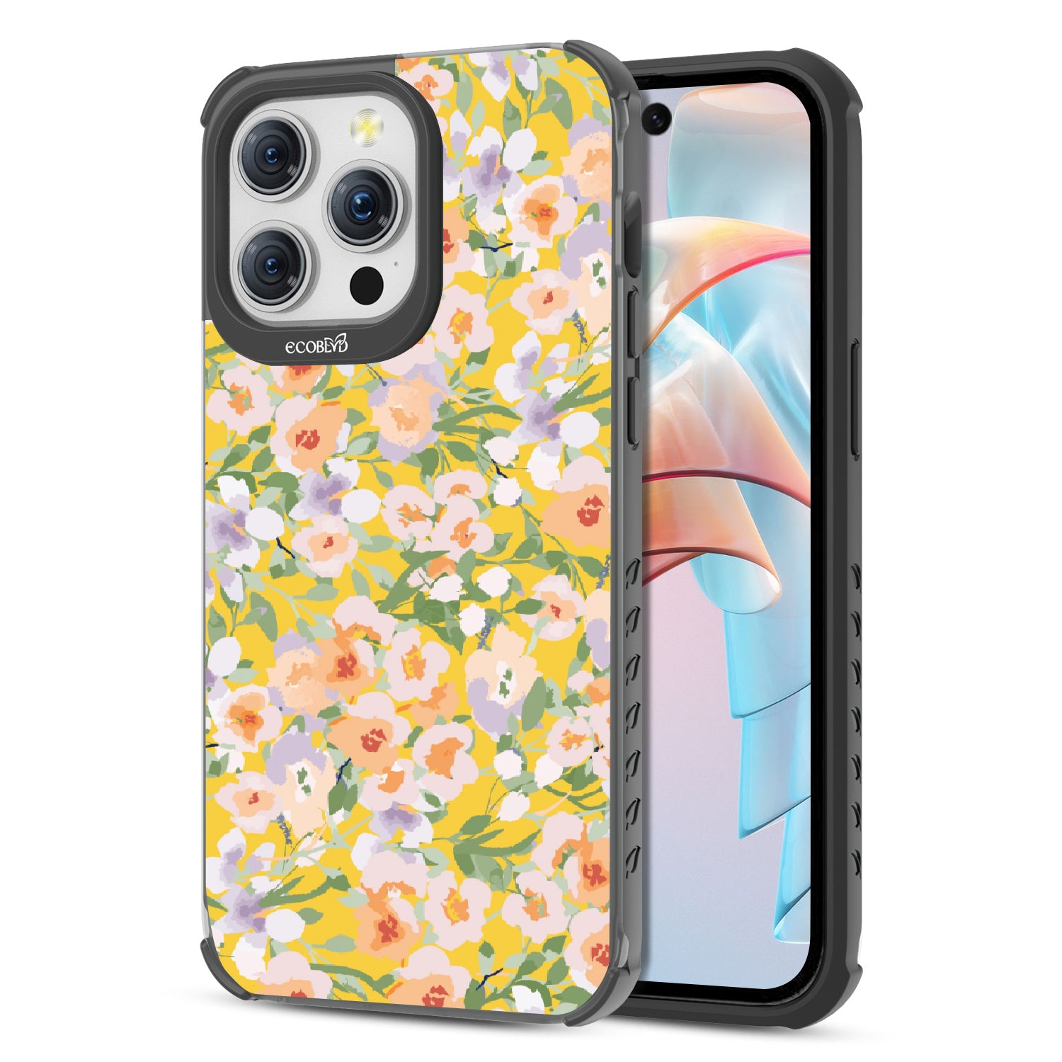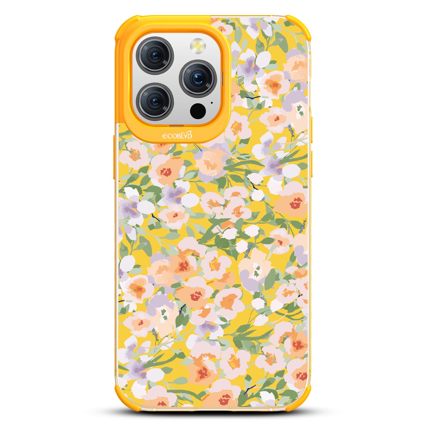 The sun paints with light, and flowers carry the glow. The Flourish & Shine design on our Laguna clear iPhone 15 Pro Max case blends sweeping yellows, peachy petals, and airy greens in soft, expressive brushstrokes. A composition that radiates warmth, movement, and the quiet brilliance of nature’s palette.