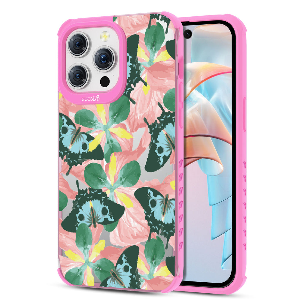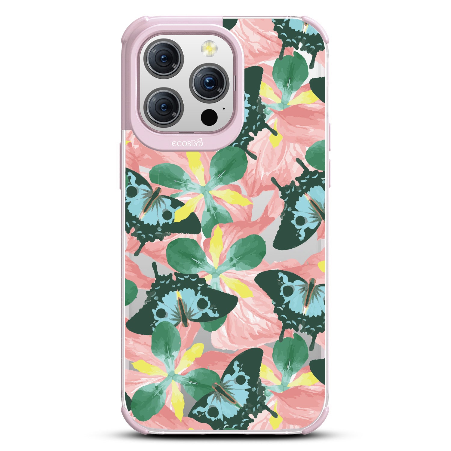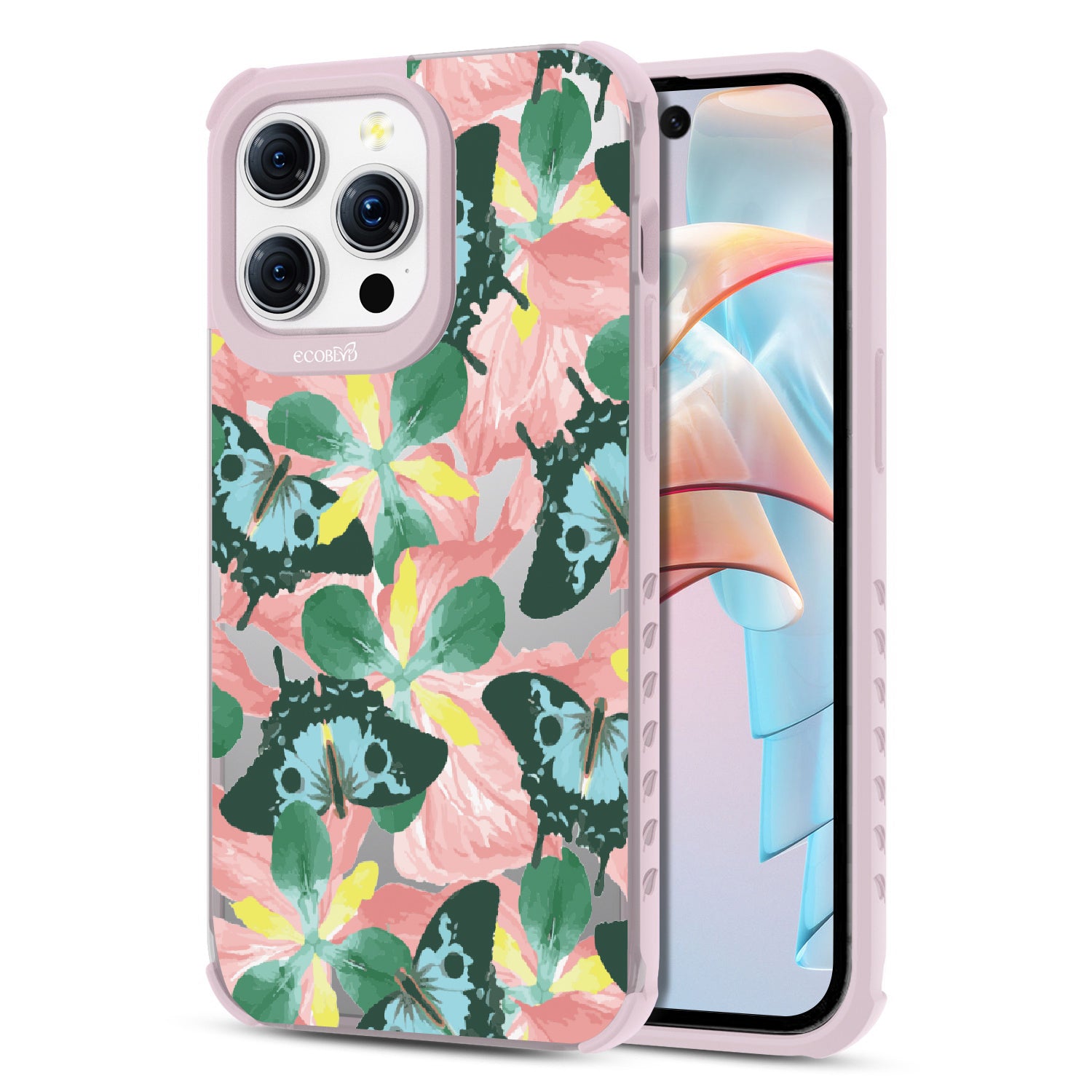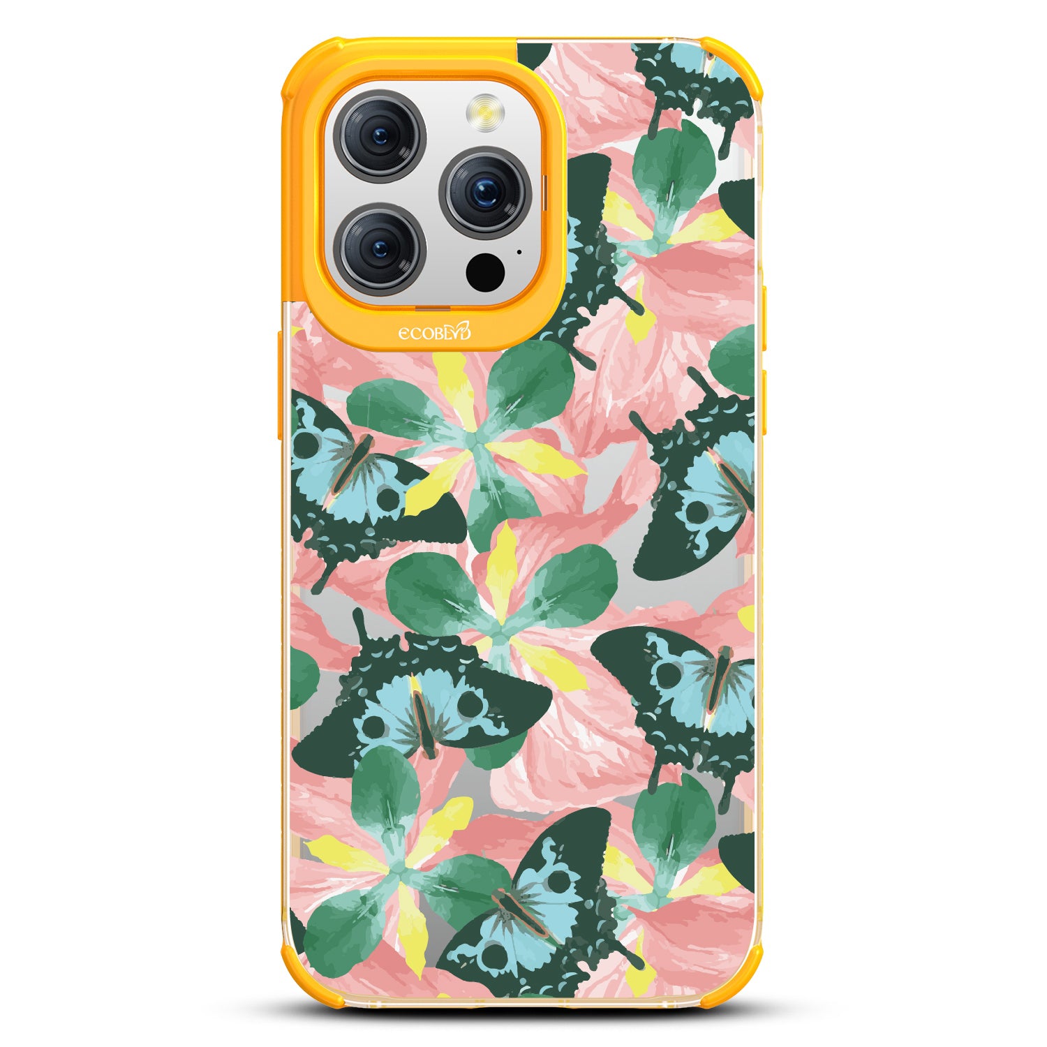 Time to look even more fly with the Fluttering Bouquet design on our Laguna clear iPhone 15 Pro Max case- featuring a stunning floral and butterfly phone case design that offers soaring style and protection while supporting ocean conservation efforts. This design is a secret garden of butterflies and flowers, with each petal blooming like a delicate wing that spreads and takes flight in the breeze in five captivating colors: Midnight Black, Cascade Blue, Pastel Lilac, Illuminating Yellow, and Wildflower Pink.