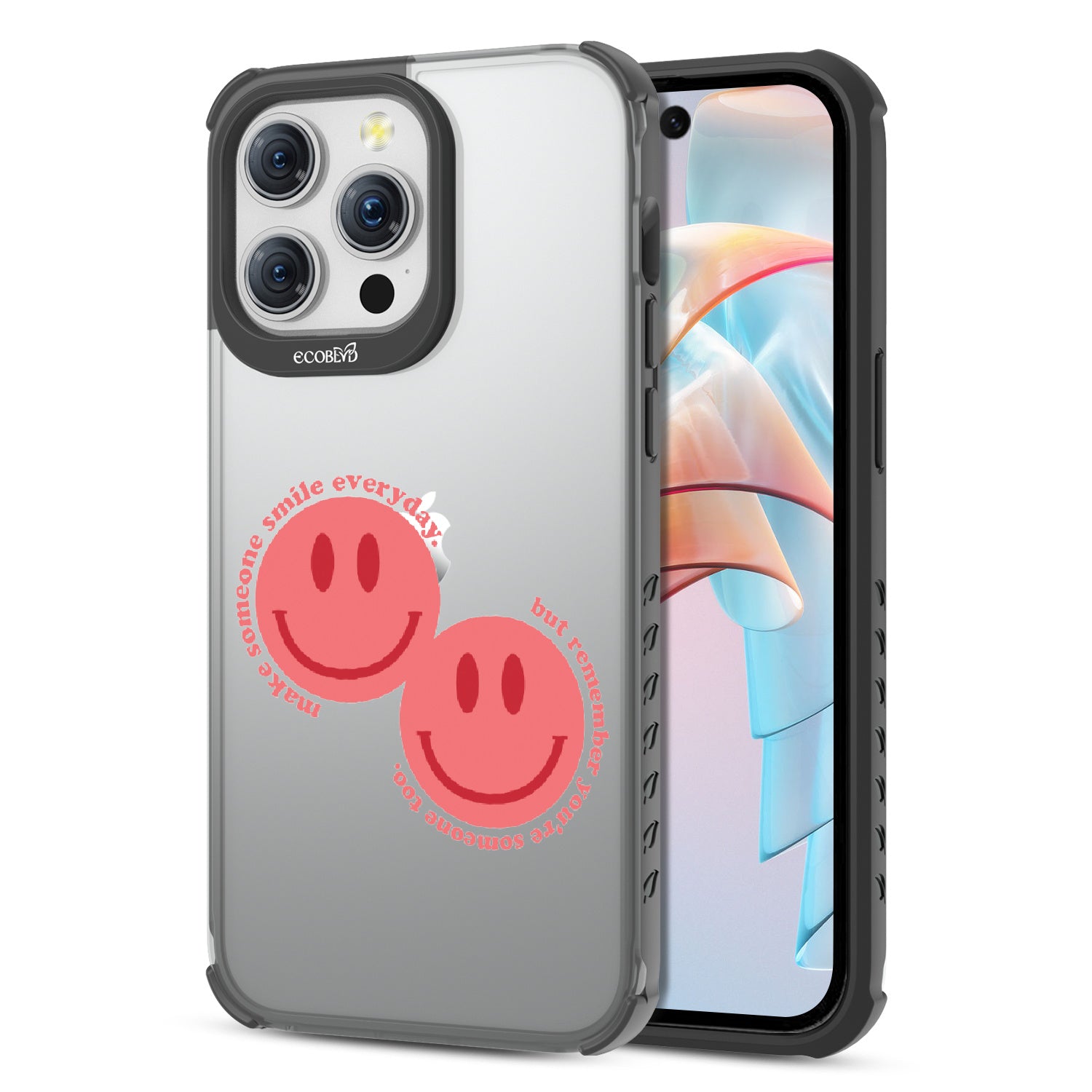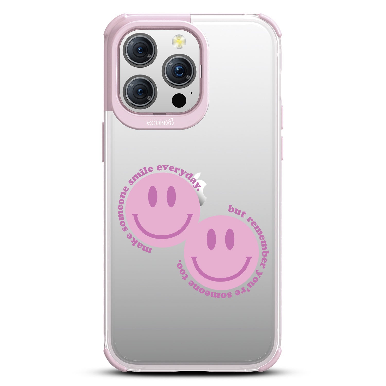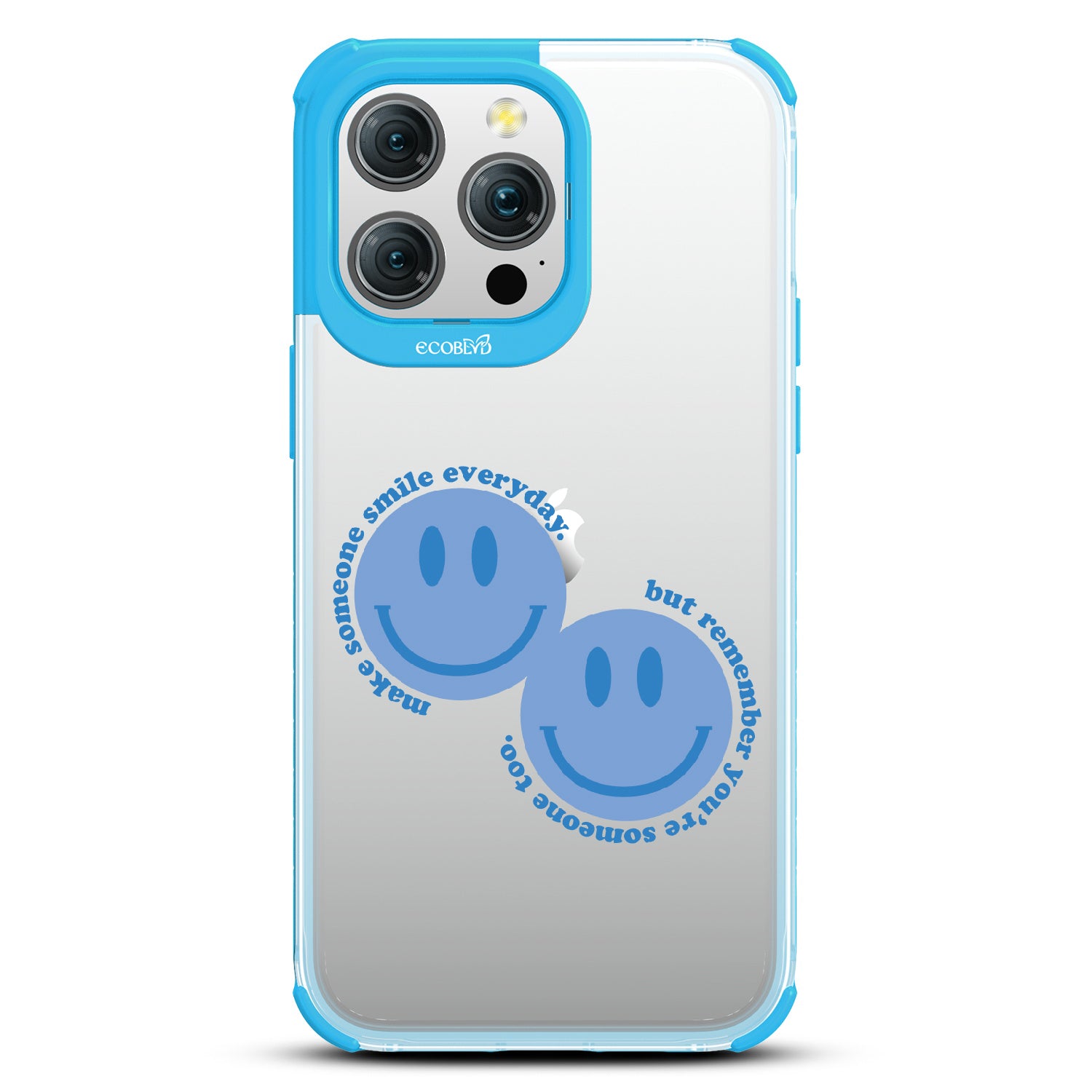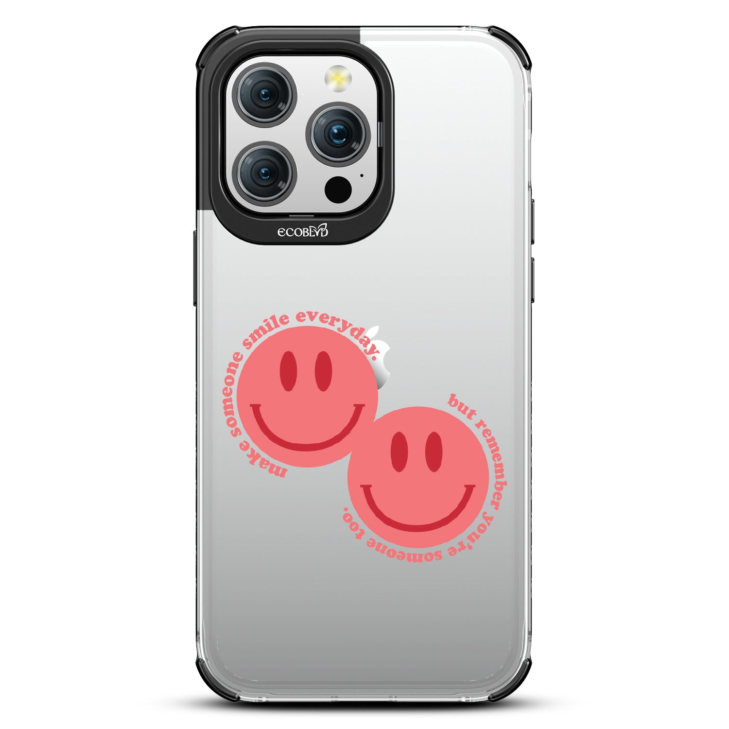 Spread happiness with the Make Someone Smile design on our Laguna clear iPhone 15 Pro Max phone case. Featuring two cheerful smiley faces, this design prompts you to be a source of joy for others. While you make someone else smile, recognize that you too are deserving of moments filled with happiness.
