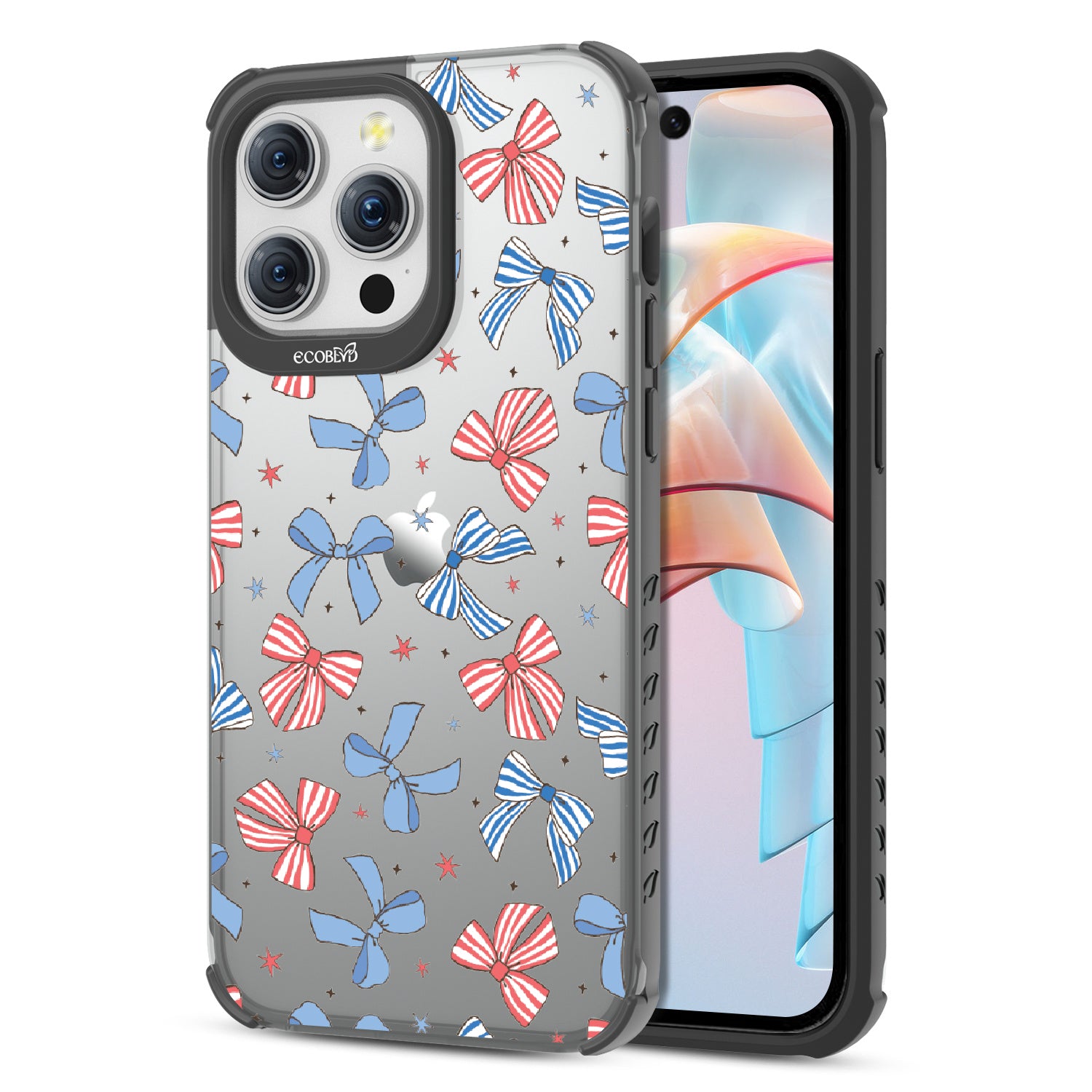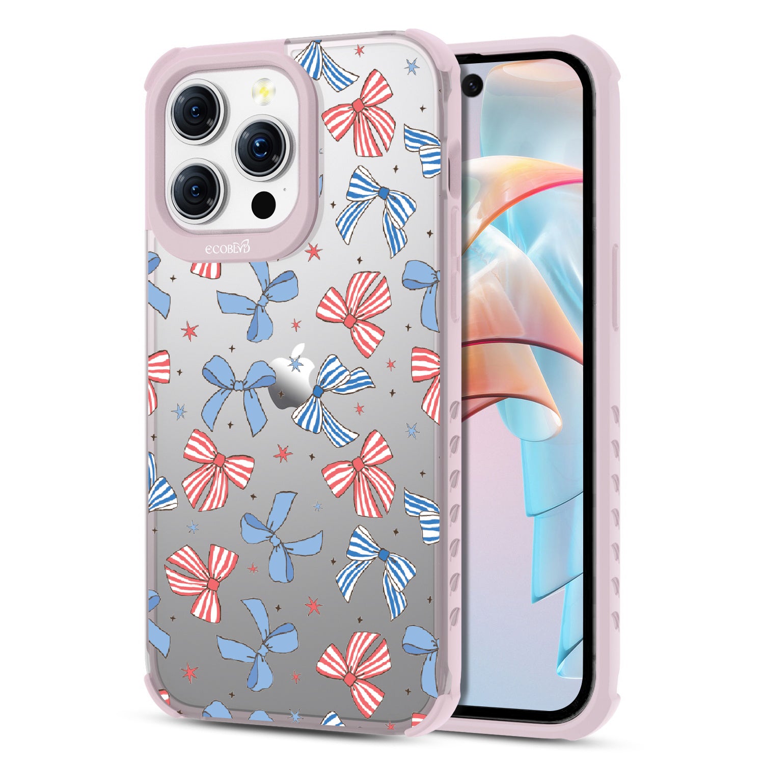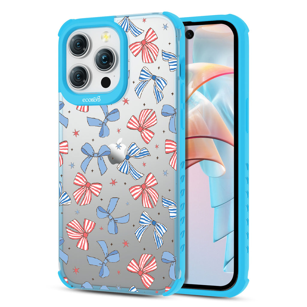 America the bow-tiful! The Miss Americana design on our Laguna clear iPhone 15 Pro Max phone case crowns your phone with patriotic flair. With red, white, and blue bows, this coquette phone case design turns your phone into the belle of the Americana ball.
