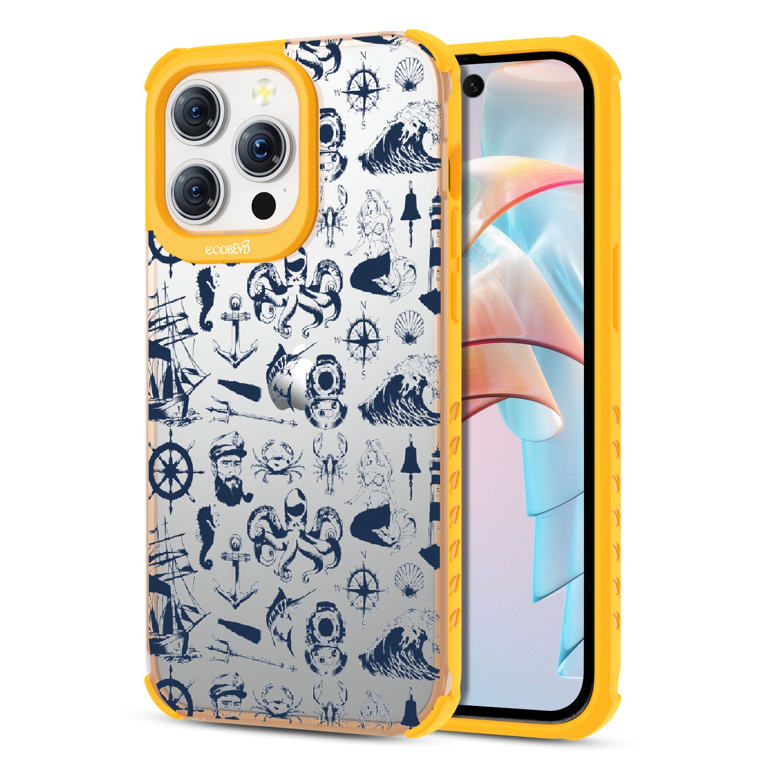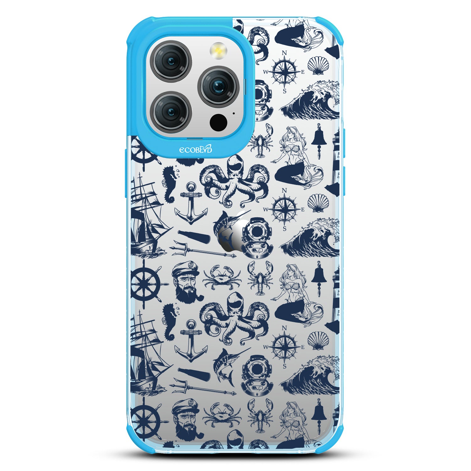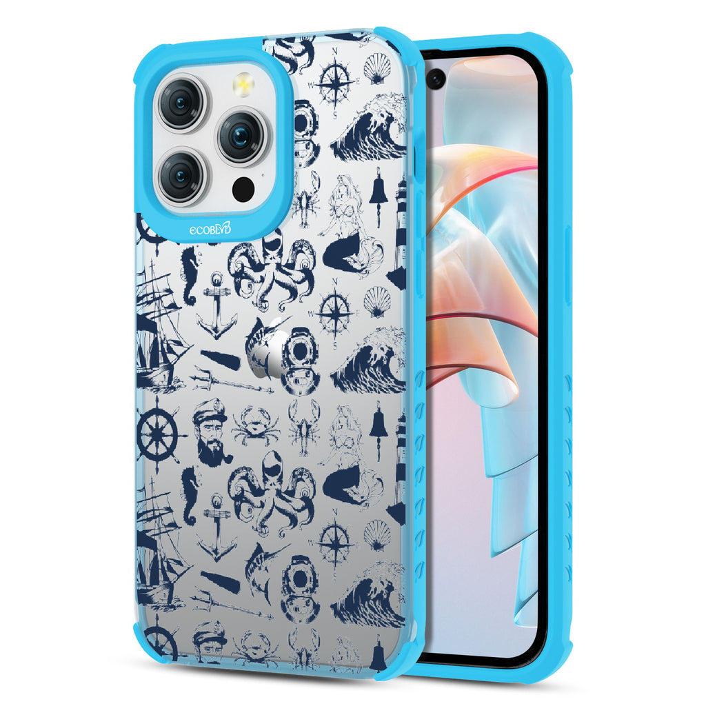 Ahoy there, matey! Set sail on a maritime adventure with the Nautical Tales design on our Laguna clear iPhone 15 Pro Max phone case, where the salty breeze guides you through a world of nautical wonders. From playful crabs scuttling across sandy shores to majestic mermaids luring you into their watery realm, the design captures the spirit of the sea. Explore a world of maritime wonders with your phone as a compass. Aye aye, sailor!
