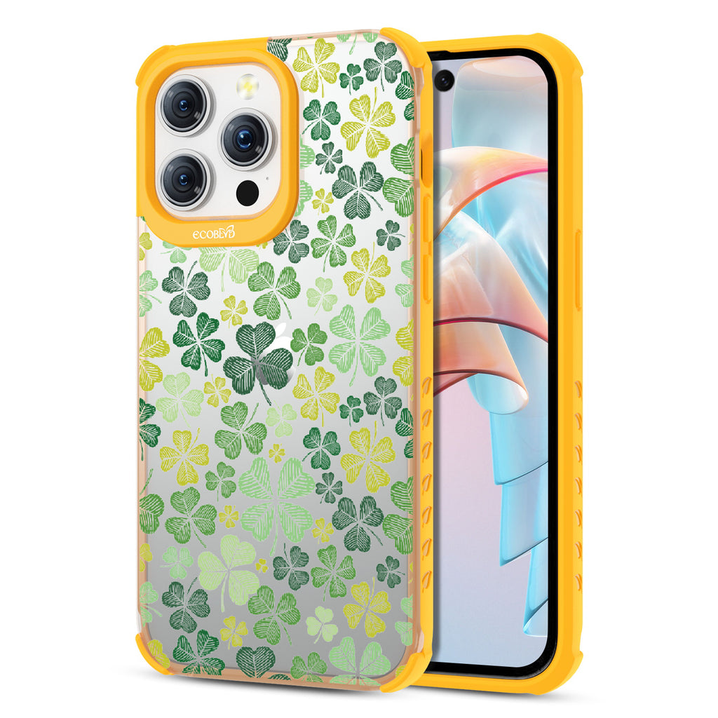 Turn your luck around with the vibrant Shamrock design on our Laguna clear iPhone 15 Pro Max case, where every leaf whispers tales of fortune and fate. Adorned with a sea of green four-leaf clovers, this design is a true emblem of luck, designed to bring a touch of charm.