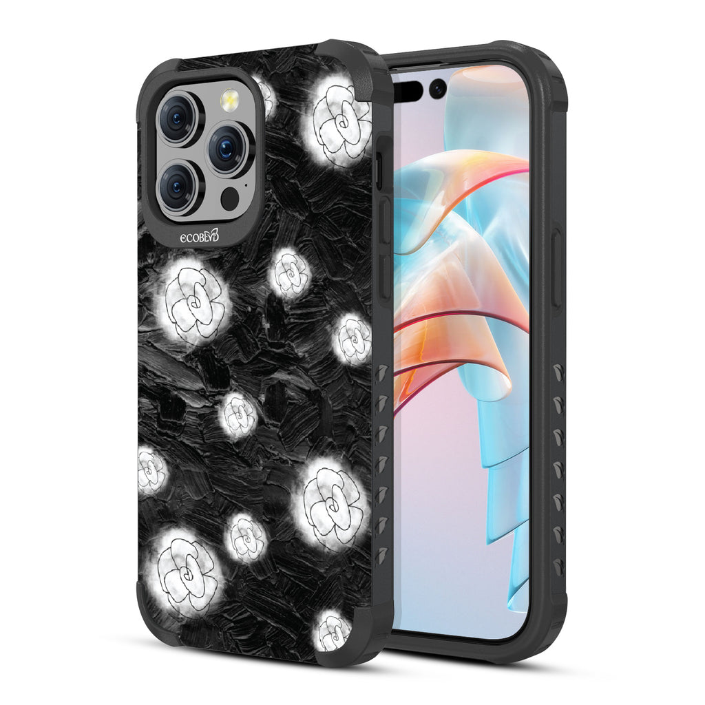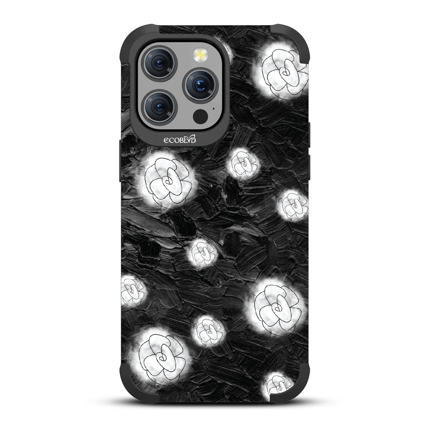 Like a secret garden hidden on your phone and a secret look enhancement, the Floral Fantasia design on our Mojave rugged and compostable iPhone 15 Pro Max case whispers sweet nothings with every glance at its flourishing line art flowers and black marble backdrop. Available on our Midnight Black colorway.