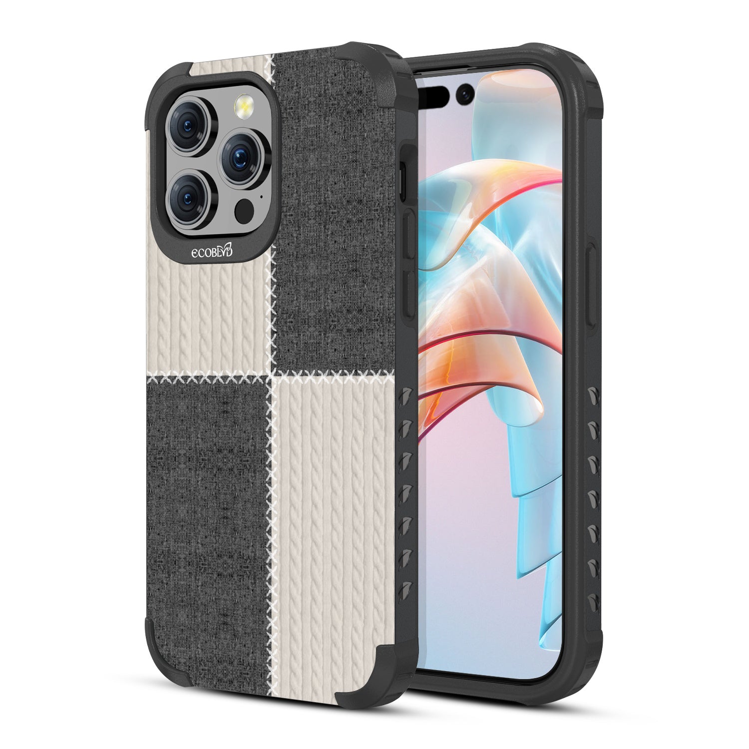 Unravel the seams of the Interwoven design on our Mojave rugged and compostable iPhone 15 Pro Max MagSafe case where cable knit and canvas-like patterns are stitched together to create the perfect piece for your phone. It's a bit cozy, a bit comfy and completely snug and stylish.