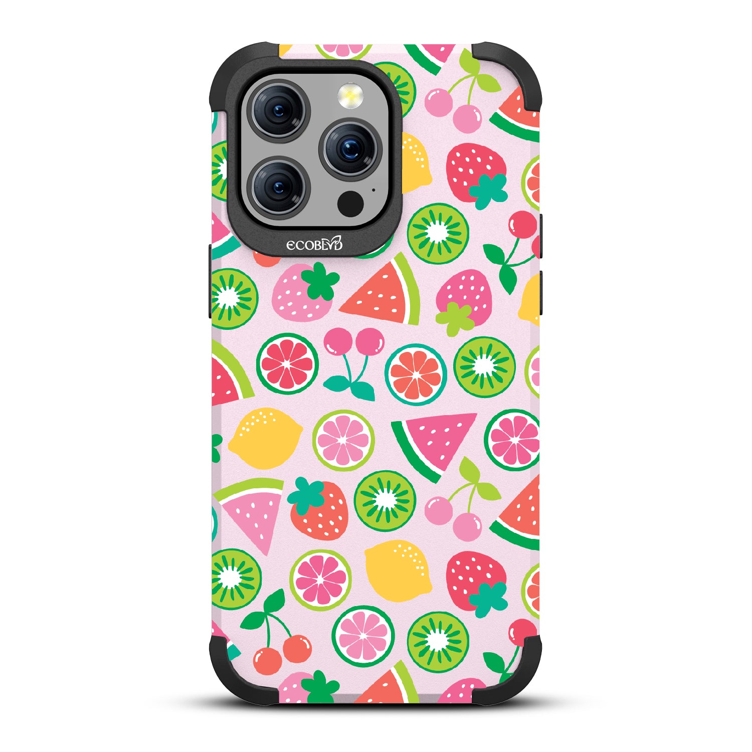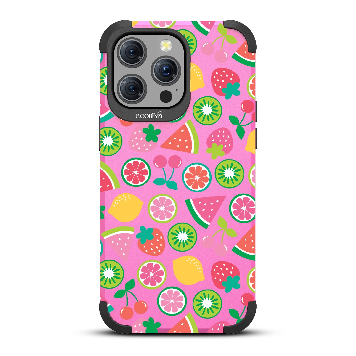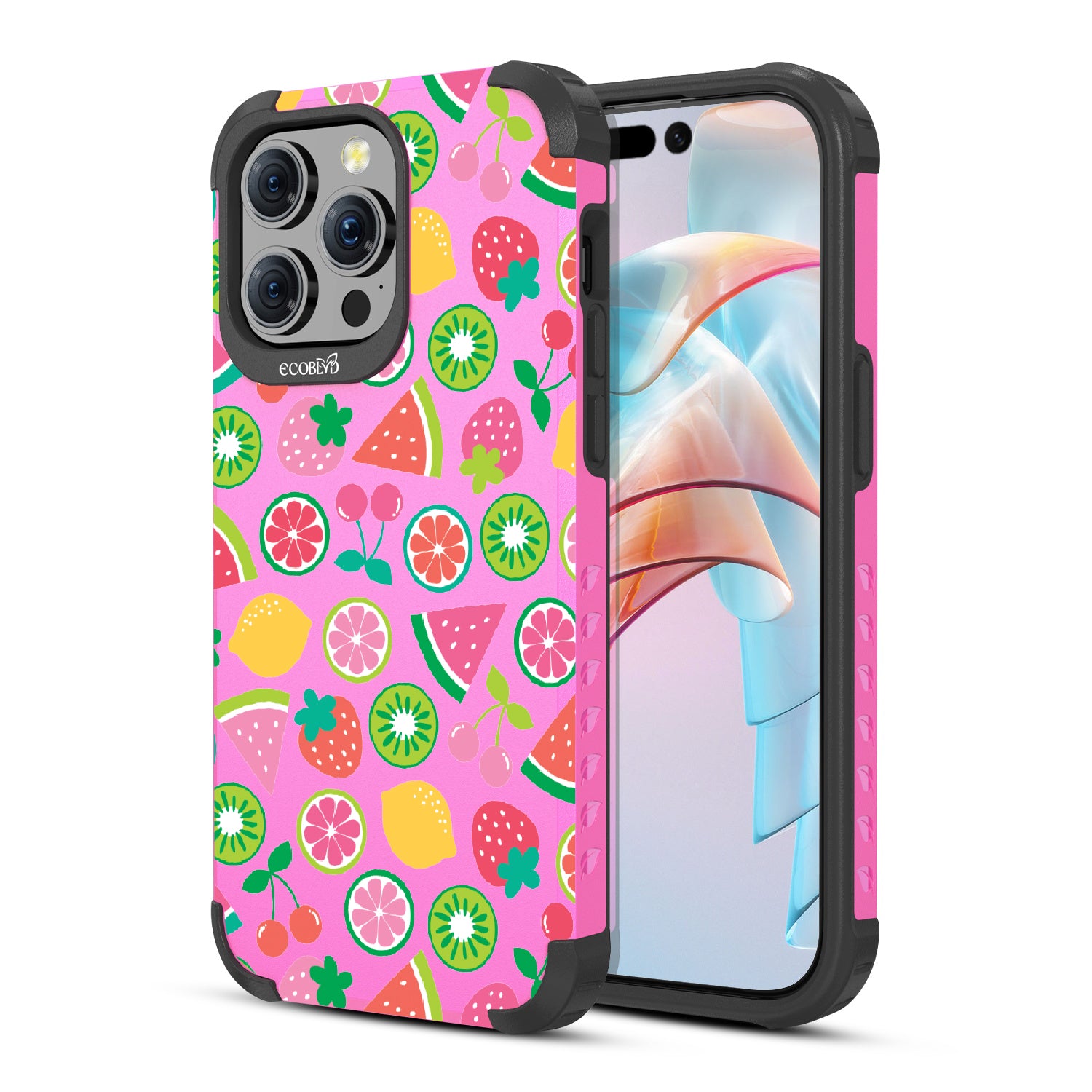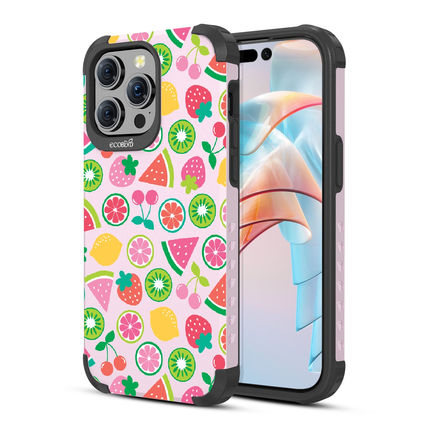 Savor the juicy goodness of summer with the Juicy Fruit design on our Mojave rugged and compostable iPhone 15 Pro Max MagSafe case, a delightful blend of vibrant fruits that will quench your style thirst. From the juicy watermelon to the tangy lemon, zesty lime, tropical guava, refreshing kiwi, luscious strawberries, and succulent cherries, this case is a juicy treat for your eyes. This phone case is a reminder to see the juicy side of life, to add a pop of fruity freshness to your style, and to use your phone to start juicy conversations. Available in four colorways: Midnight Black, Cascade Blue, Wildflower Pink, and the exclusive Pastel Lilac!