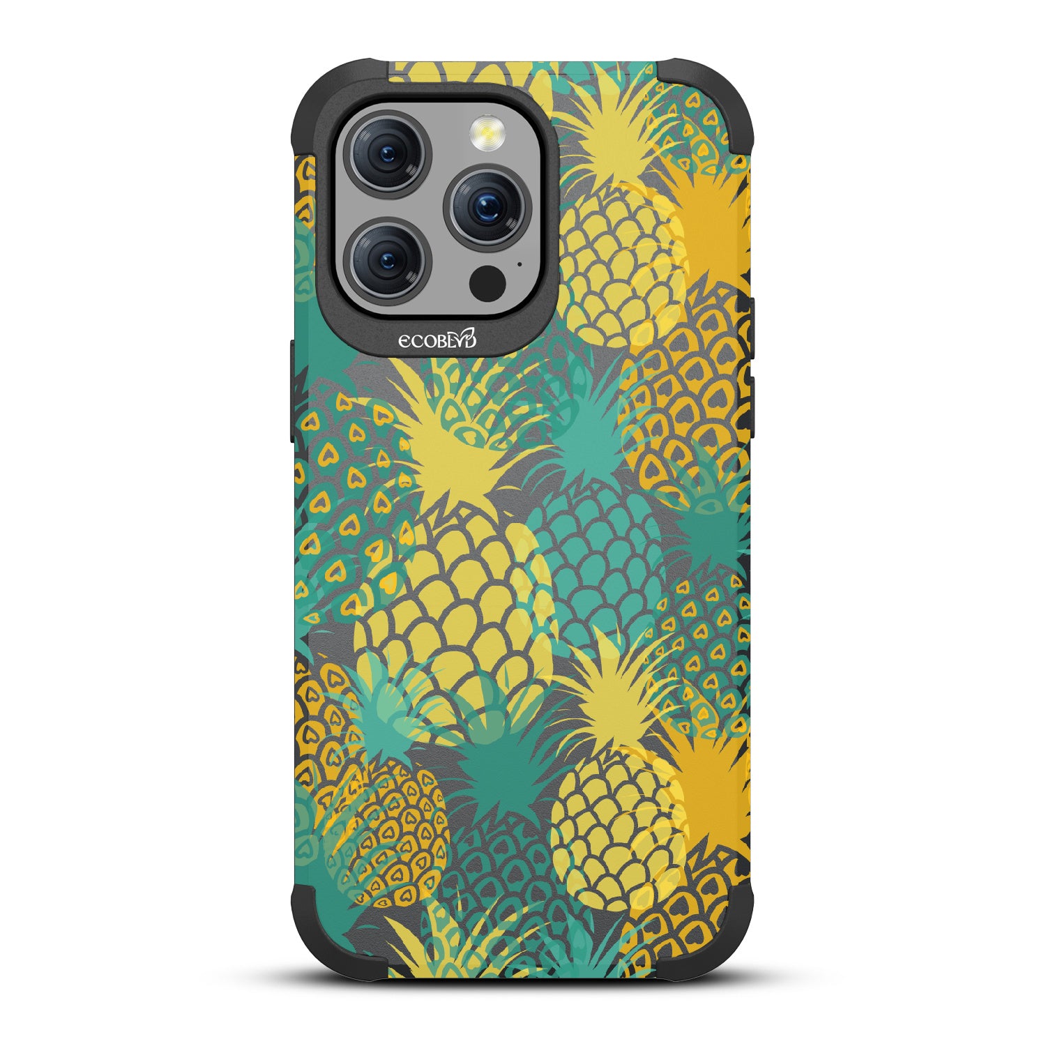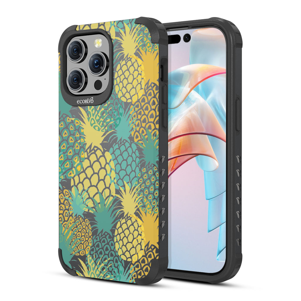 If you like Pina Coladas and getting caught in the sun, then this design on our Mojave rugged and compostable iPhone 15 Pro Max case is for you! Pineapple Breeze is a refreshing phone case that embodies the spirit of tropical relaxation. Its vibrant array of ripe pineapples will transport you to exotic shores, where the golden rays of the sun dance upon your skin. Available on our bold Midnight Black colorway.