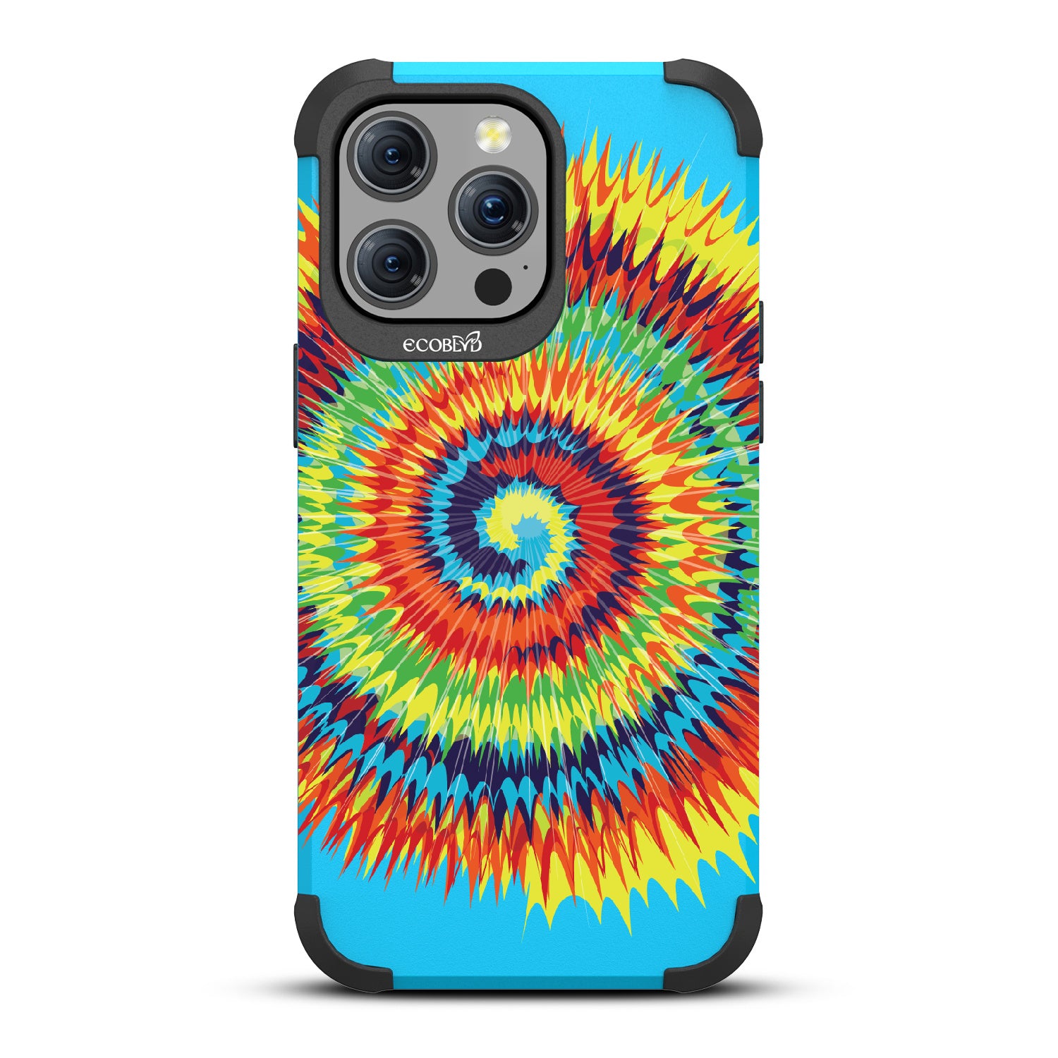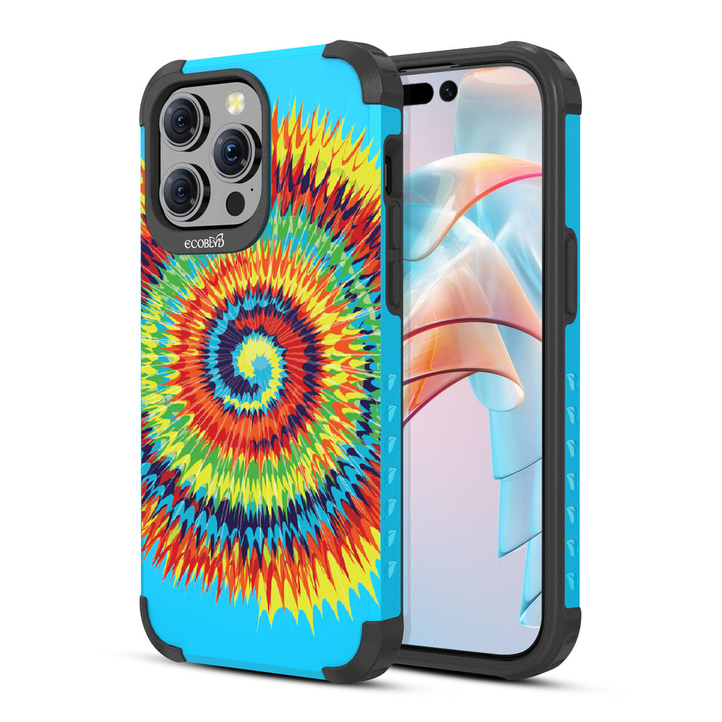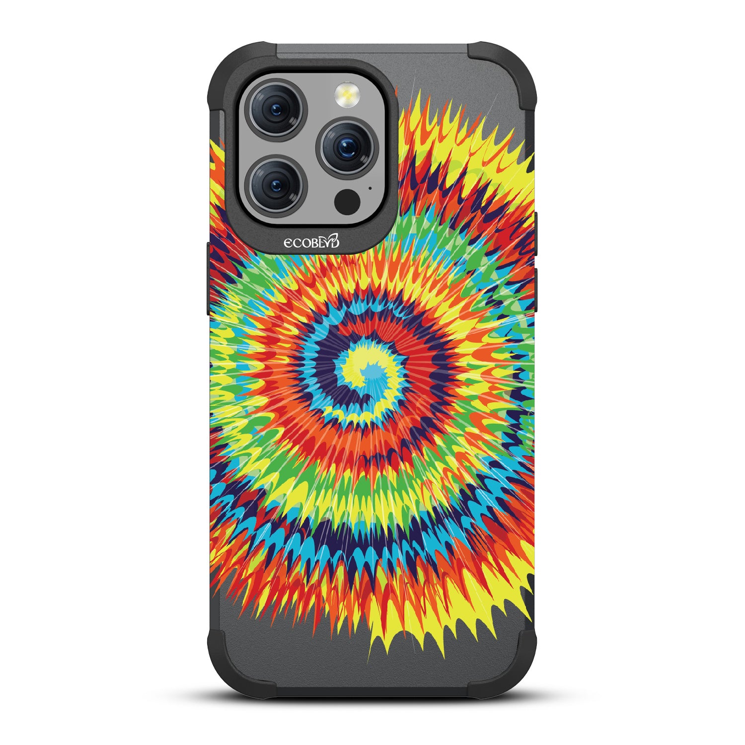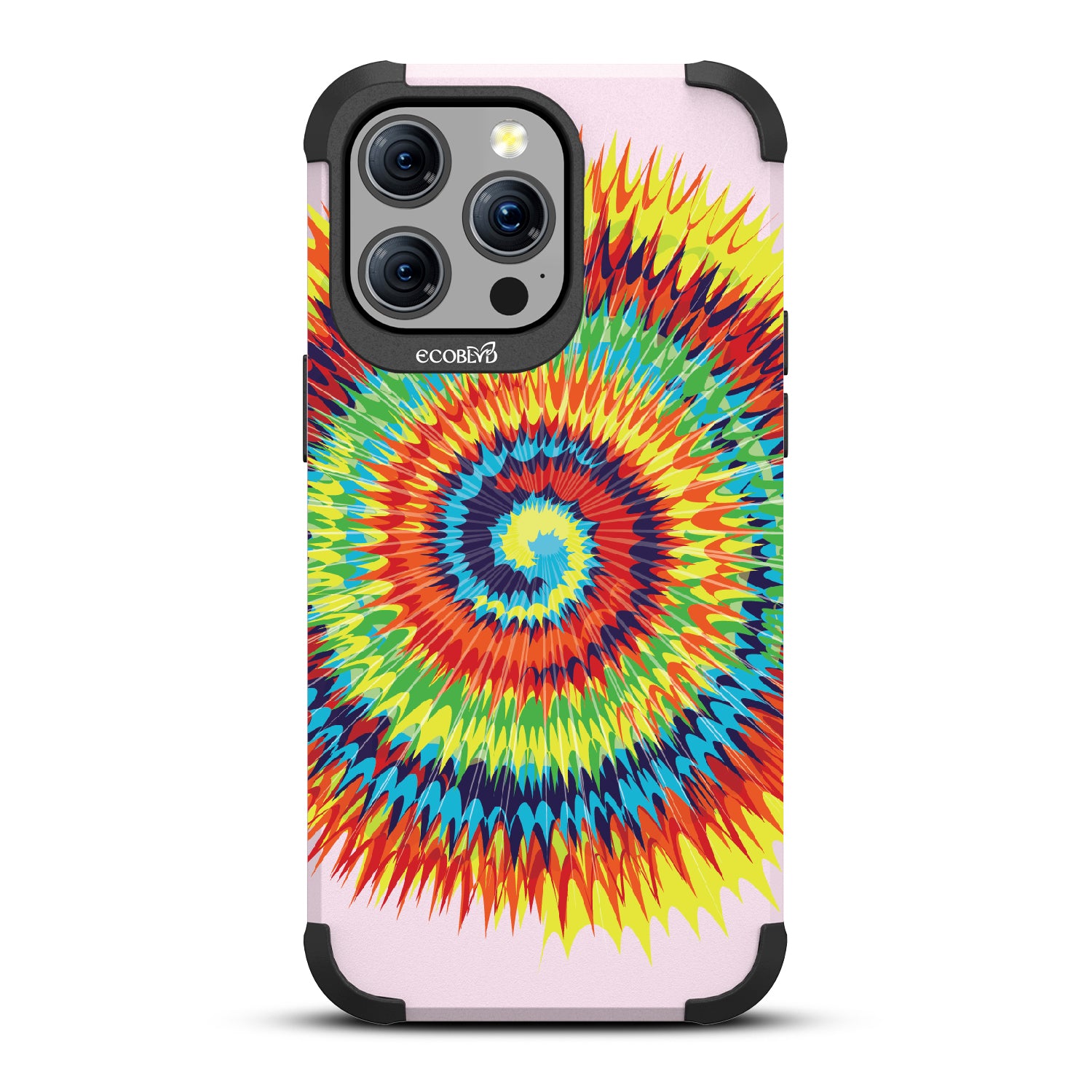 Bringing back the summer days of backyard BBQs, beach days, and fun in the sun, the Tie Dye design on our Mojave rugged and compostable iPhone 15 Pro Max case has a retro rainbow swirl pattern giving your phone and style an eye-catching twist.