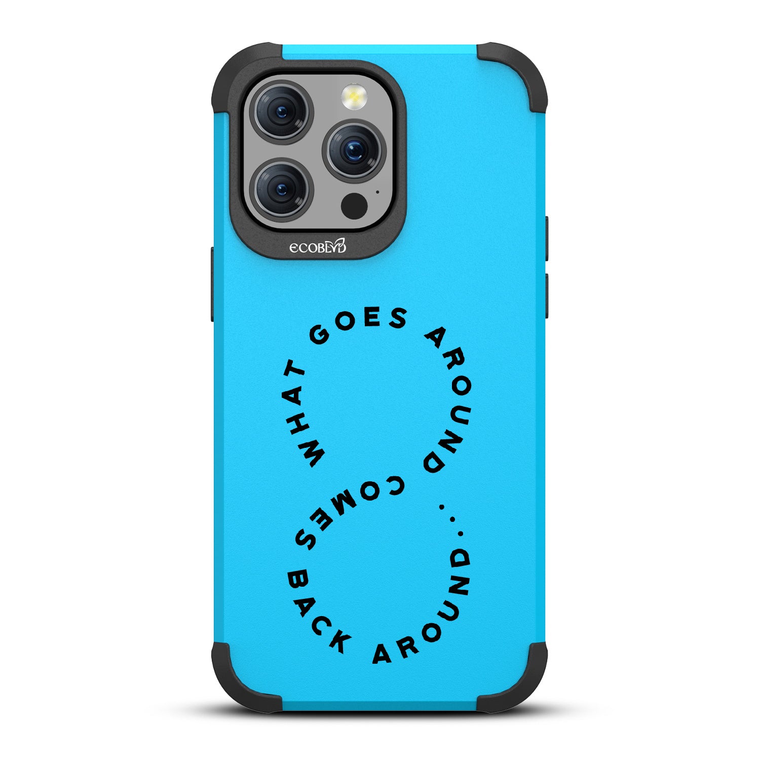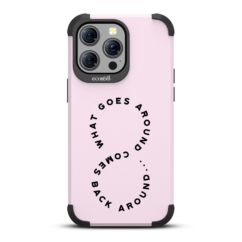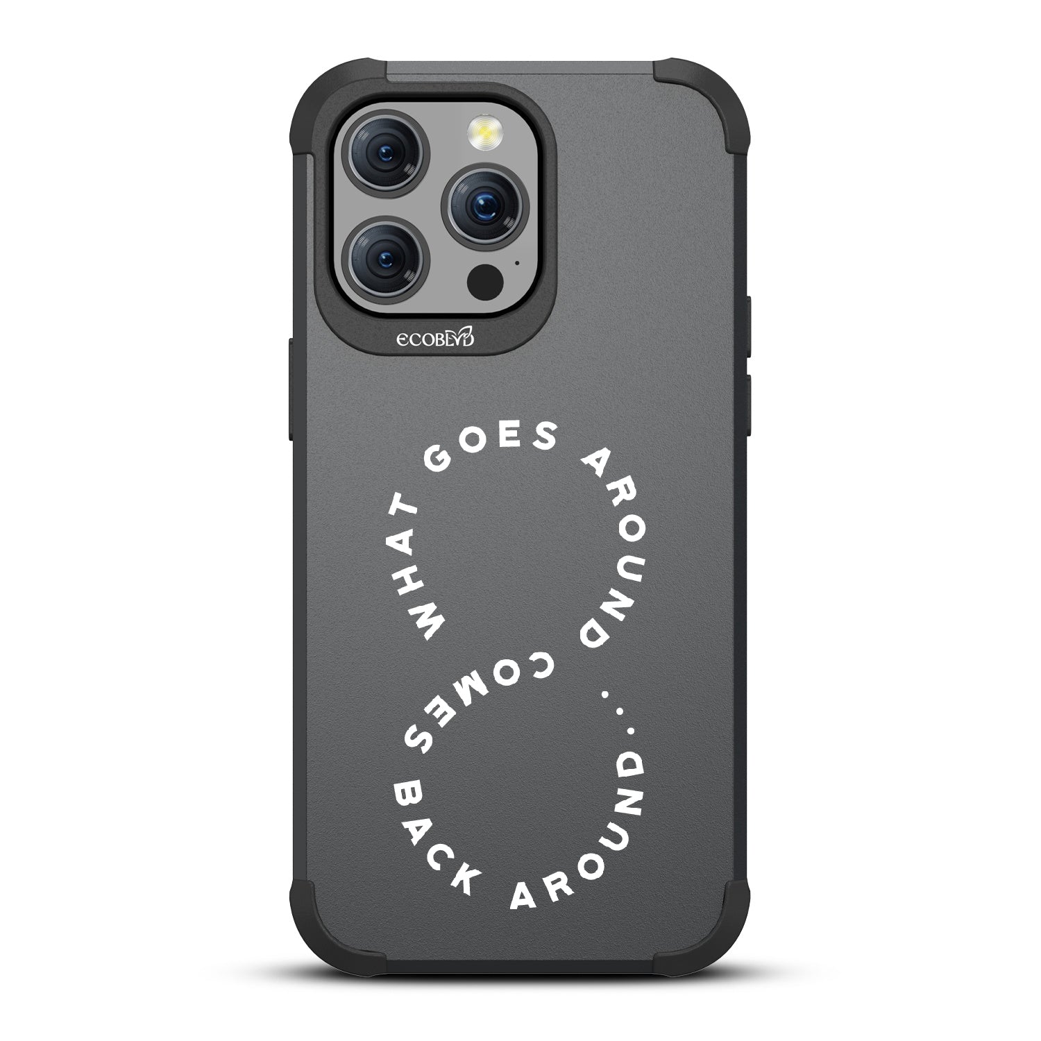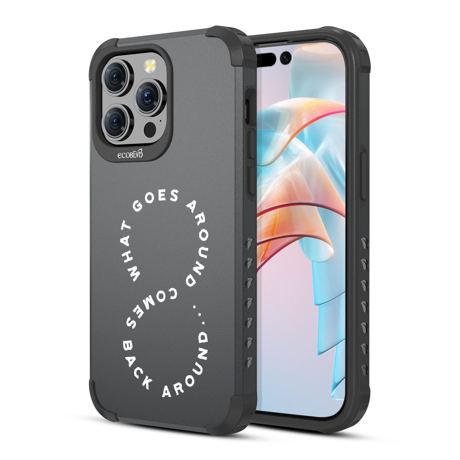 Everything inevitably comes full circle with the What Goes Around Comes Around design on our Mojave rugged and compostable iPhone 15 Pro Max MagSafe case as its infinity symbol loops back to our karma. A reminder that every action has its place and that all we do creates ripples that echo our energy out into the world and back to us.