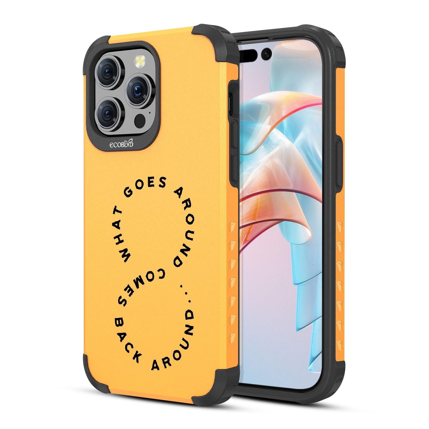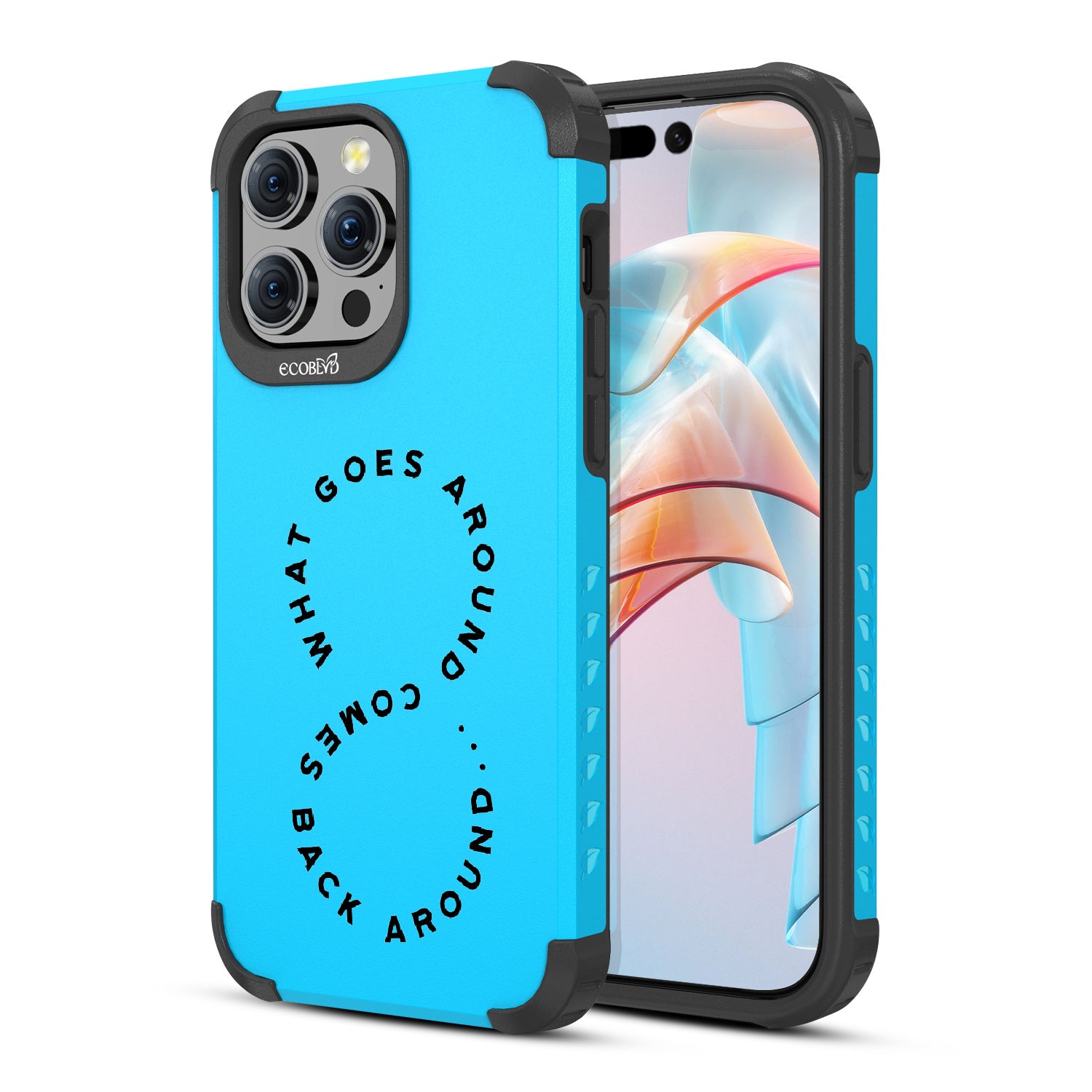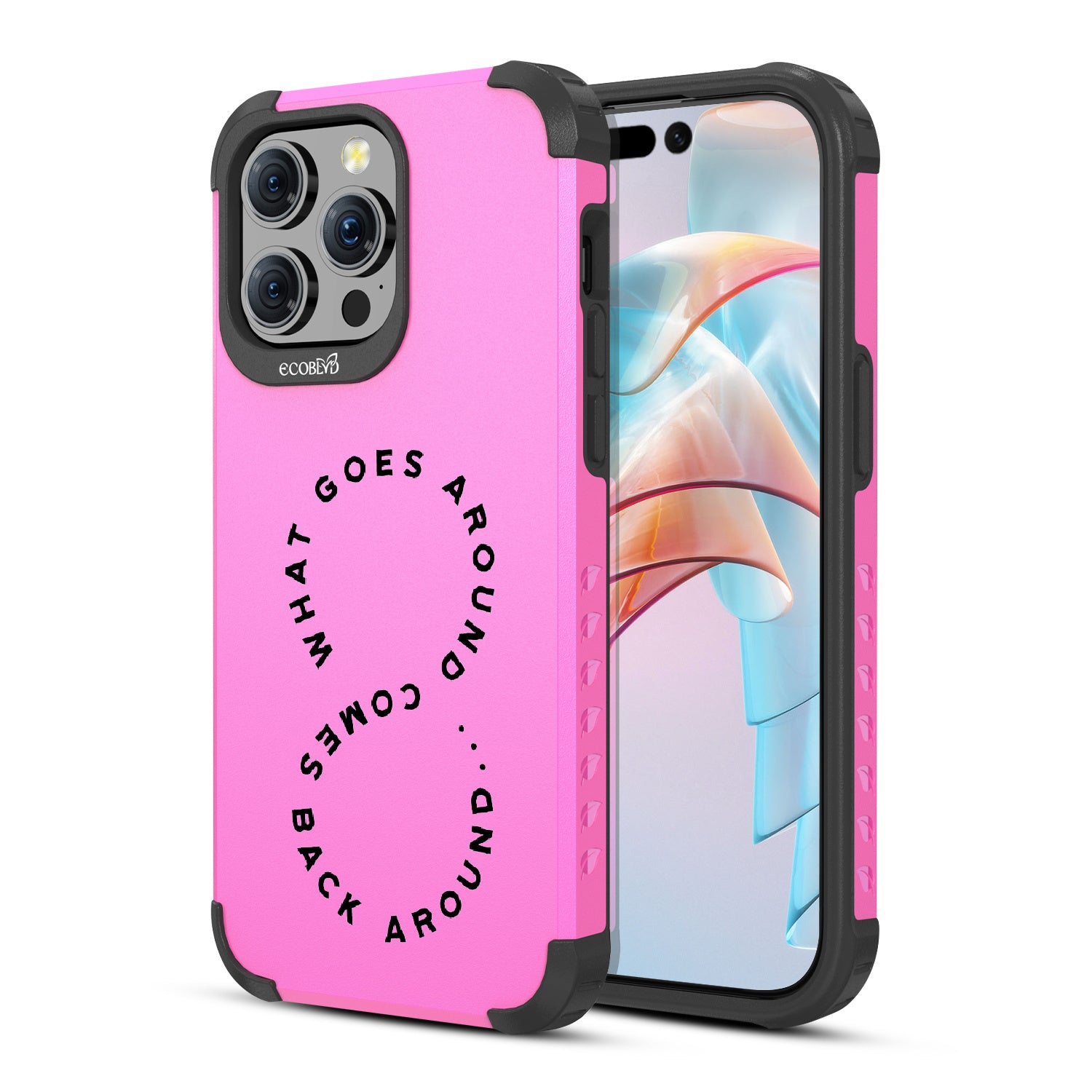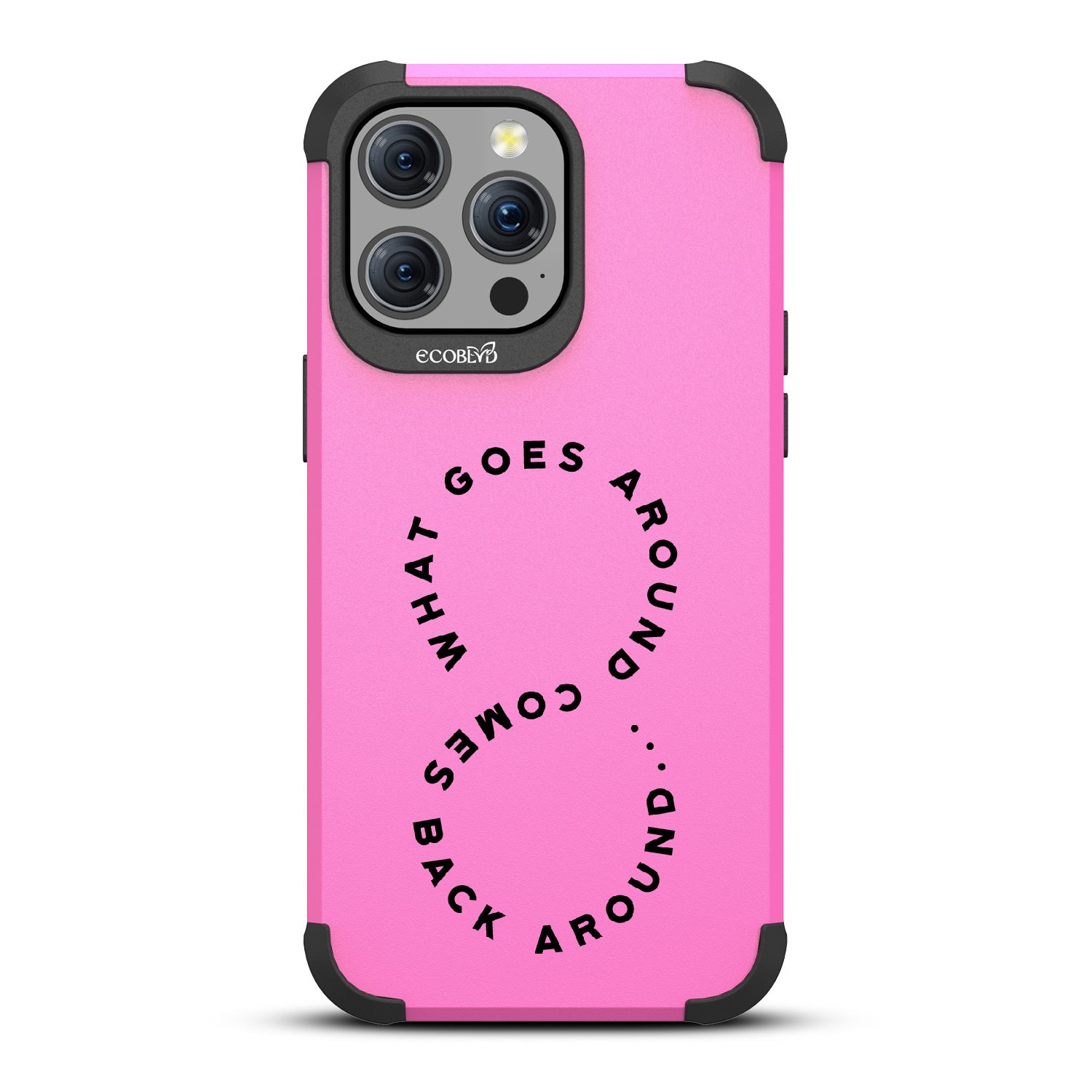 Everything inevitably comes full circle with the What Goes Around Comes Around design on our Mojave rugged and compostable iPhone 15 Pro Max MagSafe case as its infinity symbol loops back to our karma. A reminder that every action has its place and that all we do creates ripples that echo our energy out into the world and back to us.