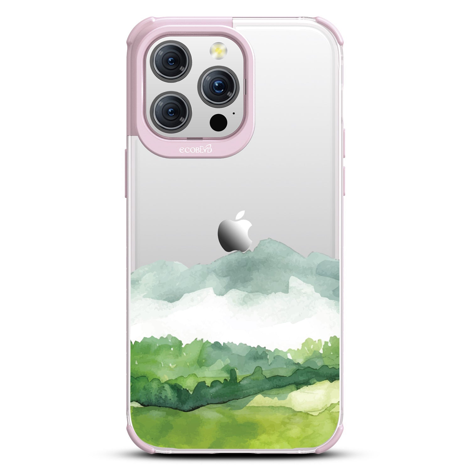 The view is endless, just like the possibilities. The Open Horizon design on our Laguna clear iPhone 15 Pro Max case layers soft washes of green and misty blue, stretching like rolling hills beneath an open sky. The watercolor effect creates a serene, boundless landscape, a quiet reminder that there’s always more to explore.